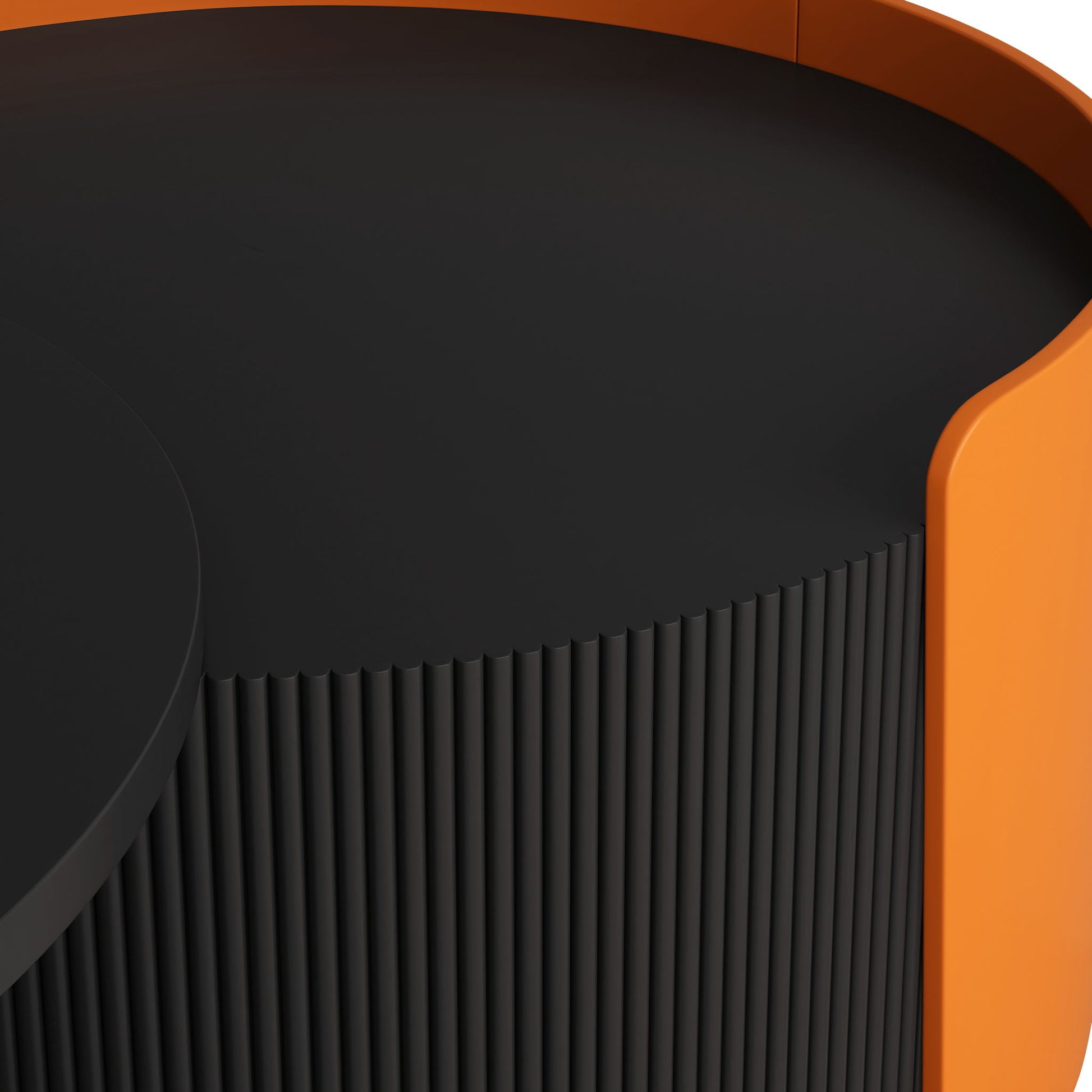 Round Nesting Coffee Table With Extendable Sliding Top And Orange Accent - Black