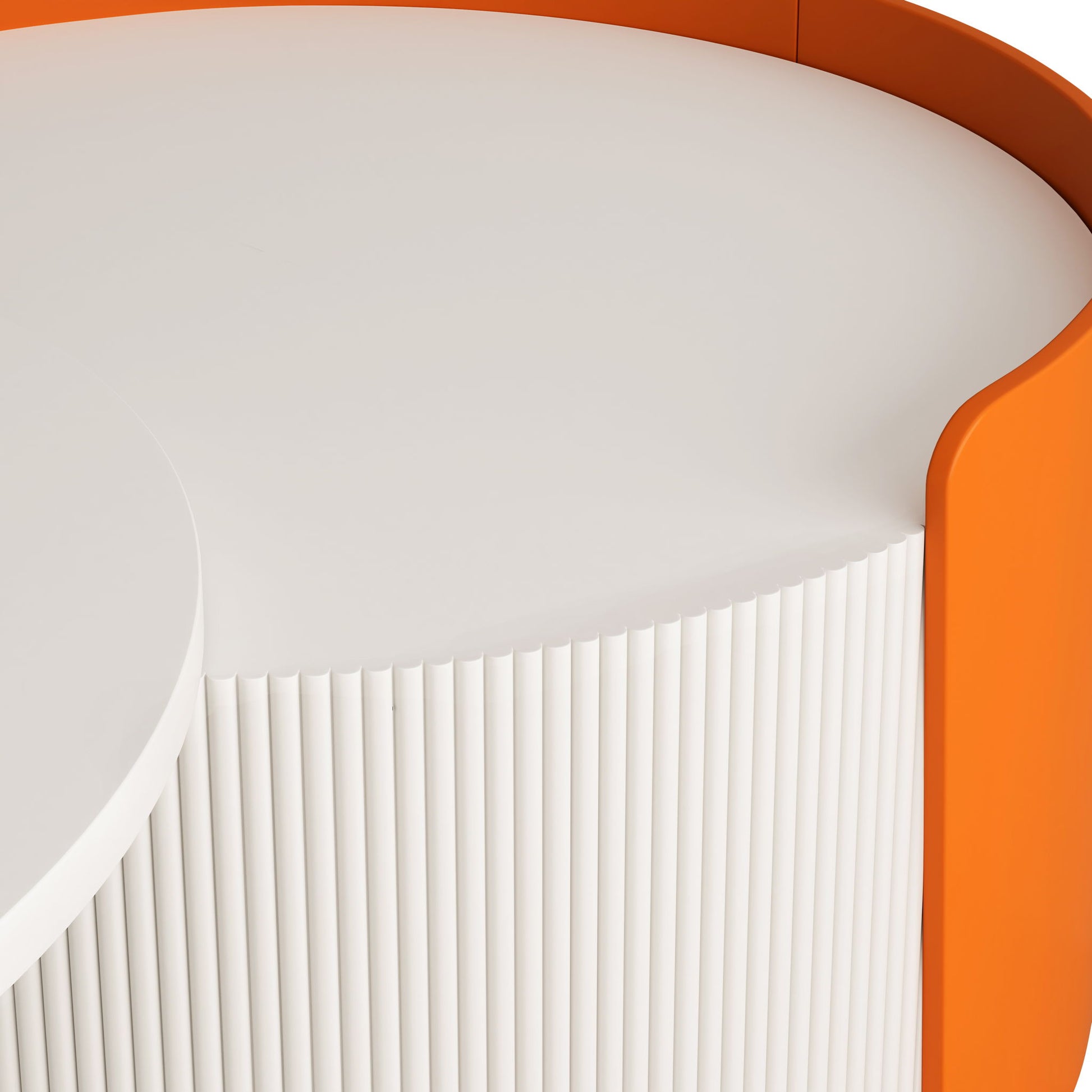 Round Nesting Coffee Table With Extendable Sliding Top And Orange Accent - Antique White