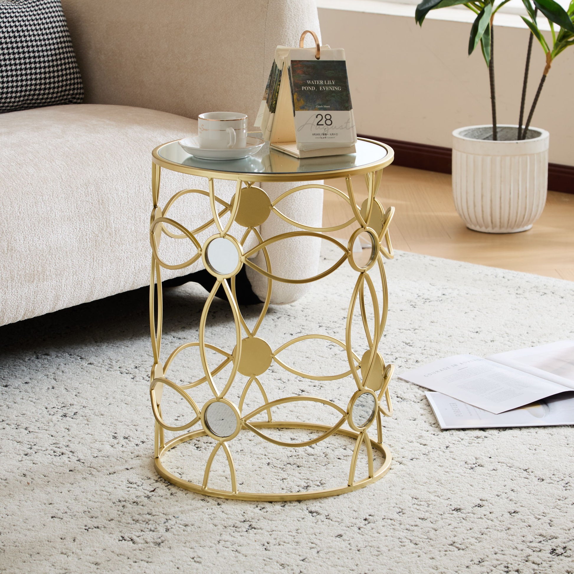 Modern Side Table With Mirror Top And Metal Frame - Gold / Clear