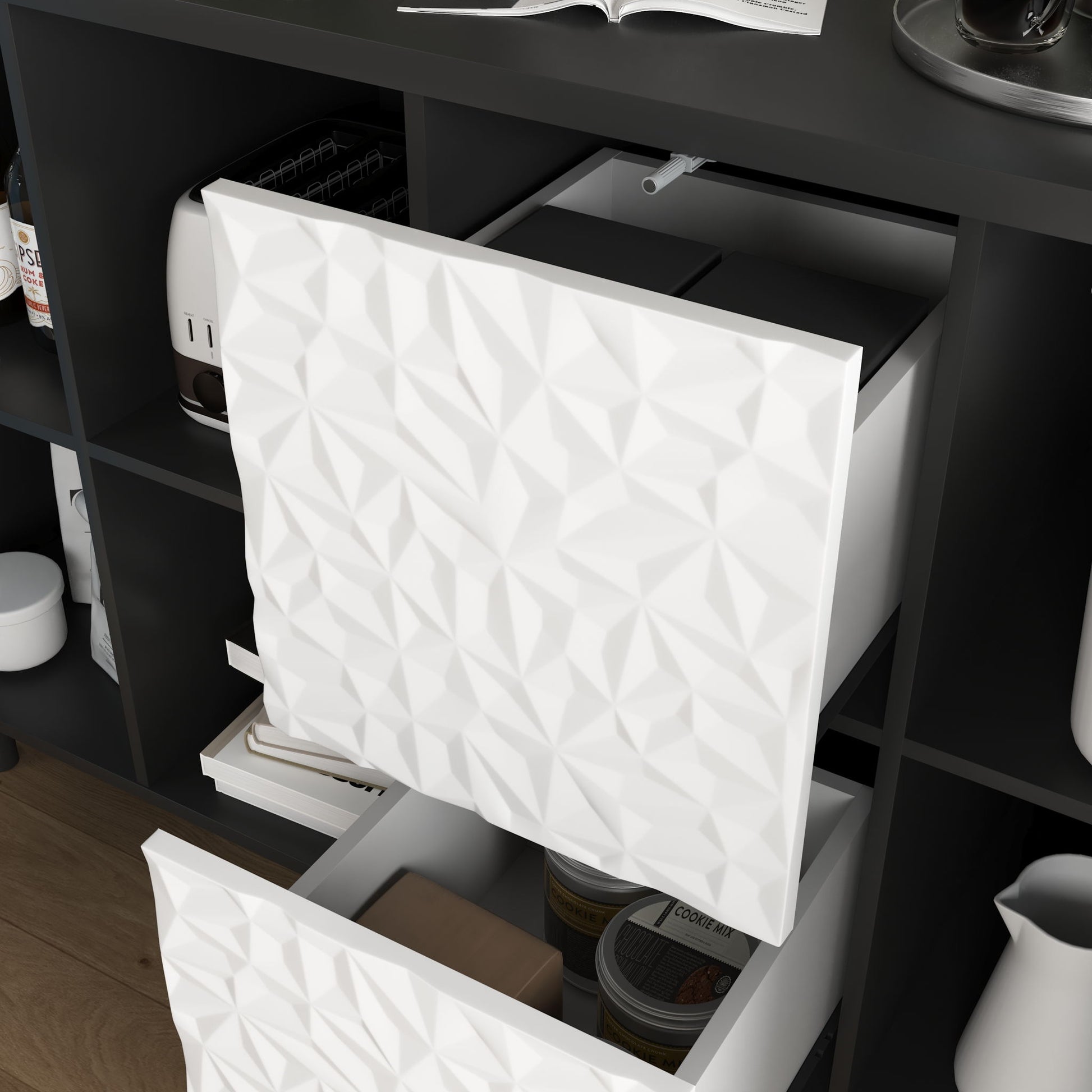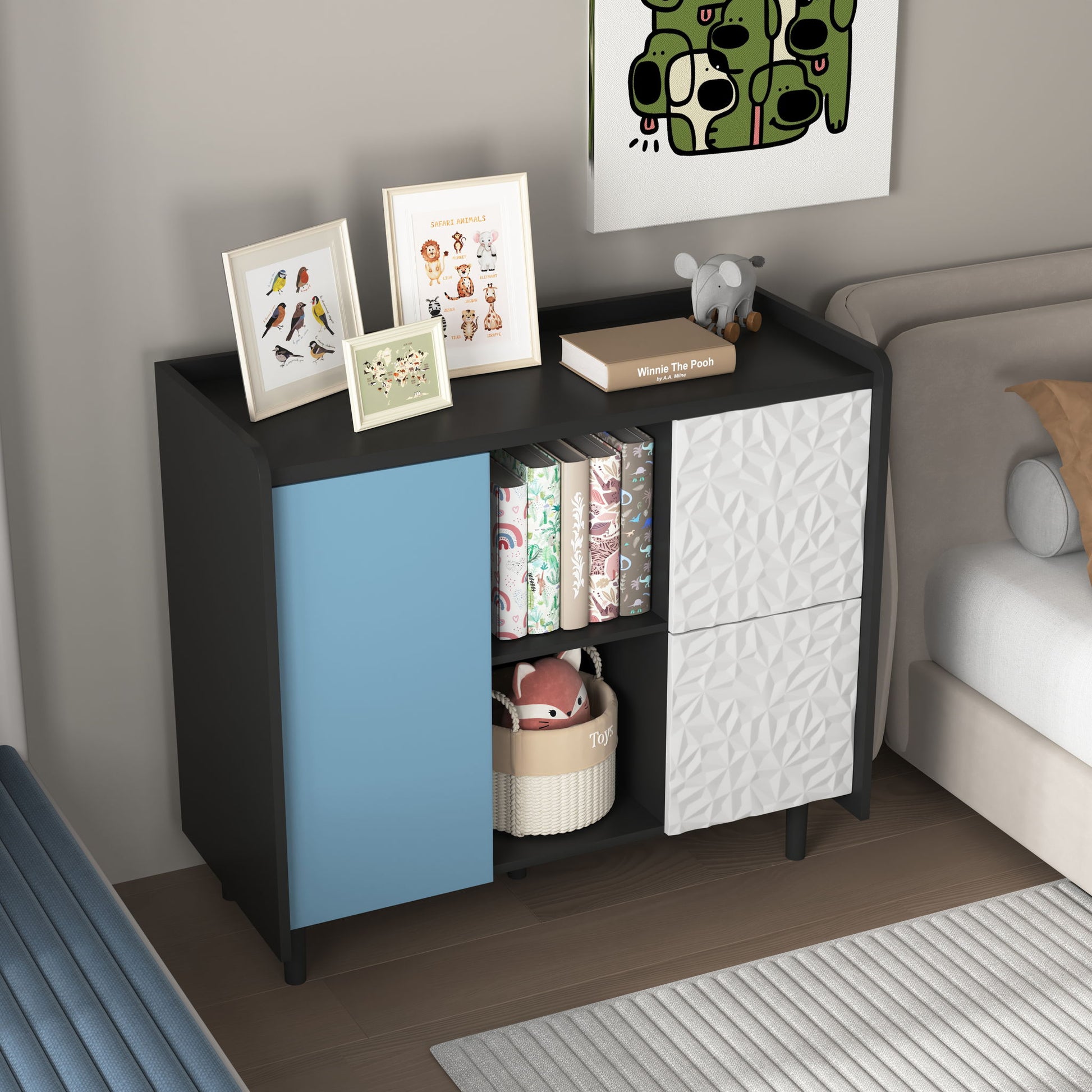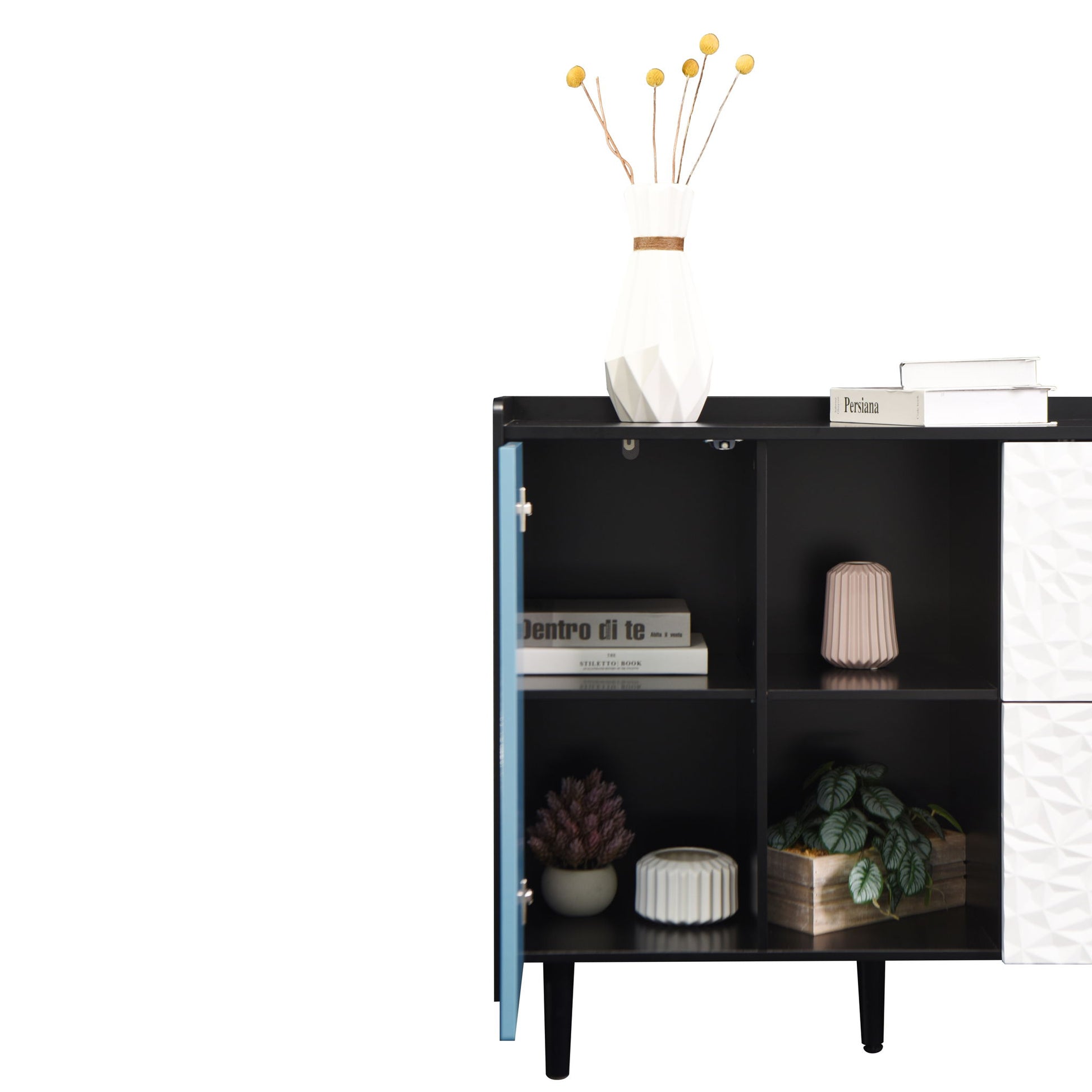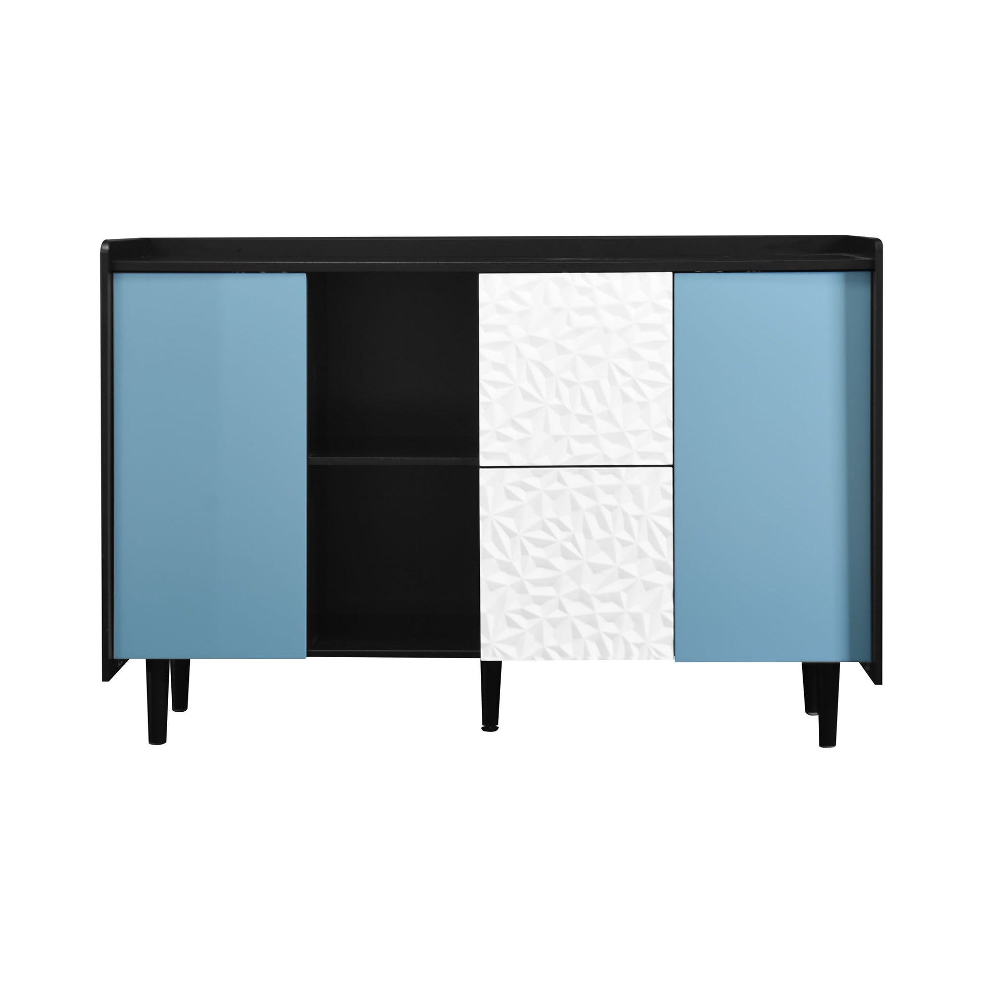 Modern Sideboard Buffet Cabinet With Doors And Unique Panel Styling - Black / Blue