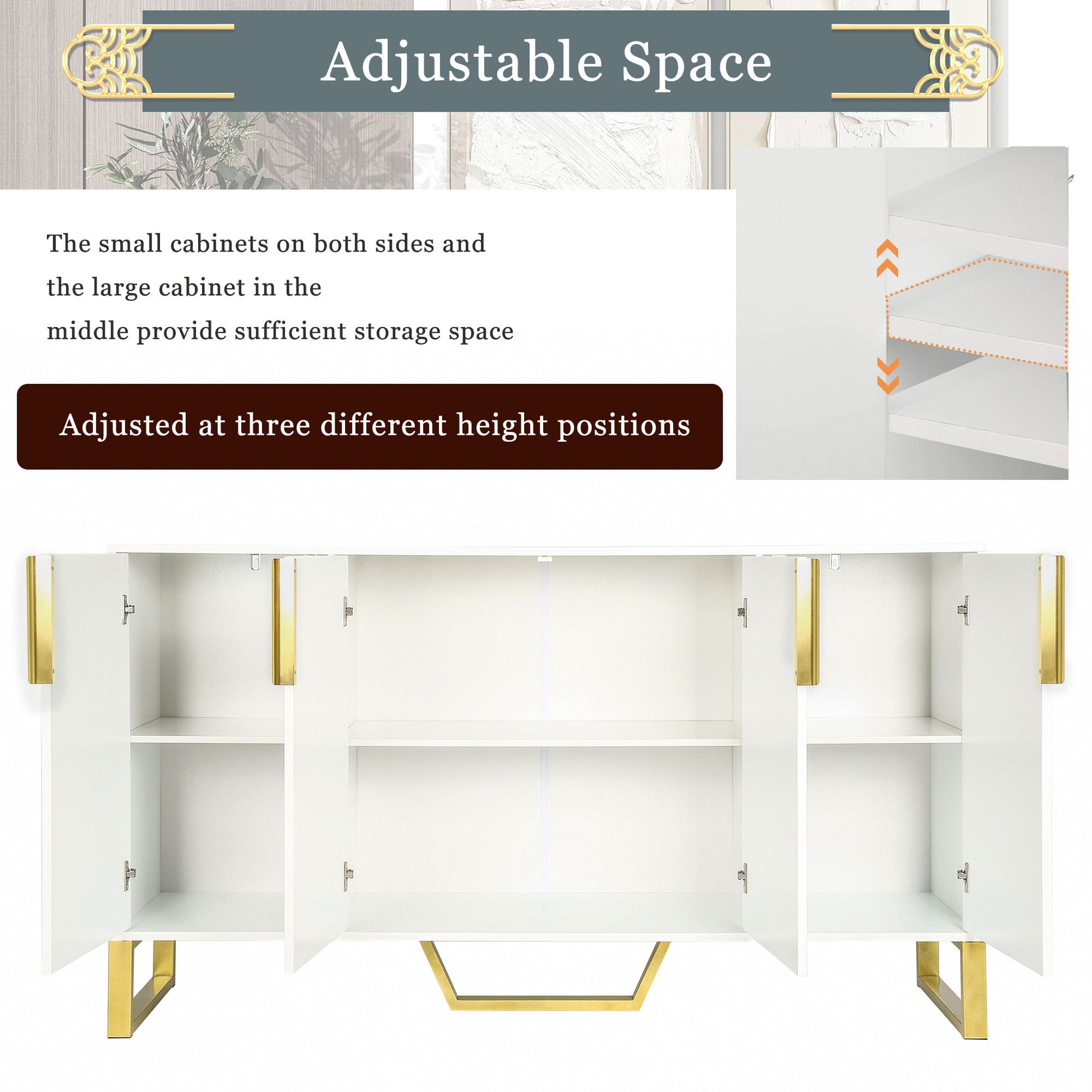 Modern Sideboard With Four Doors, Metal Handles & Legs And Adjustable Shelves Kitchen Cabinet - White