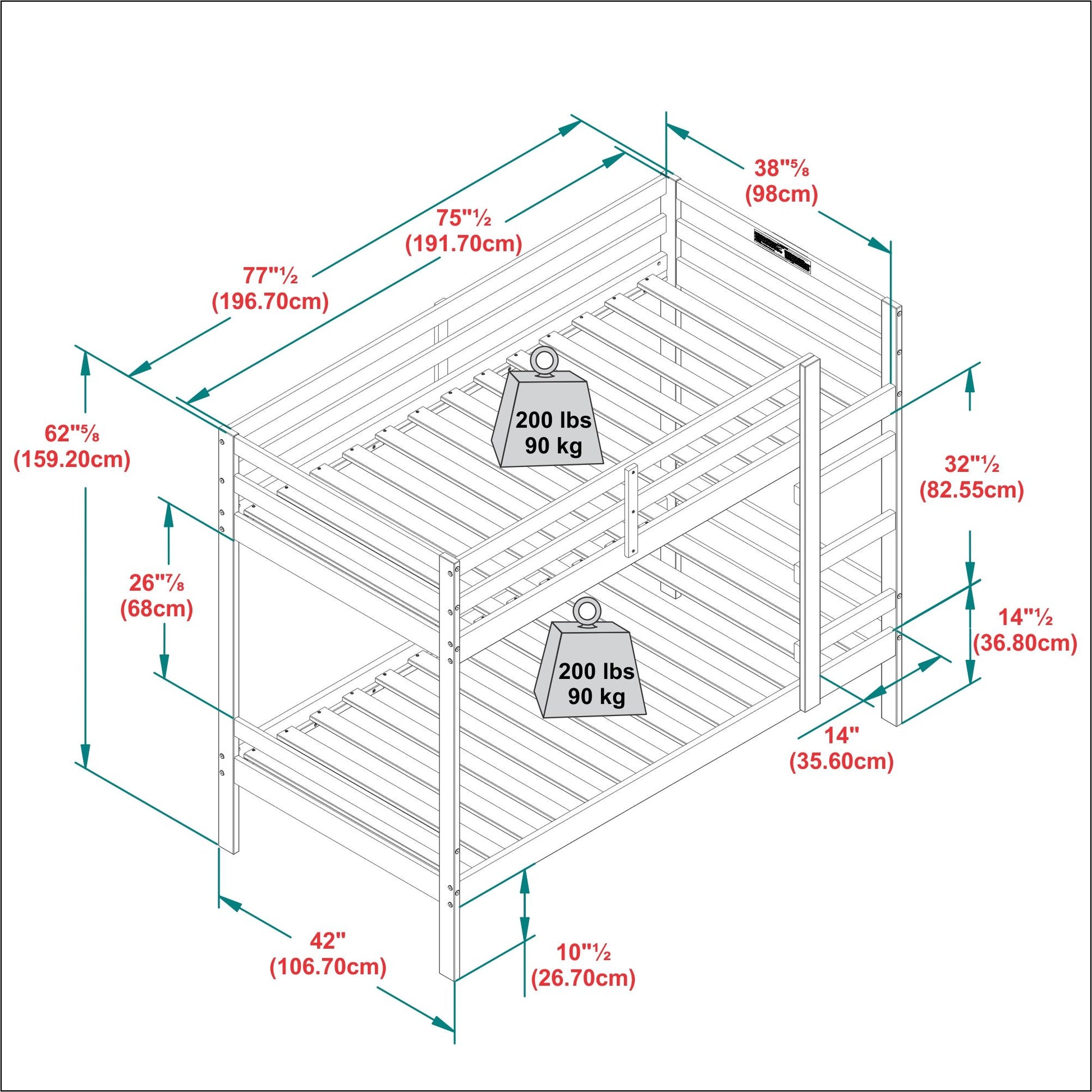 Modern Simple Solid Wood Twin Over Twin Bunk Bed - Olive Green