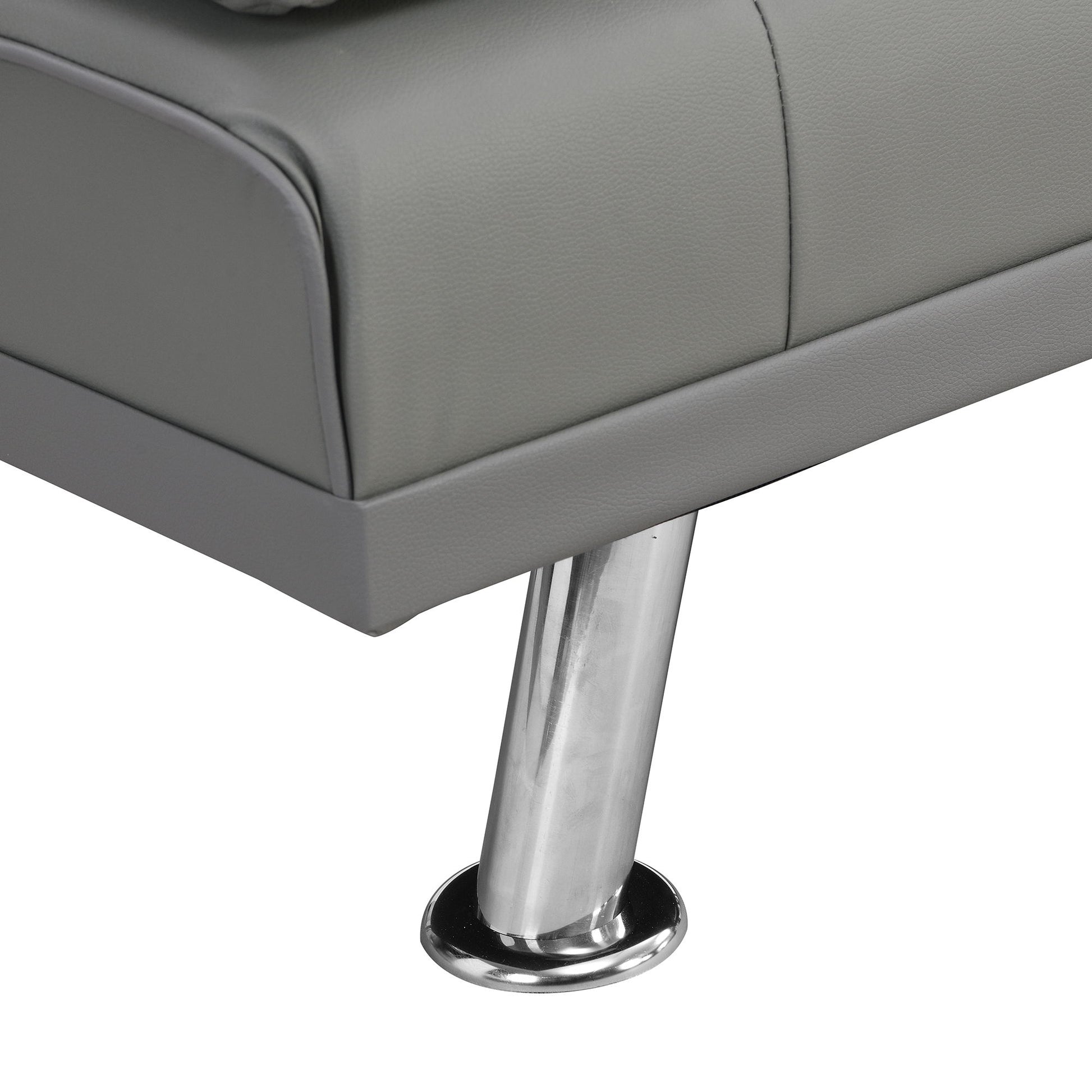 Modern Sofa Bed With Armrest 2 Holders, Wood Frame & Stainless Leg, Futon Style - Gray