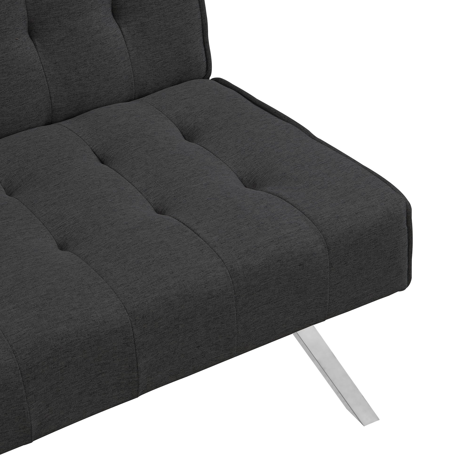 Faux Linen Wood Frame Futon Sofa Bed With Stainless Legs - Espresso