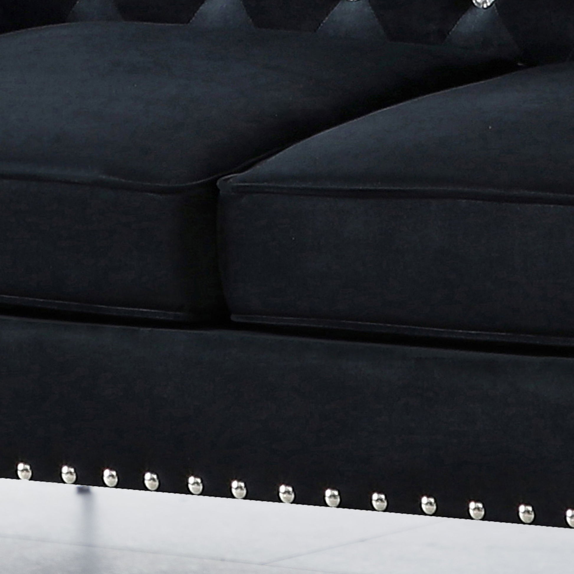 Modern Sofa Jeweled Buttons Tufted Square Arm Couch, 2 Pillows Included - Black