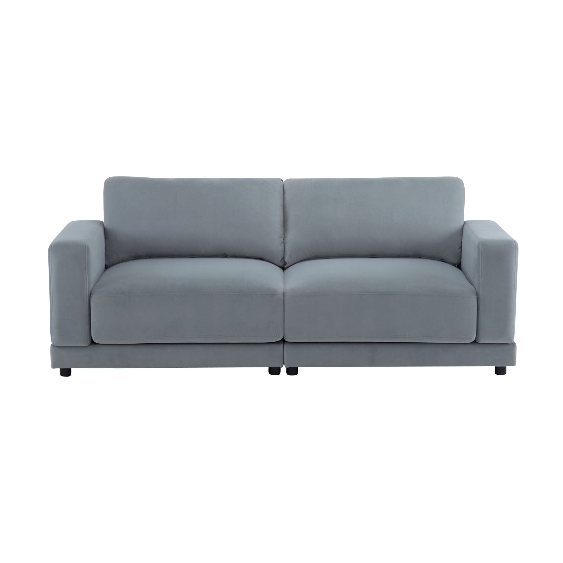 Modern Square Arm Sofa With Soft Velvet Upholstery, Deep Cushions, Sturdy Legs - Gray
