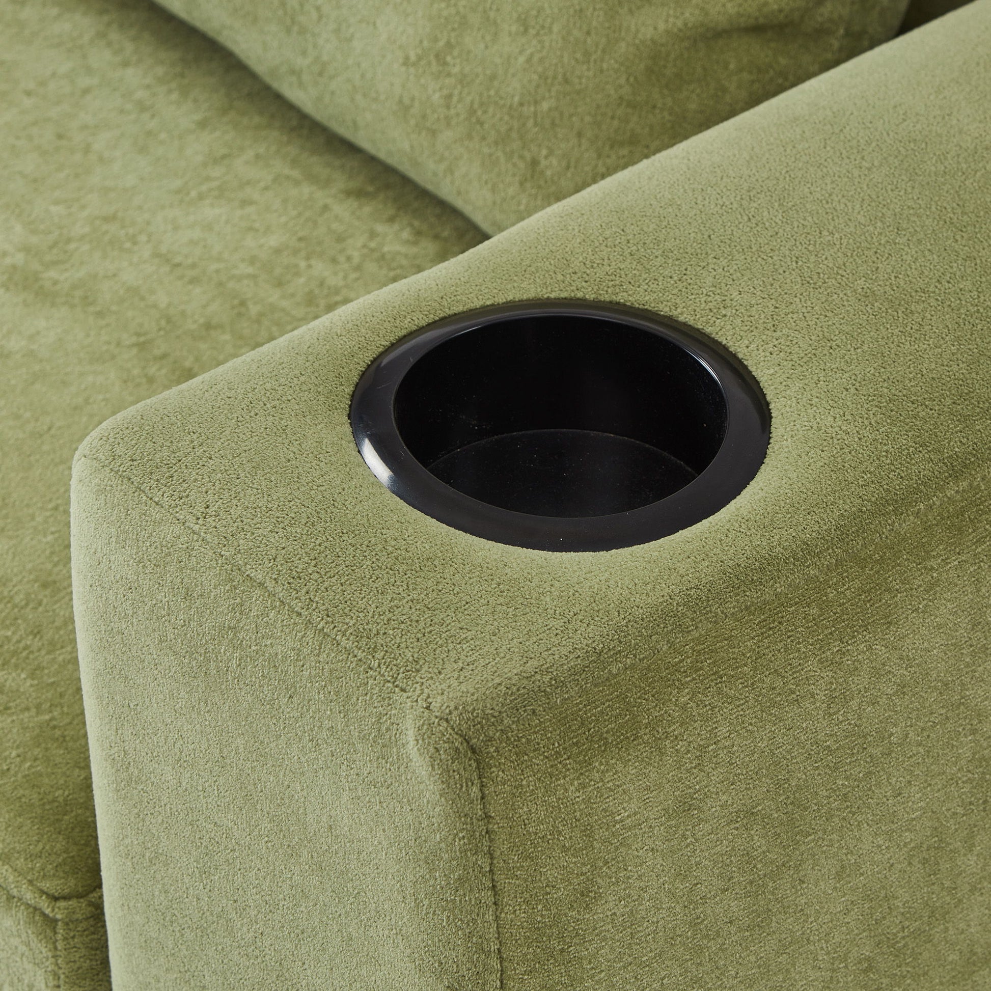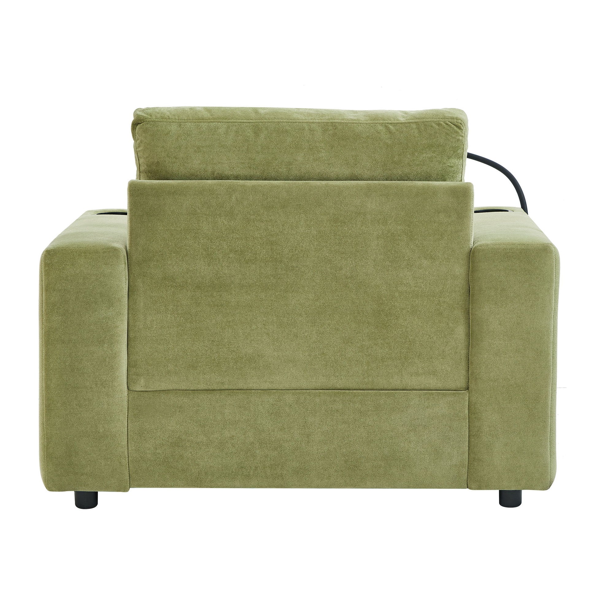 Modern Style Armchair Chaise Lounge Sofa Couch With Movable Storage Ottoman, USB Ports, Cup Holders, Phone Holder, Side Pockets - Green