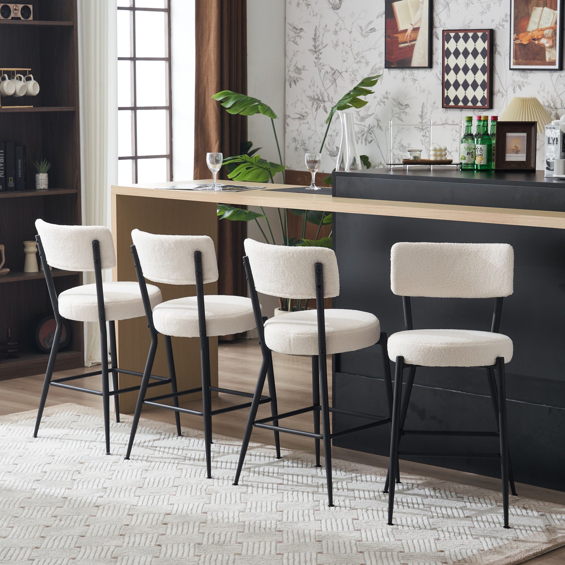 Modern Teddy Fabric Upholstered Bar Stools (Set of 4) - White
