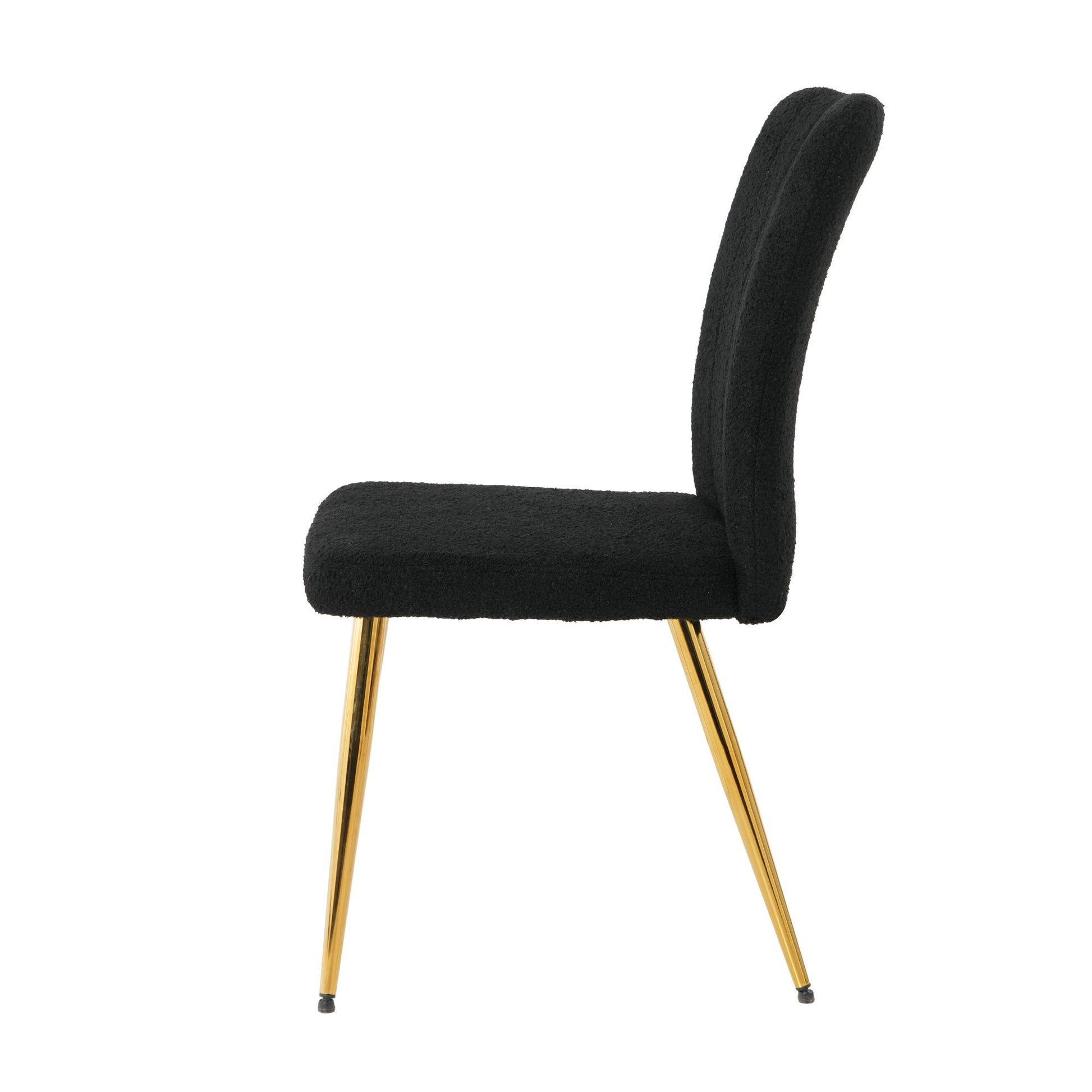 Modern Teddy Wool Dining Chair With Plated Metal Legs Upholstered Fabric Side Chair (Set of 4) - Black