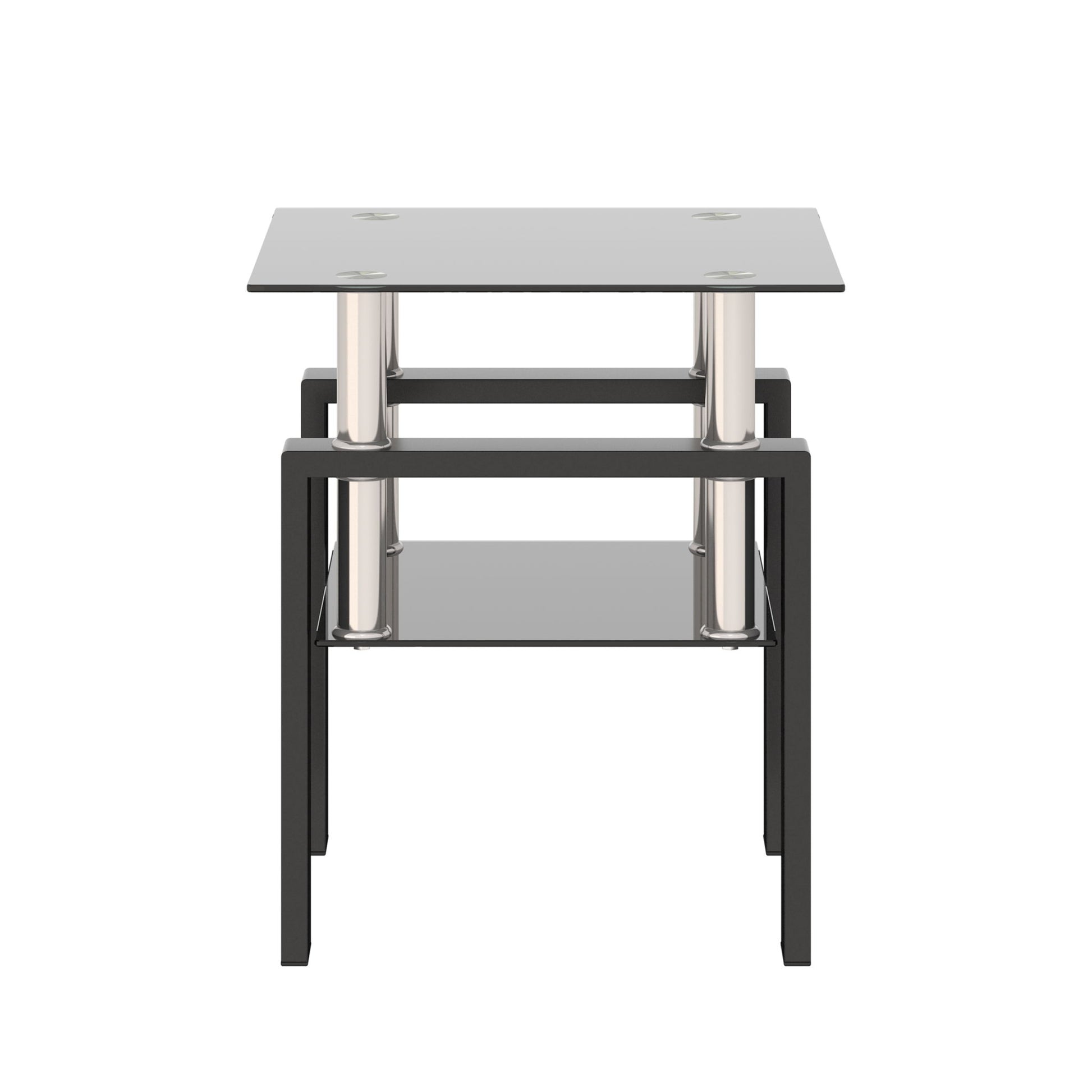 Modern Tempered Glass Tea Table, End Square Table For Living Room - Black