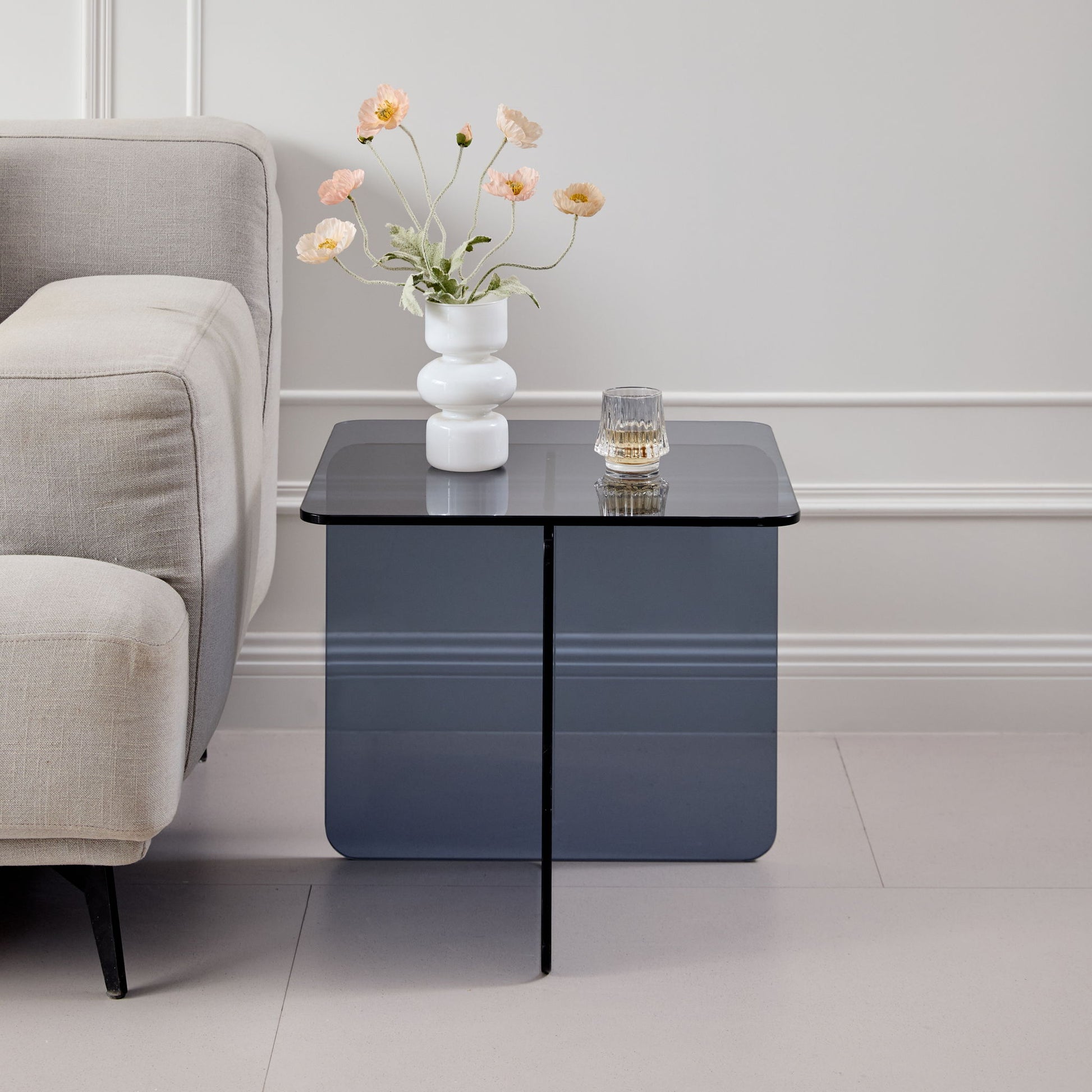 Tempered Glass Side Table, Multi Purpose Night Stand, Durable Transparent End Table - Smoke Gray