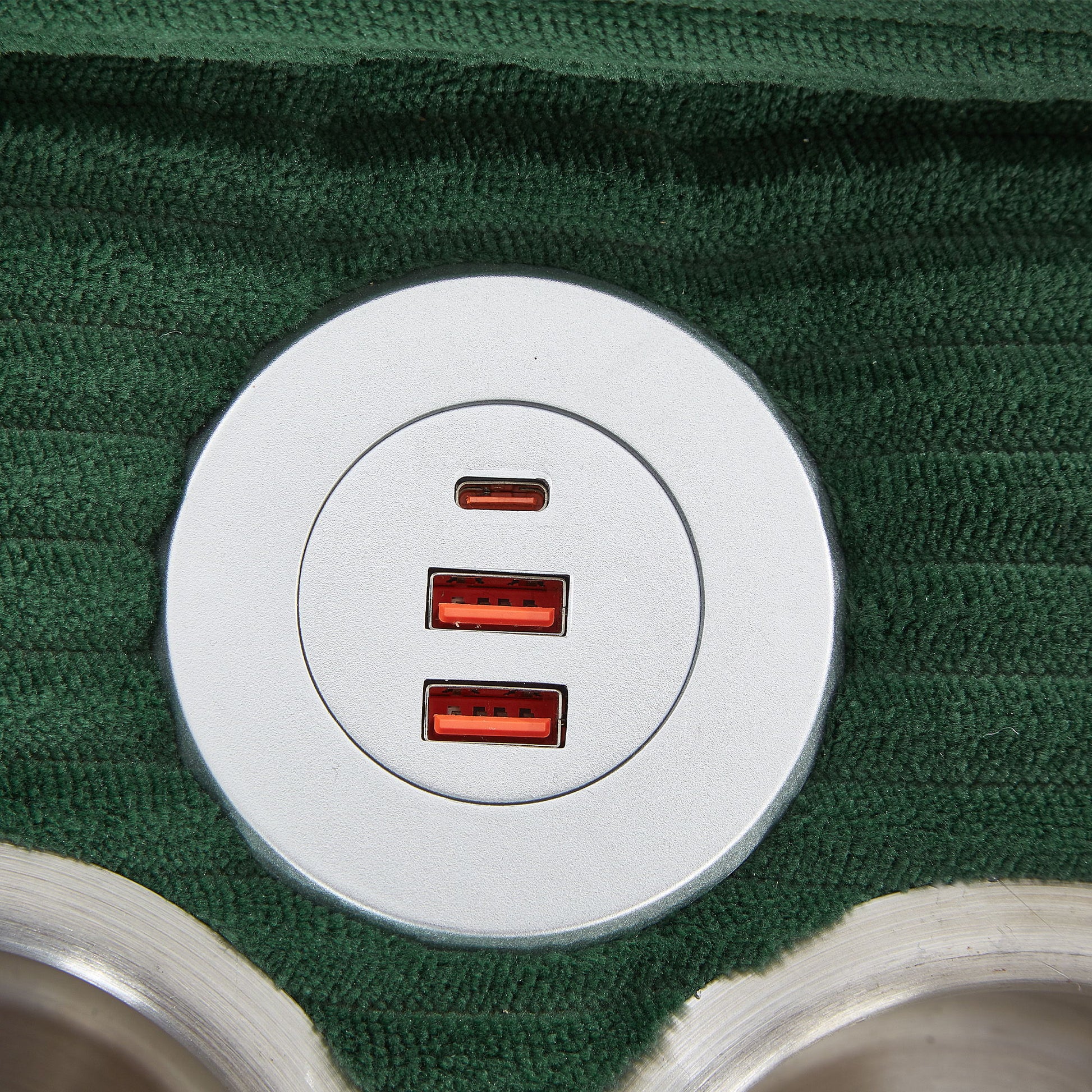 - Built-in Center Console: Includes storage, dual cup holders, and three USB ports for convenient device charging.