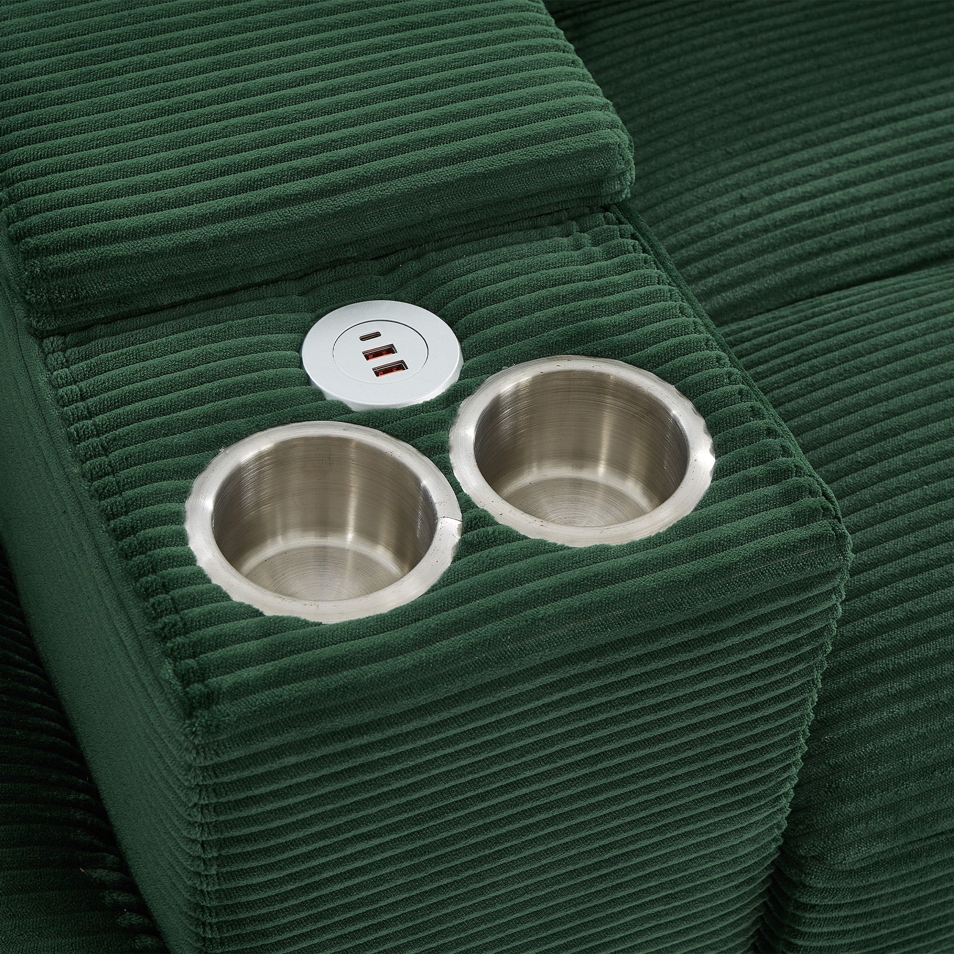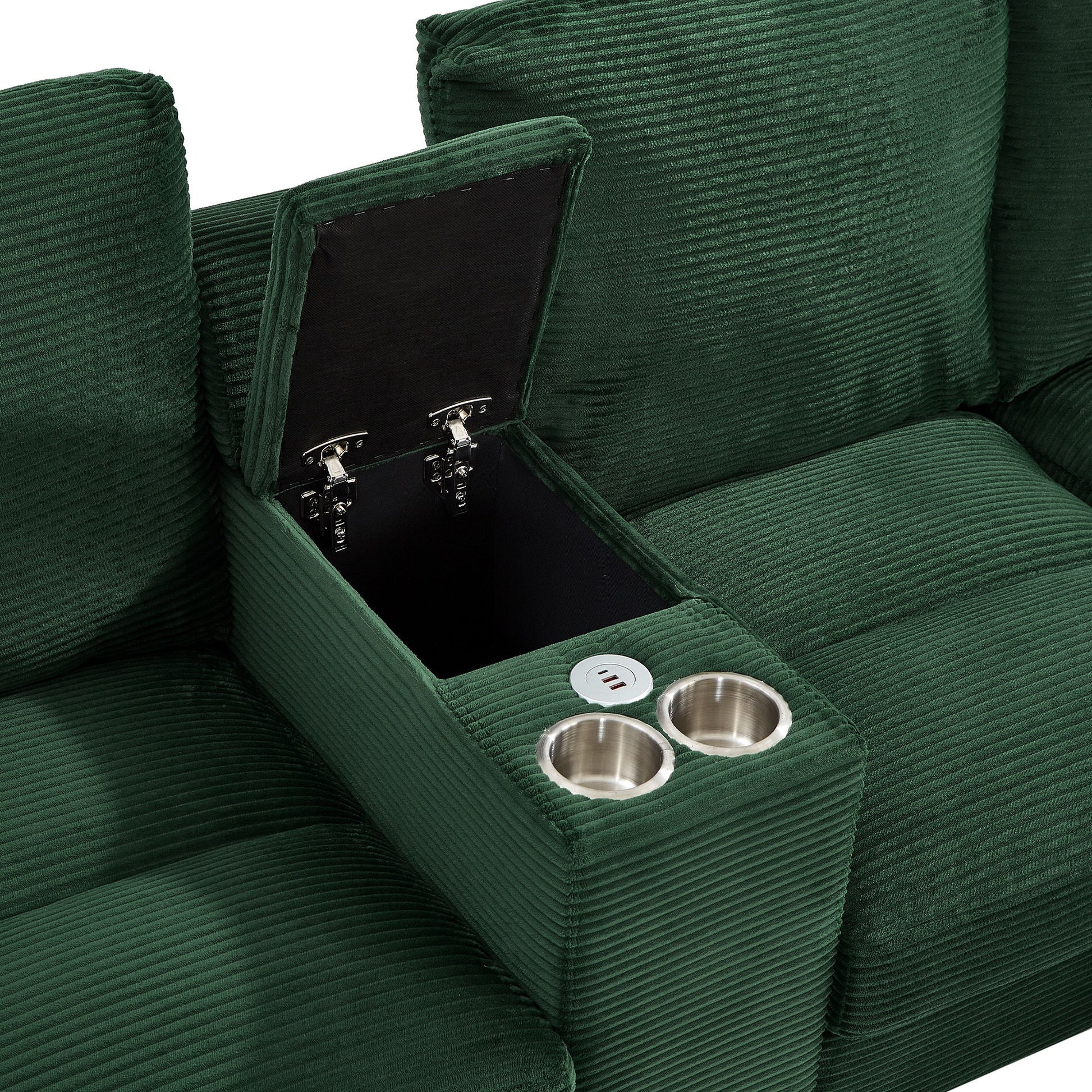 U-Shaped Sectional Sofa, Hidden Storage Ottomans, USB Ports, And Cup Holders - Green