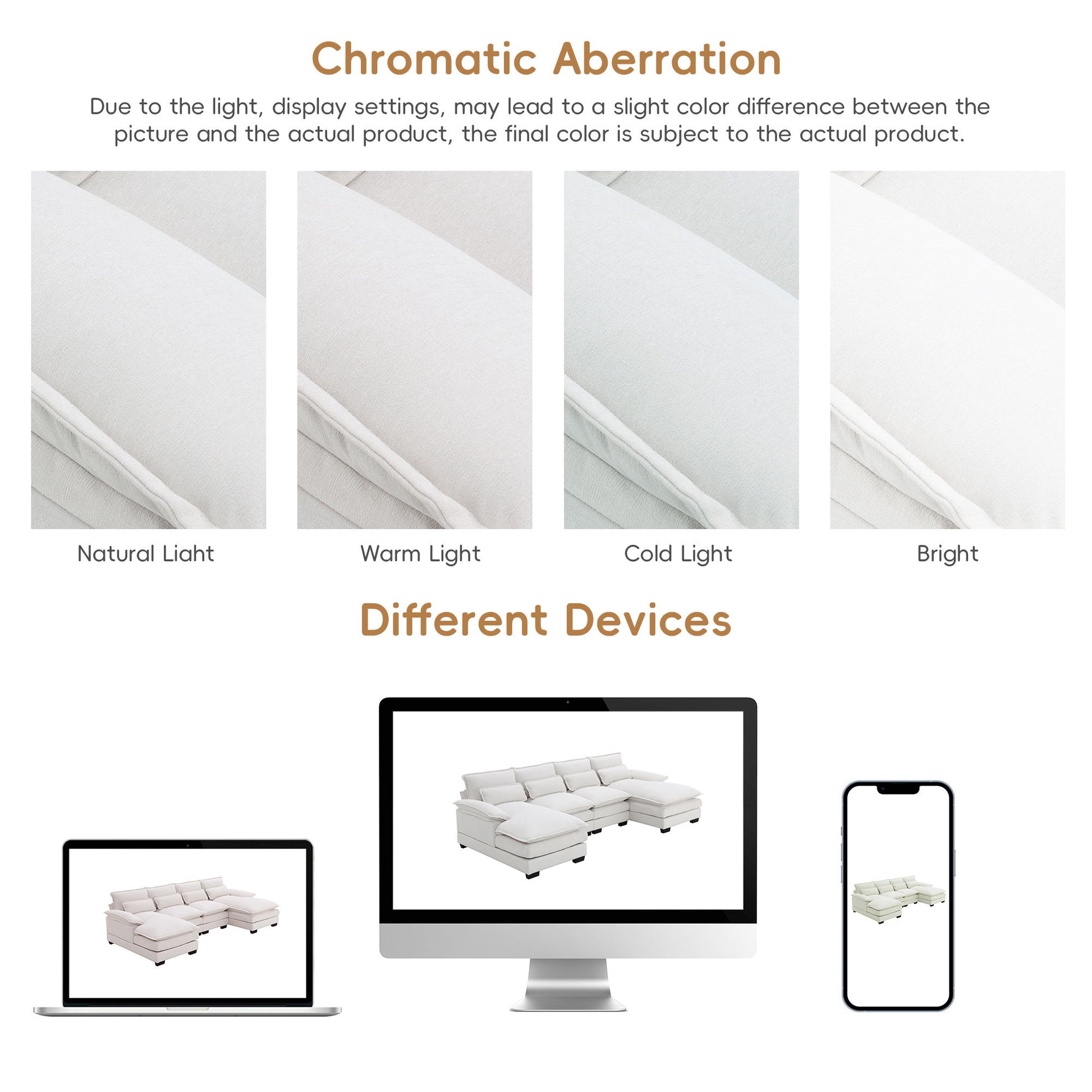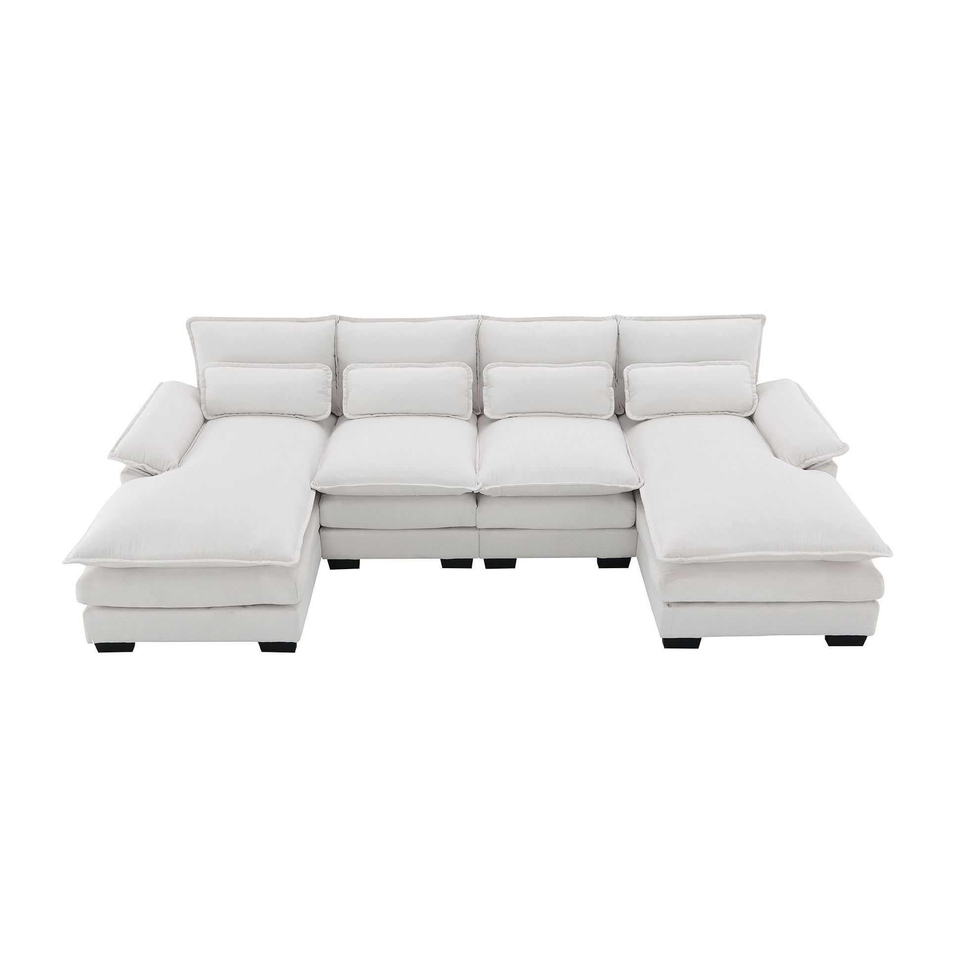 Modern U-Shaped Sectional Sofa With Waist Pillows, 6 Seat Upholstered Symmetrical Sofa Furniture, Sleeper Sofa Couch With Chaise Lounge - White