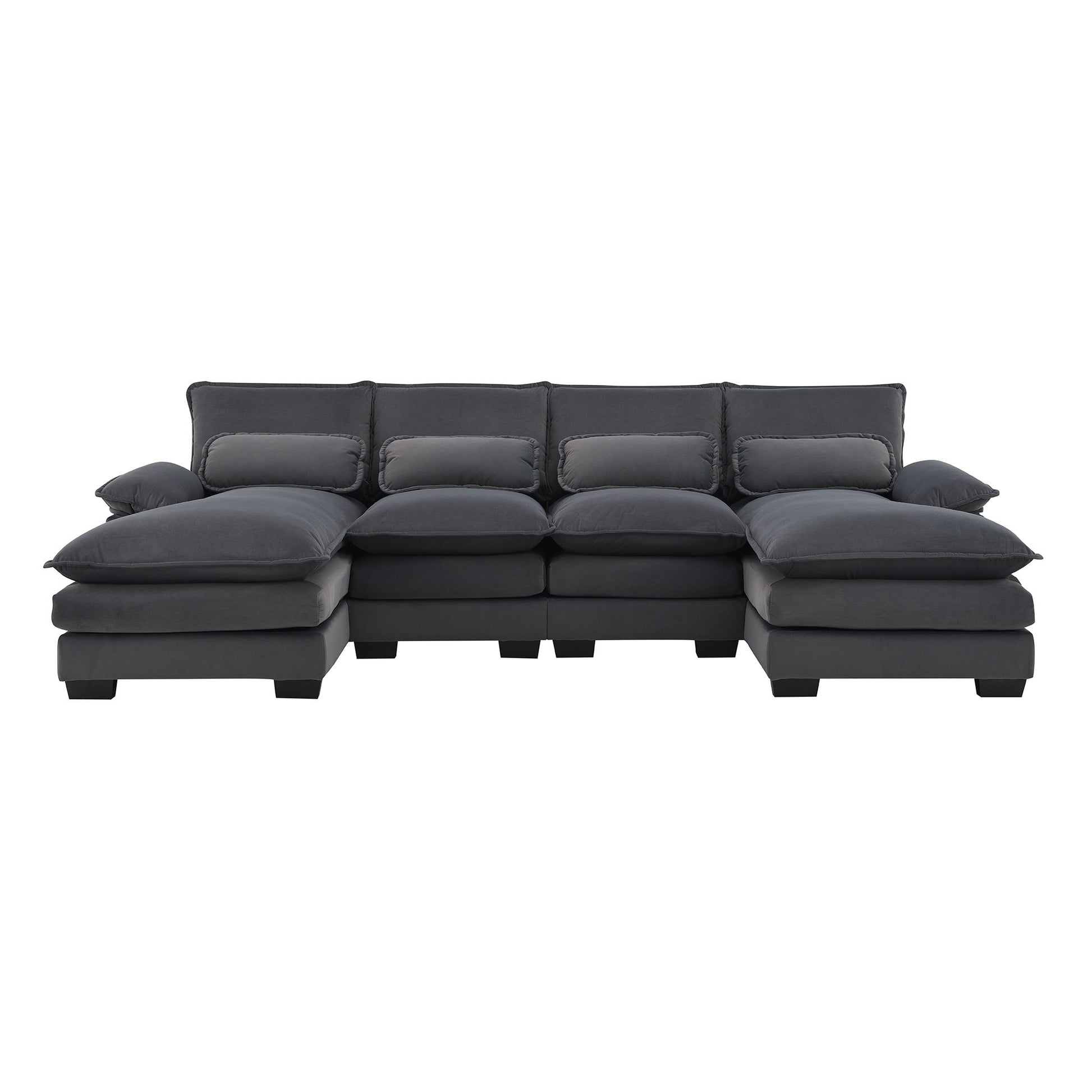 Modern U-Shaped Sectional Sofa With Waist Pillows, 6 Seat Upholstered Symmetrical Sofa Furniture, Sleeper Sofa Couch With Chaise Lounge - Gray