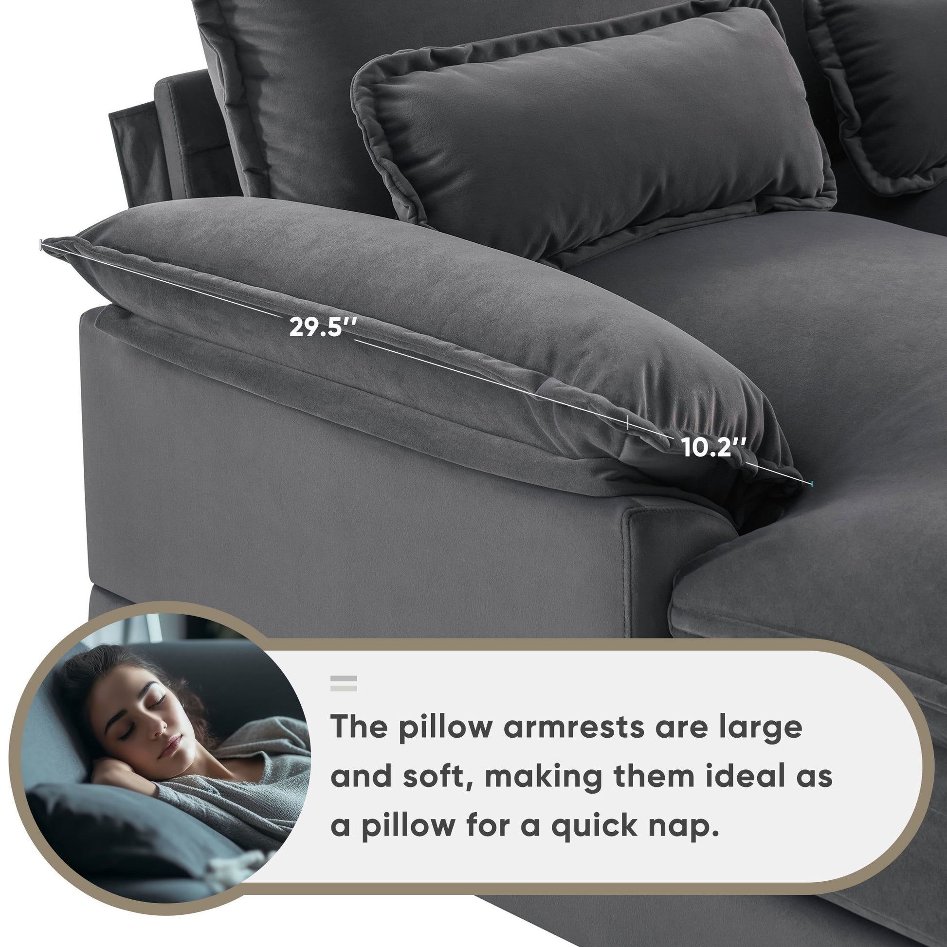 - High-Quality: The sofa features a sturdy wood and iron frame that can hold up to 330 lbs/seat, making it unencumbered for everyday use. It is also equipped with solid wood legs, which are stable and durable, not easy to scratch the floor.