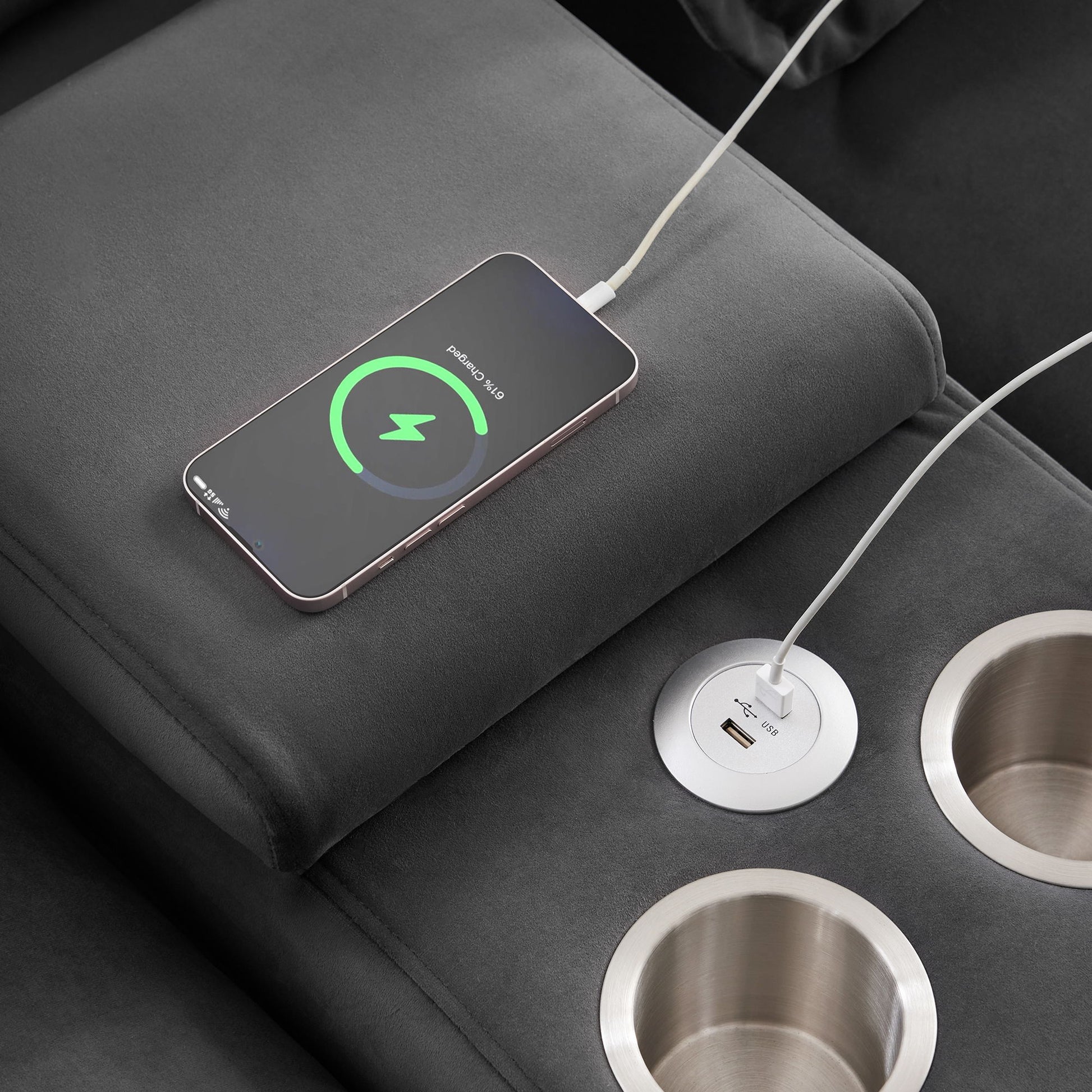 - Made for Convenience: The sofa comes with a console that can store cup holdersand and USB ports for convenience.