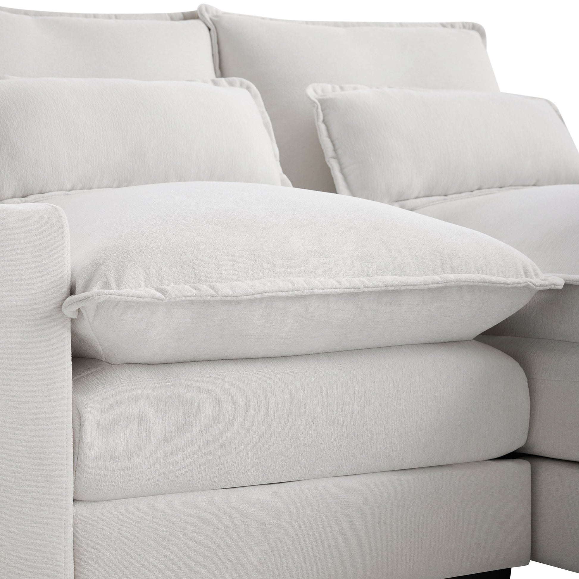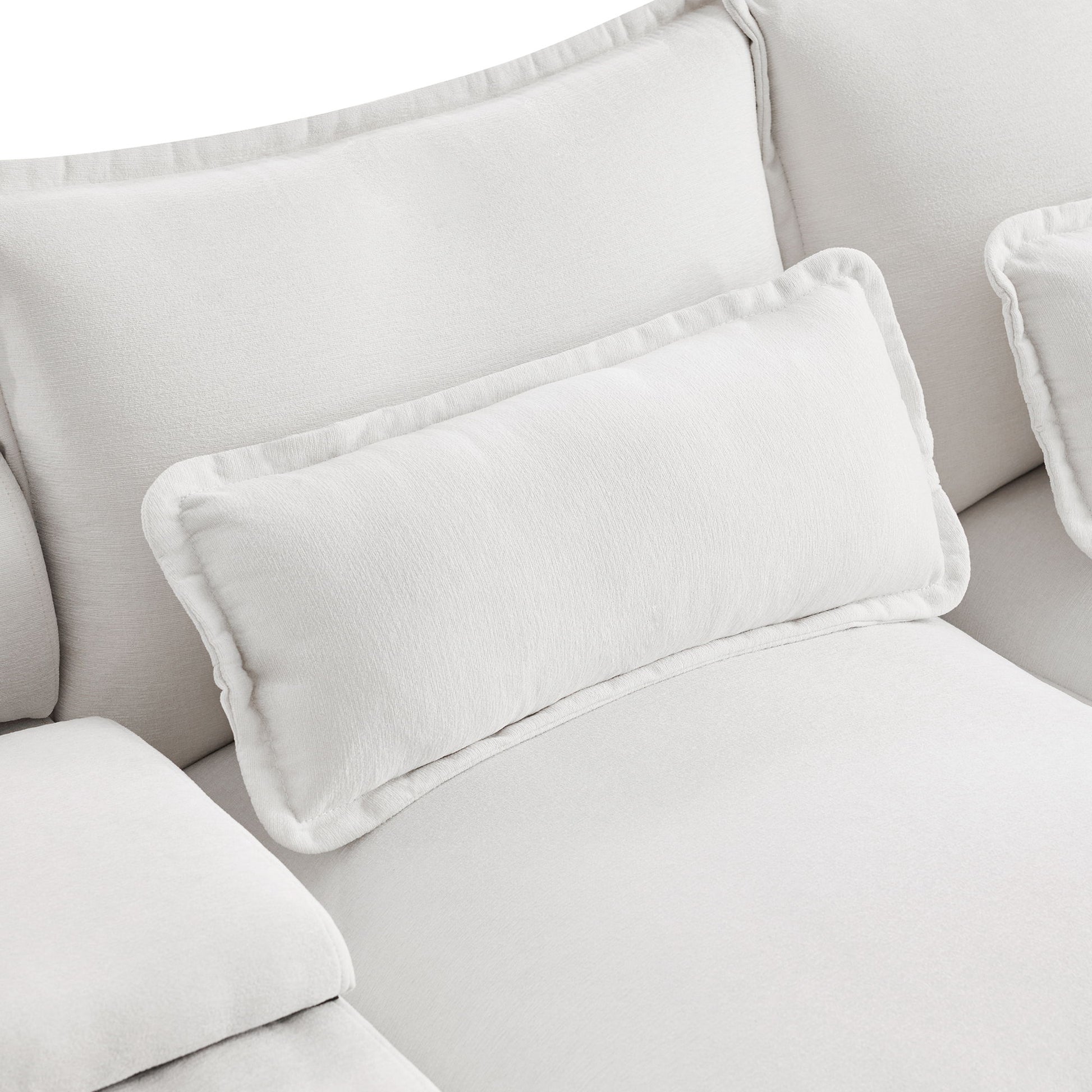 - Comfortable design: The white sofa is made of high-quality chenille, which is soft, comfortable and durable.Armrest pillows on both sides of the sofa can relax your head, and there are also 4 lumbar pillows to give better lumbar support, making it easy to adjust your posture and reduce discomfort and fatigue.