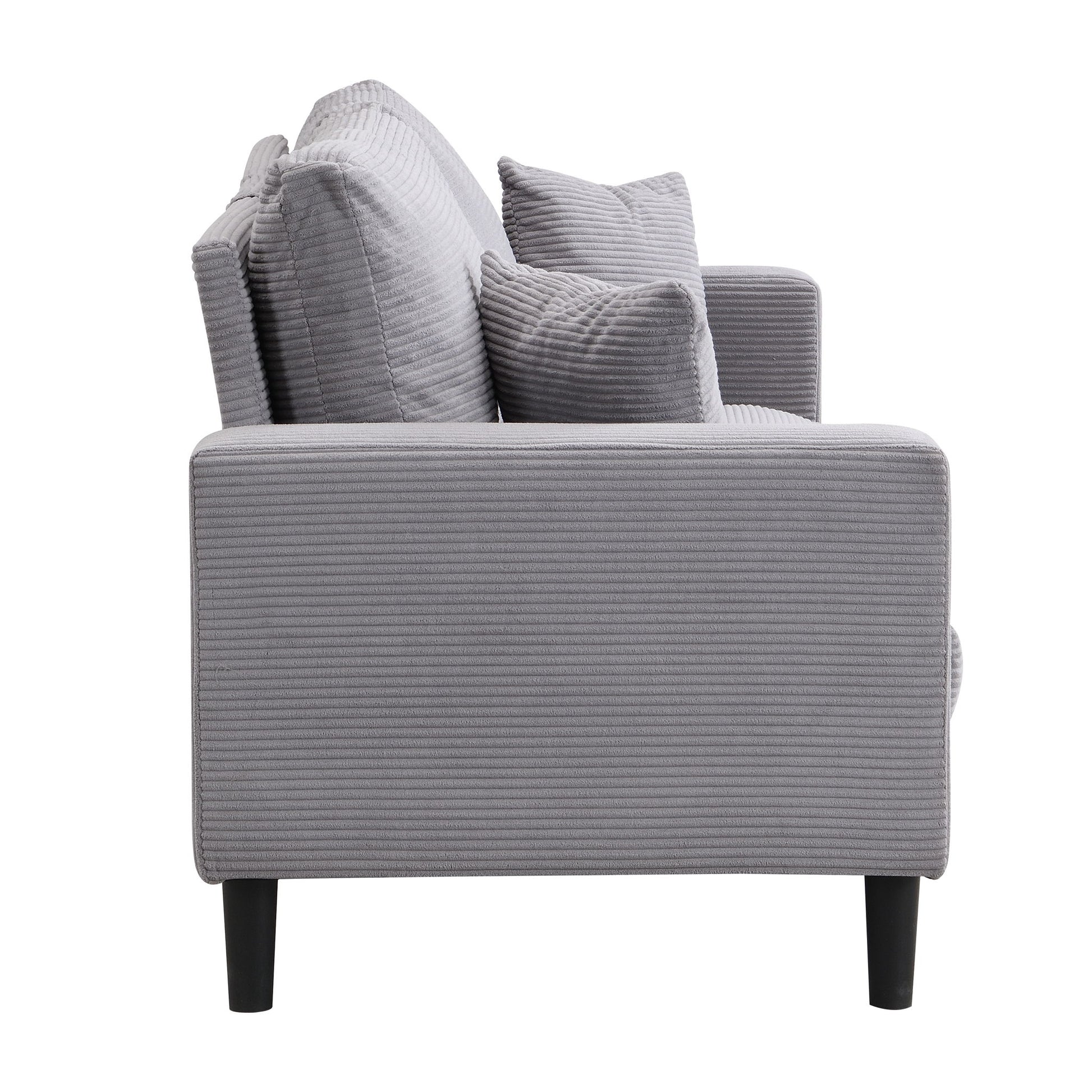 Modern Upholstered High Resilience 3 Seater SofaCorduroy With Wooden Frame - Dark Gray