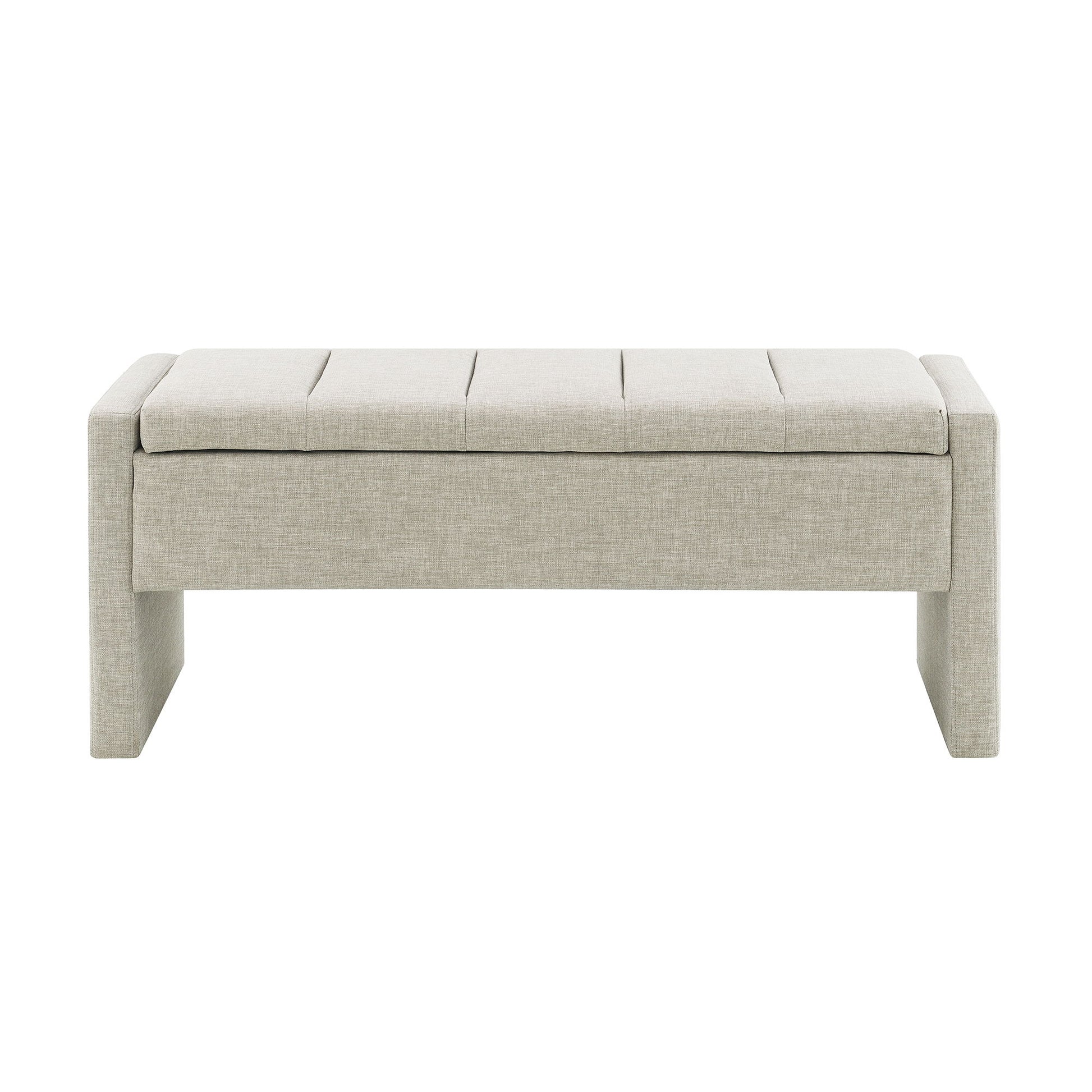 Modern Bed End Bench With Storage, Upholstered Large Foot Rest Stool, Comfy Window Vanity Bench For Living Room, Dorm, Coffee Table, Linen - Light Gray