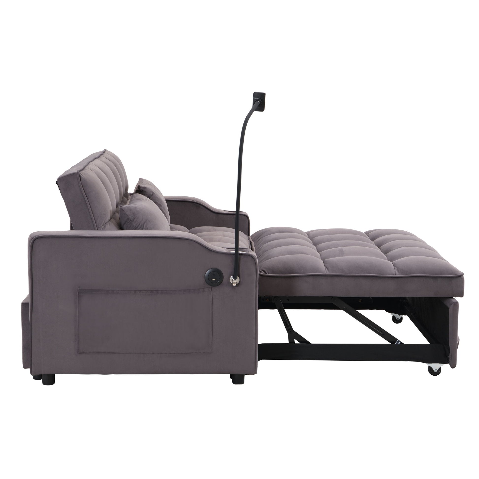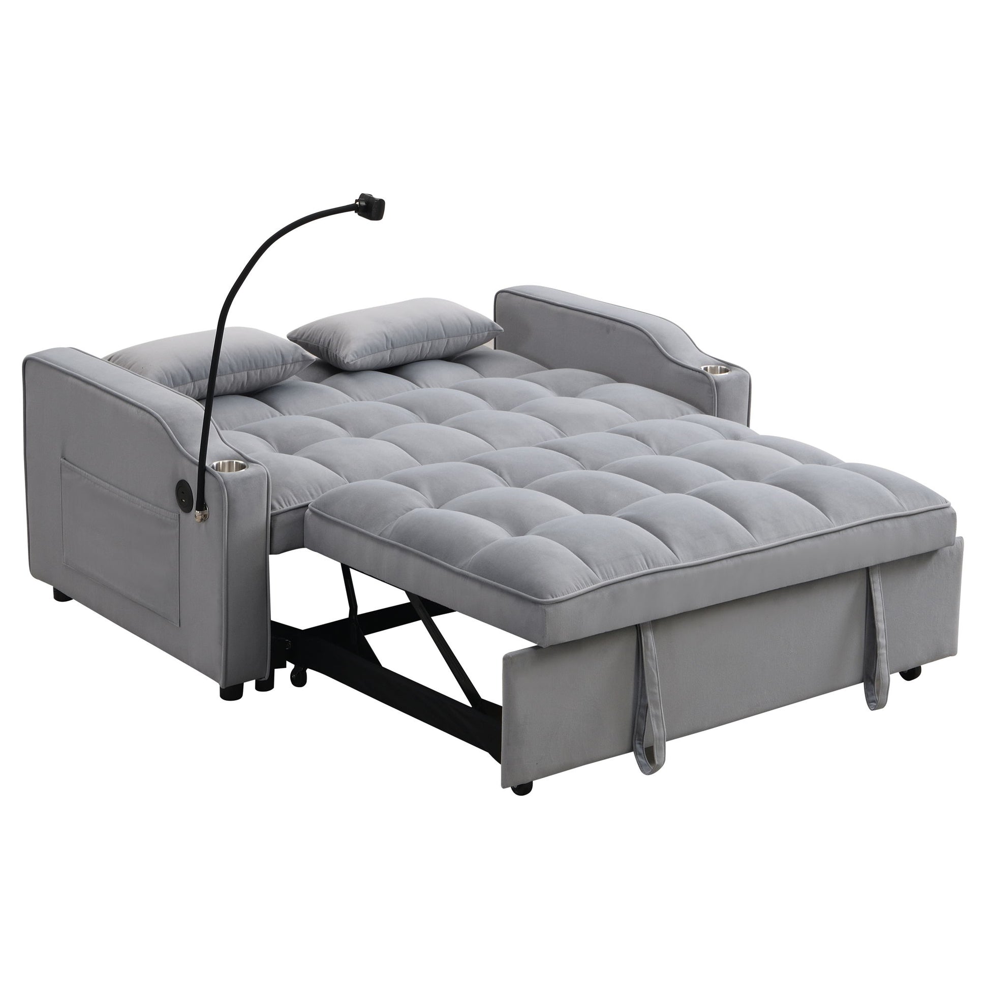 Modern Velvet Loveseat With Pullout Bed, Adjustable Reclining Backrest
