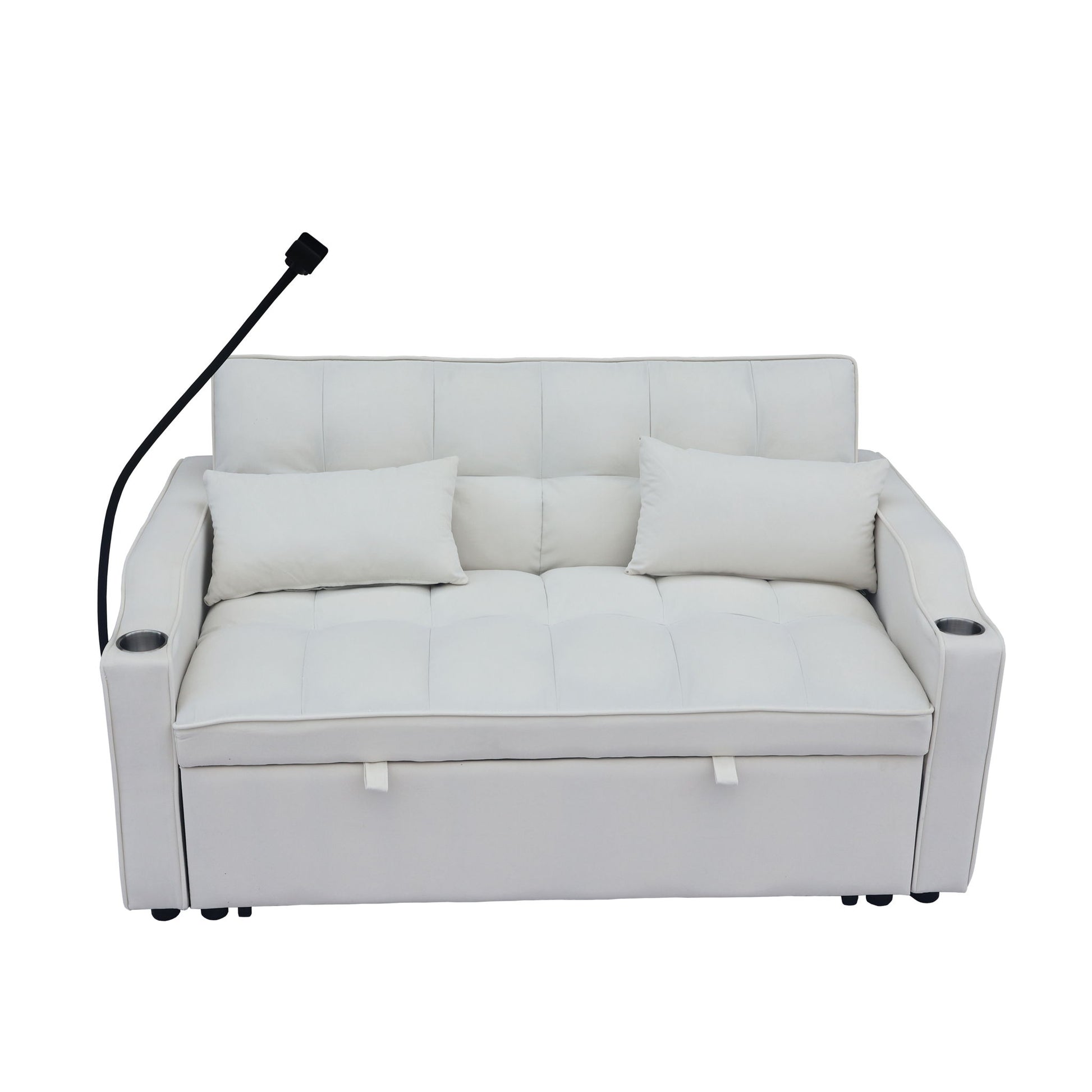 Modern Velvet Loveseat Futon Sofa Couch With Pullout Bed, Adjustable Reclining Backrest - Beige