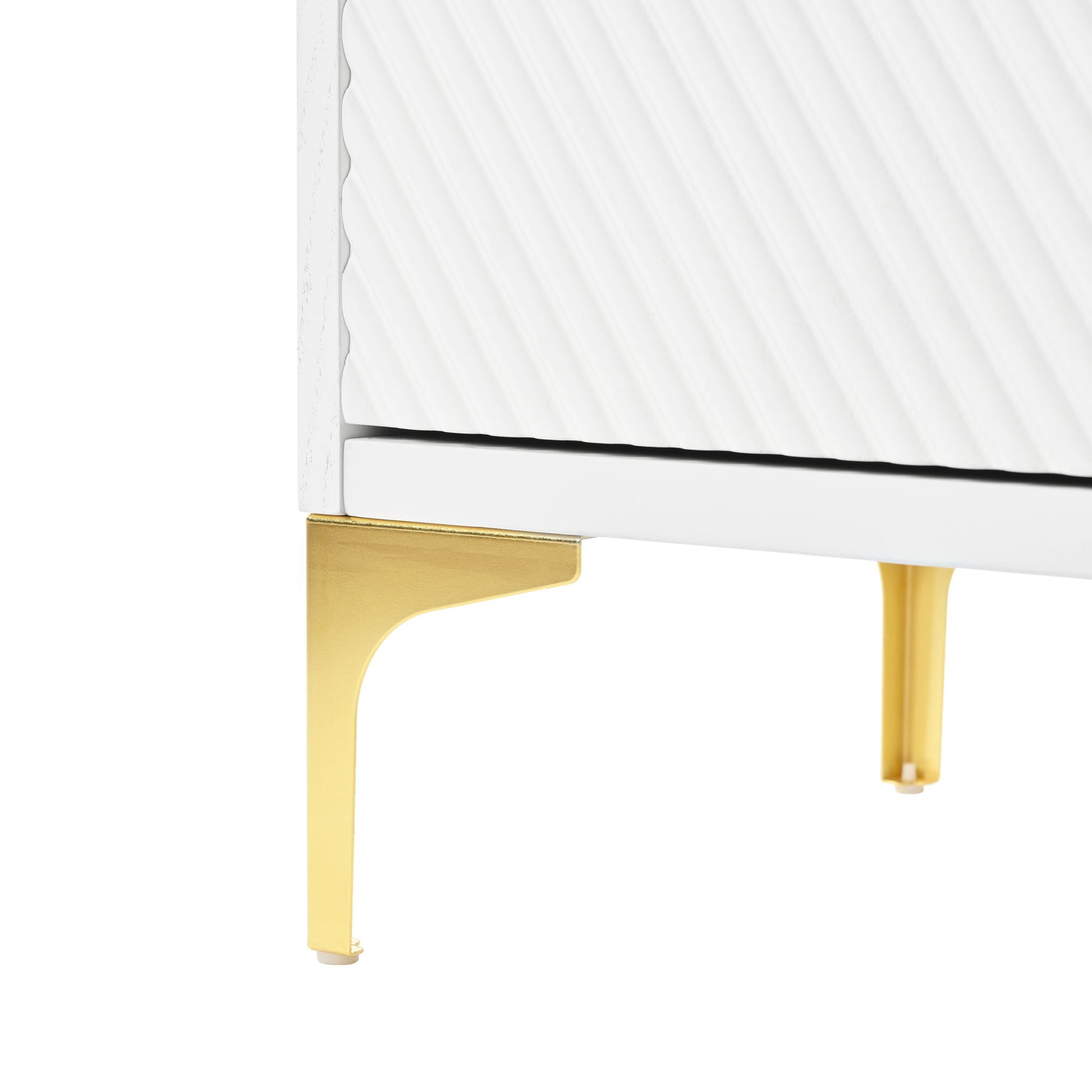 Modern Wood Sideboard Cabinet With Carved Door Panels, Adjustable Shelves, And Sturdy Metal Legs - White