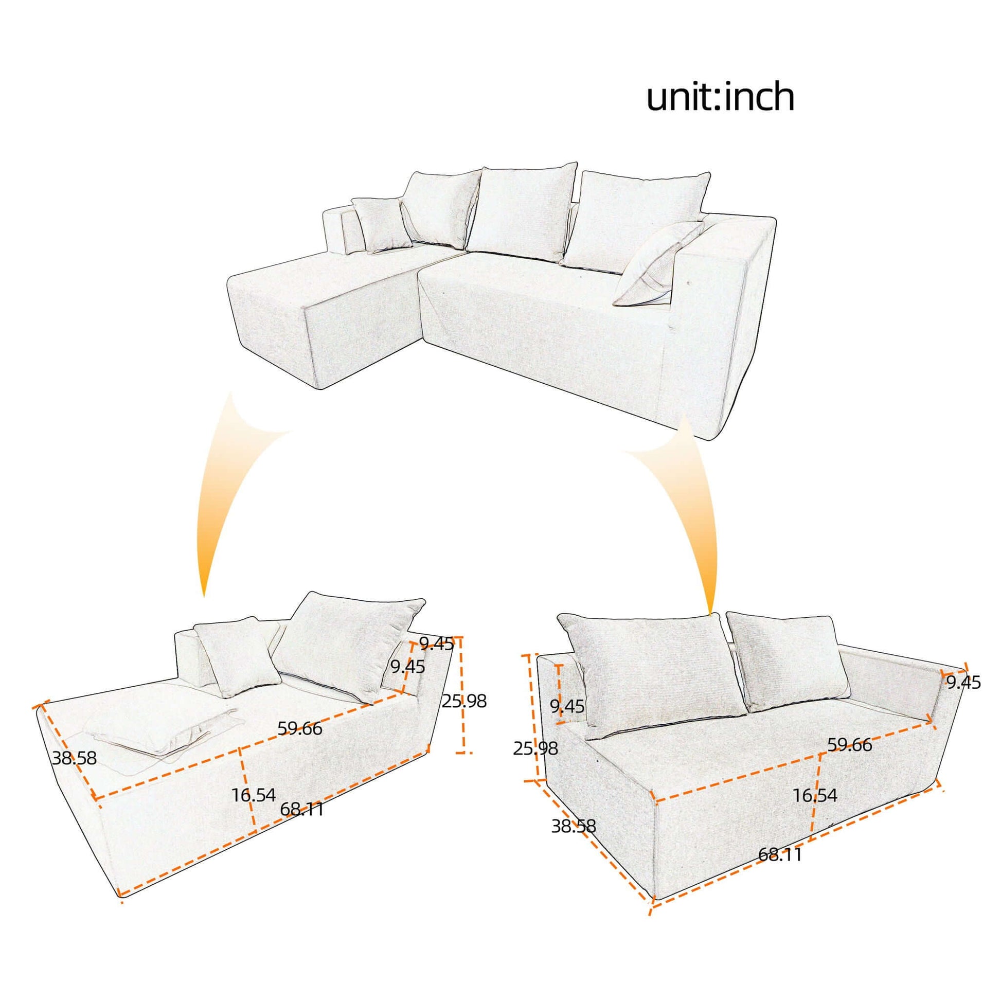 Corner Combination Sofa Sectional Couch, Modular Design For Living Spaces - Beige