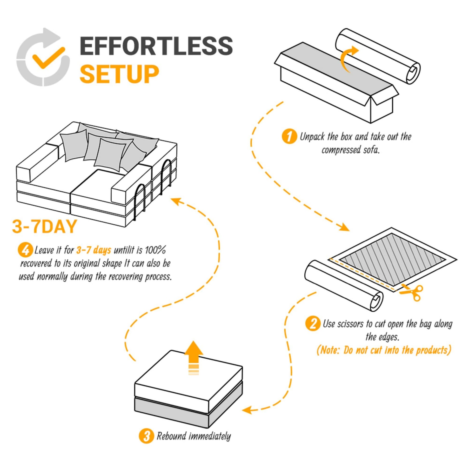 - Effortless Setup: Open the plastic bag outside the sofa, tap each part, and wait for the sofa to bounce back. You will get a comfortable modular segmented sofa. We have saved you valuable installation time.