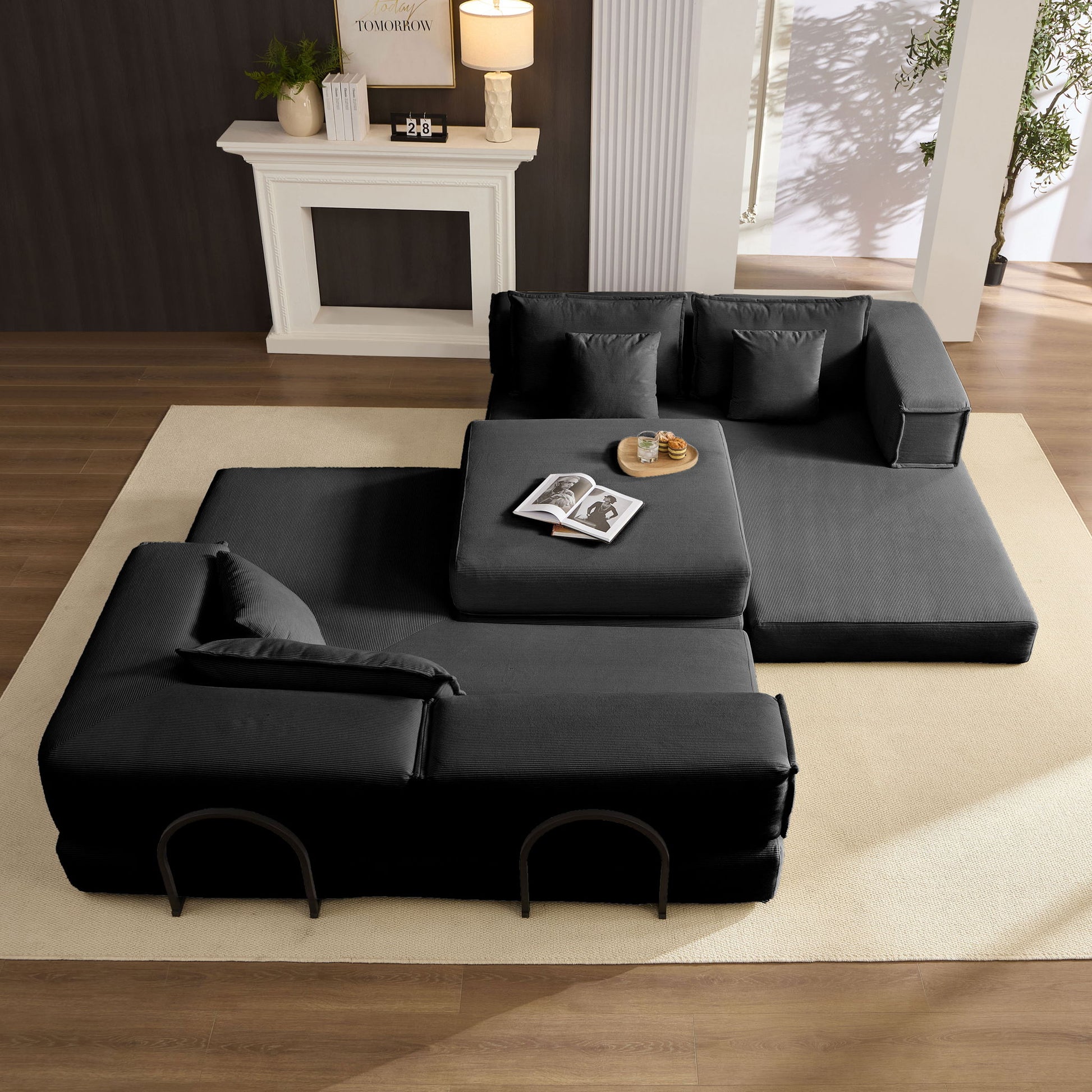 Oversized Upholstered Sectional Sofa Couch Set, Modular L Shaped Floor Sofa Set With 6 Pillows For Living Rooms - Black