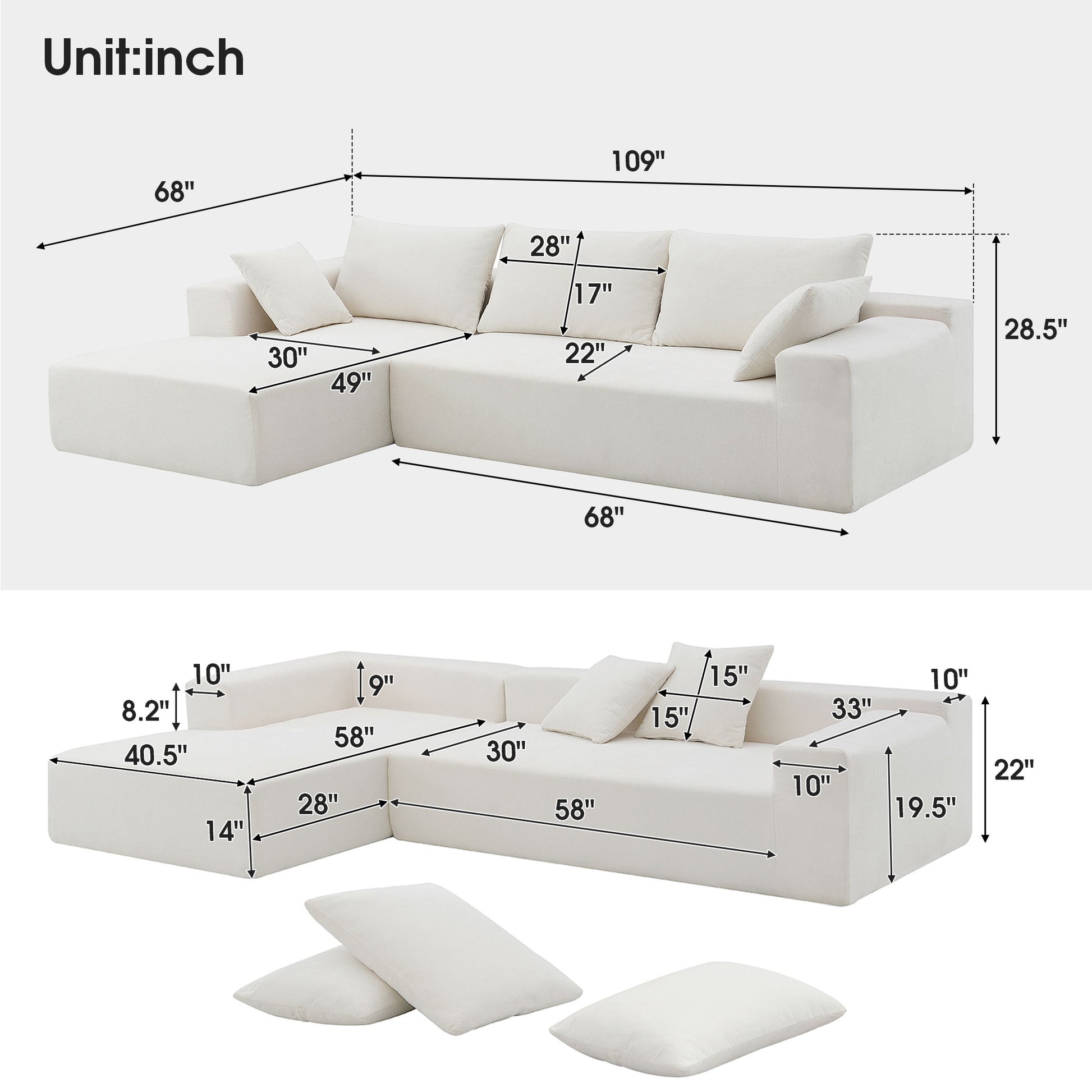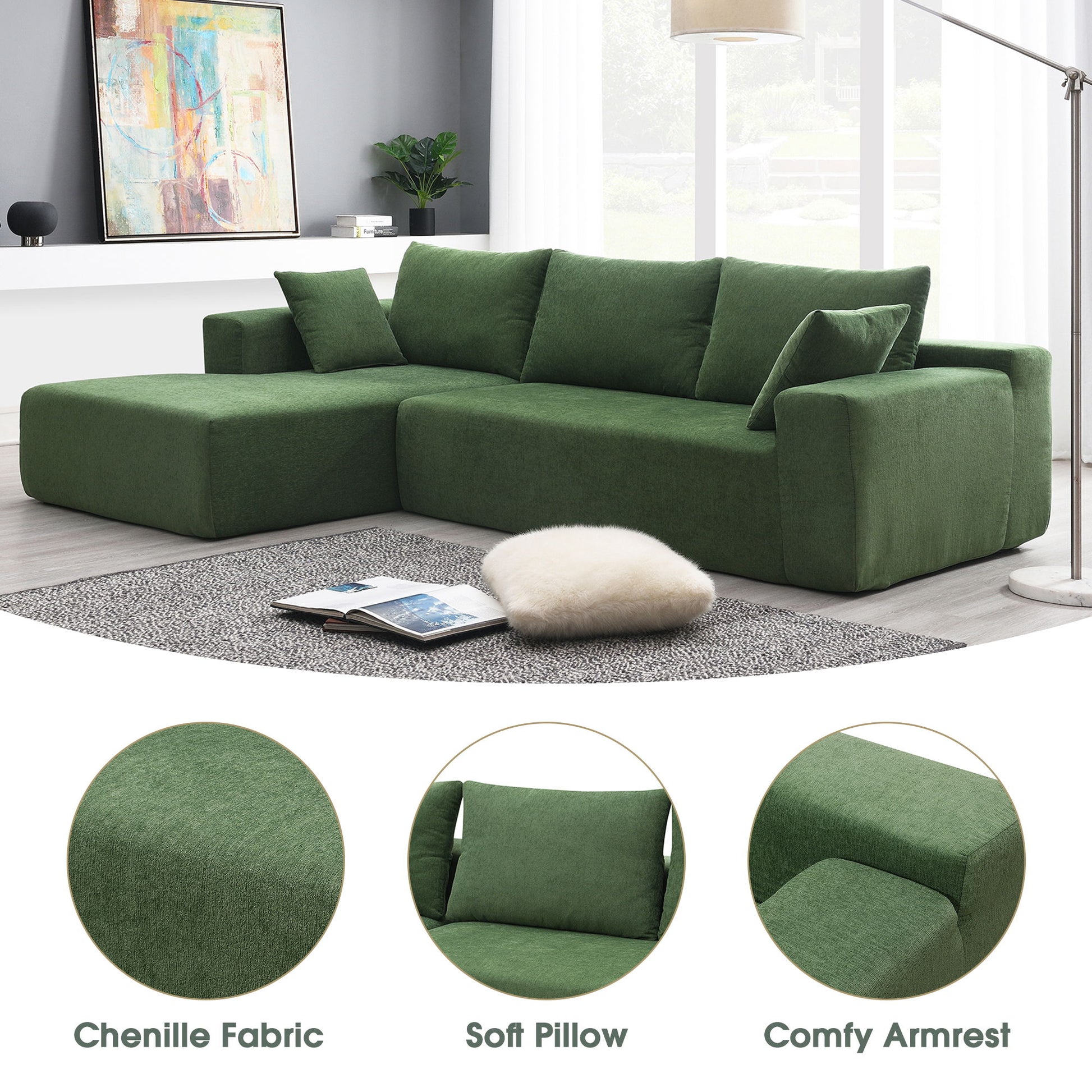 - Timeless and Chic Design: The modern L-shape sofa couch features a simple style with clean lines and premium chenille fabric, making it the centerpiece of your home.