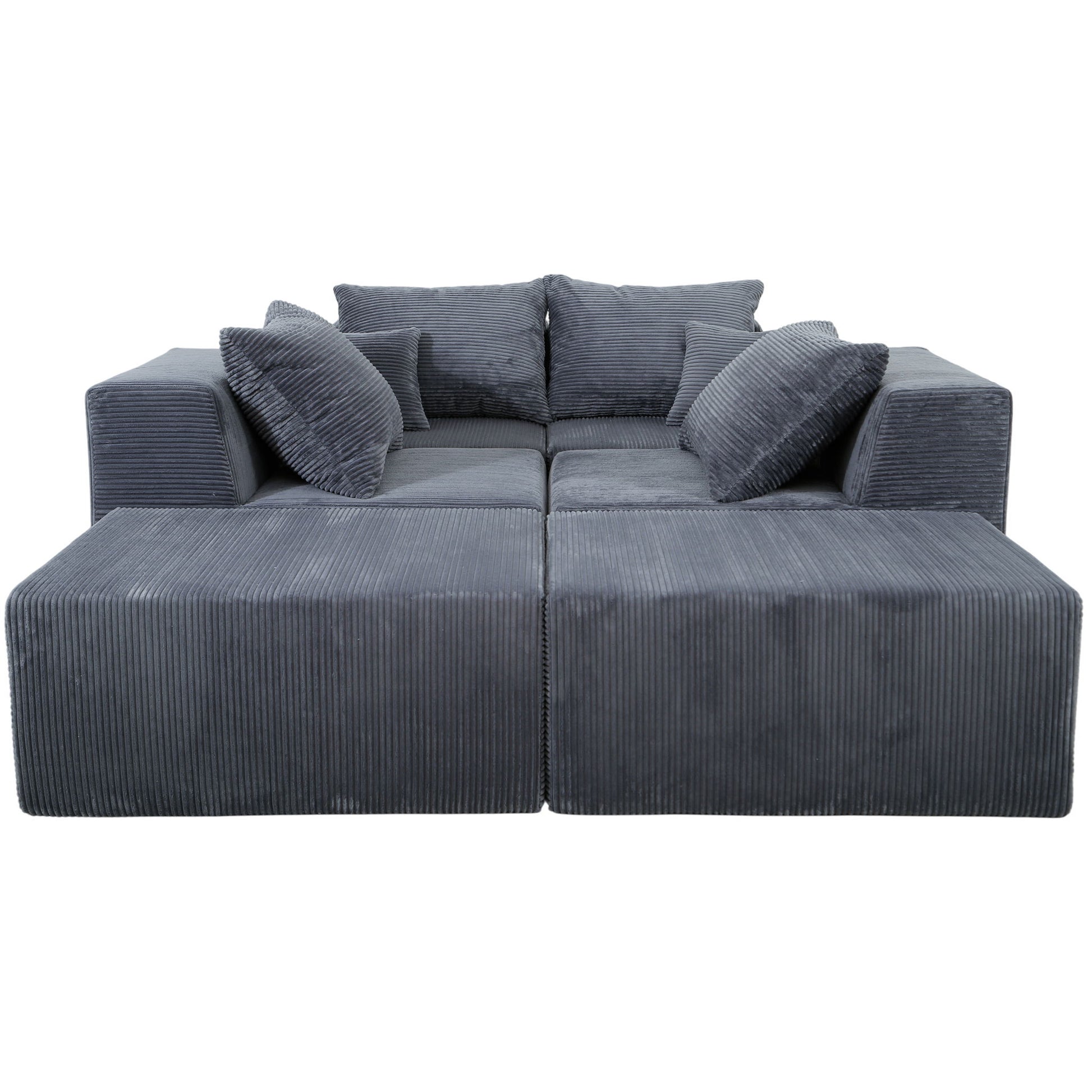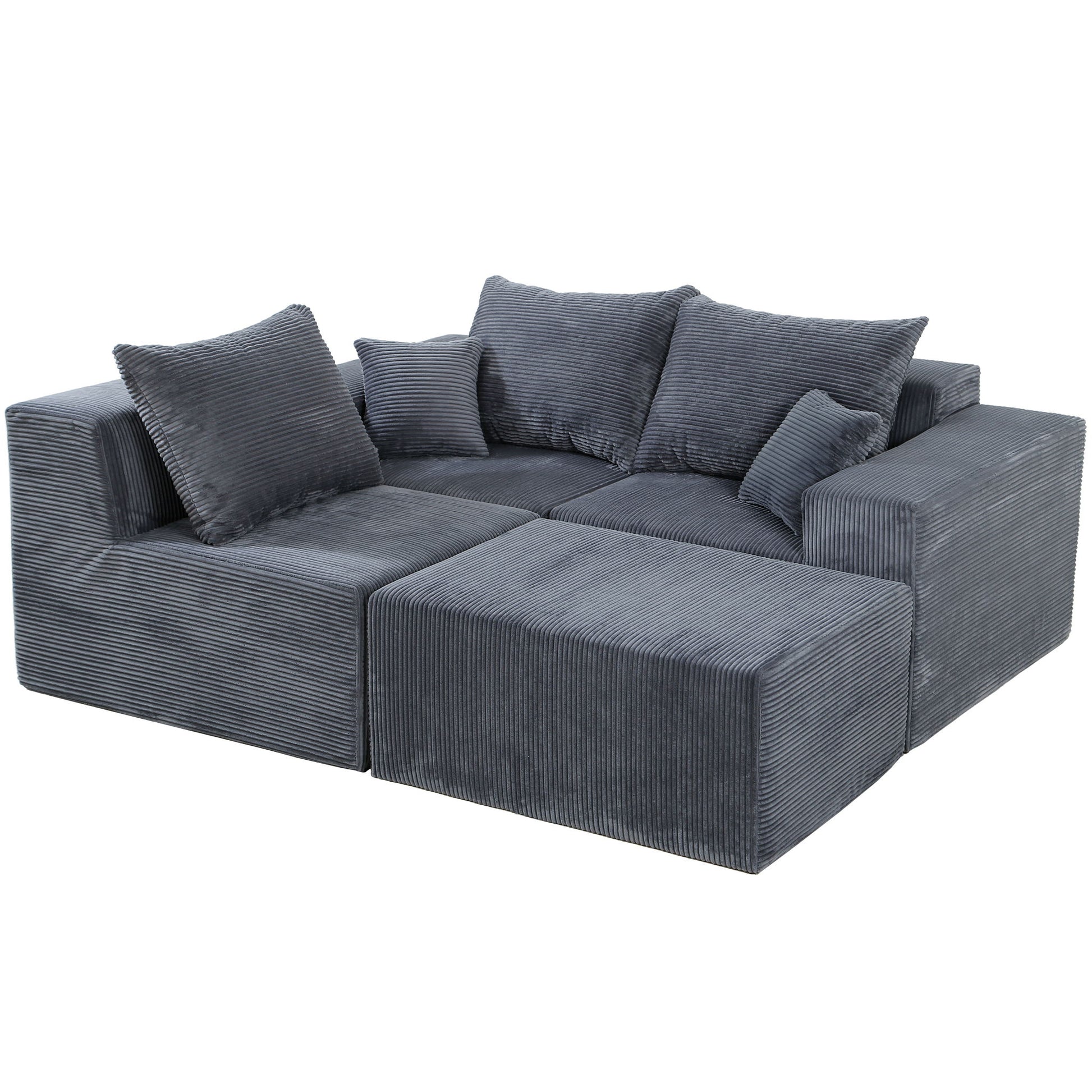 4 Piece Modular L Shaped Sectional Sofa With Spacious Chaise Lounge Corduroy Upholstery - Gray