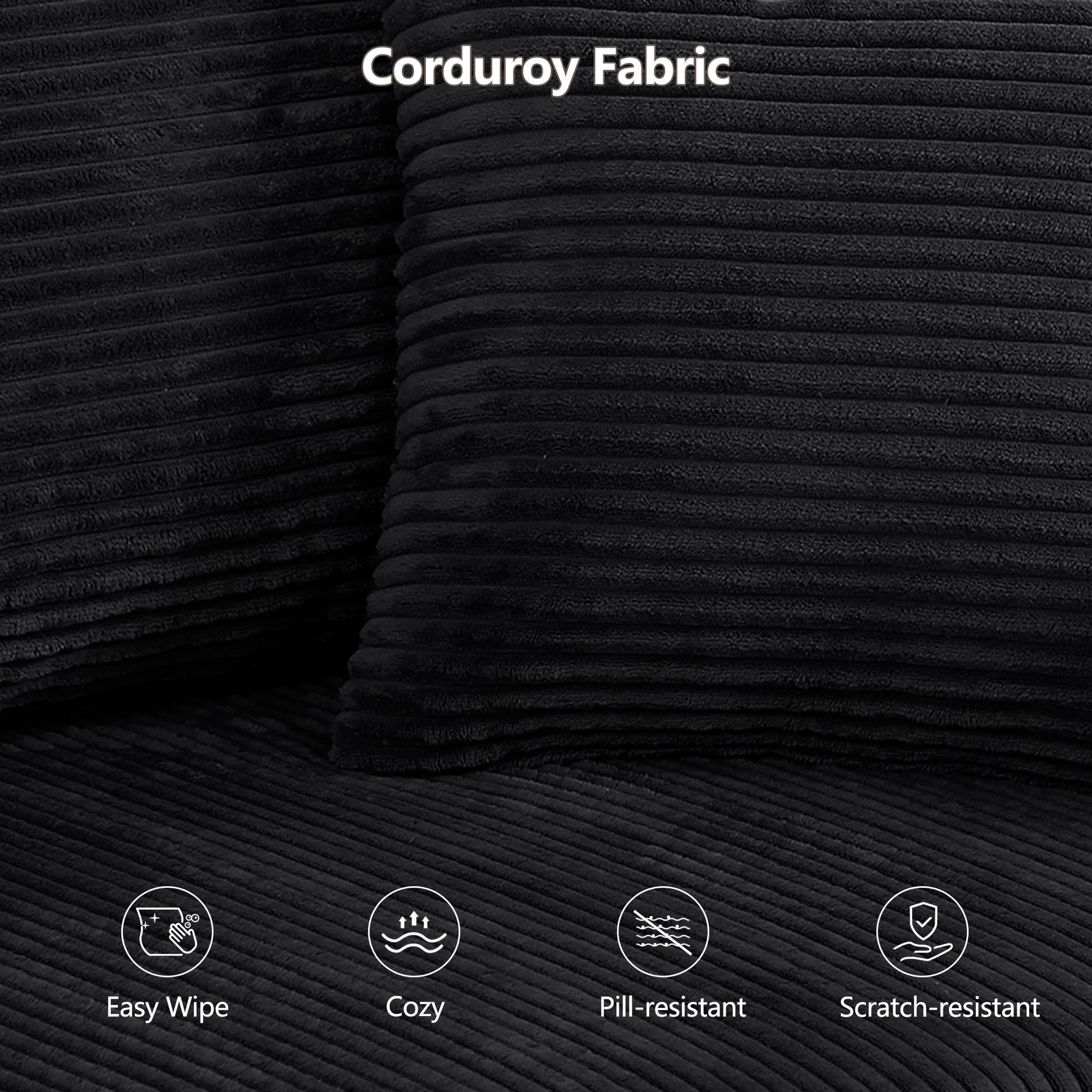 Modular L Shaped Sectional Sofa, Convertible Couch With Chaise Corduroy - Black