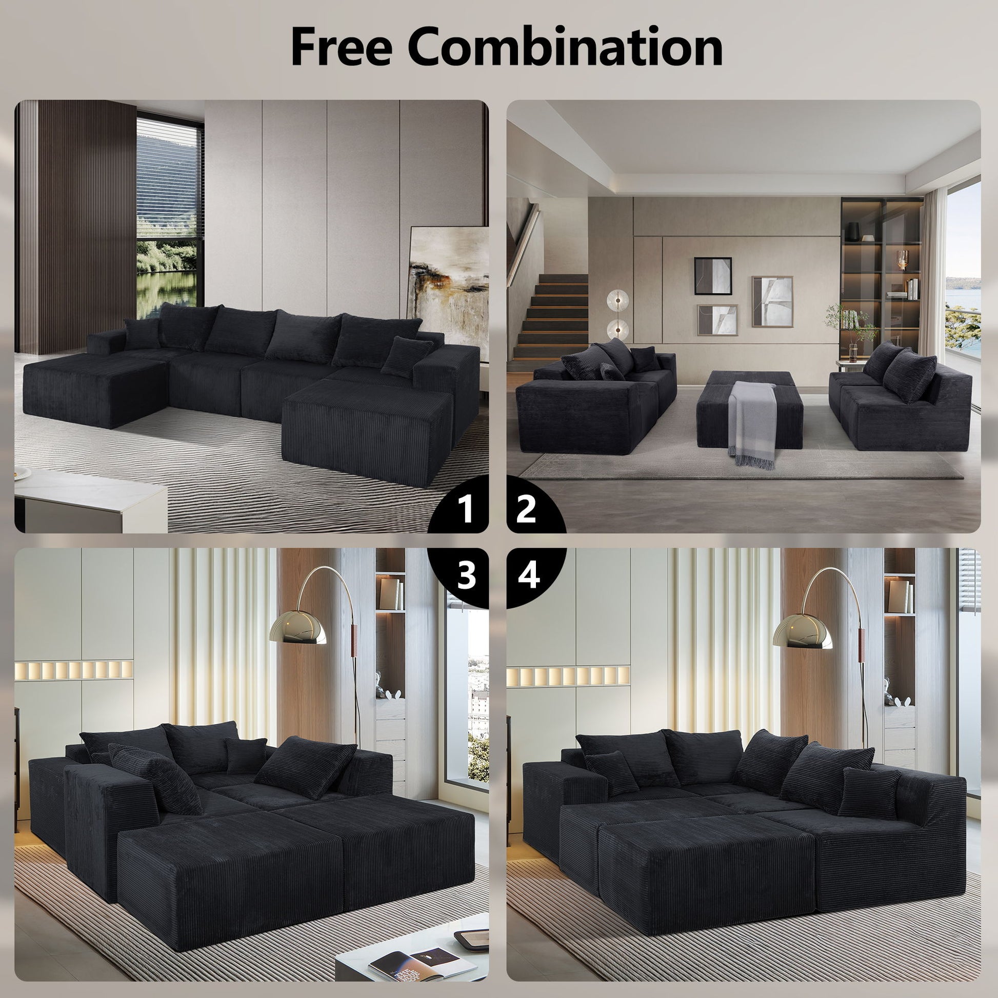 - Flexible Modular Sofa: Customize your space with this versatile sectional, maximizing floor space with endless layout possibilities.