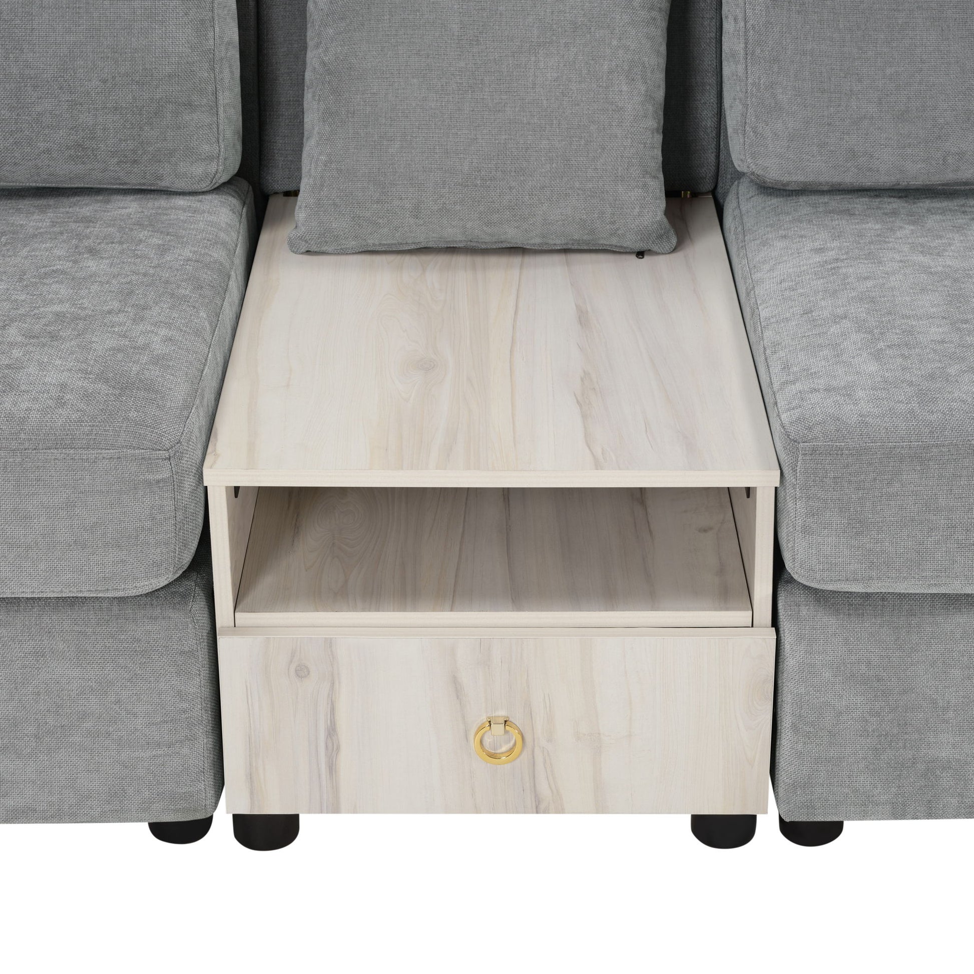 Modular Sofa Couch With Storage Armrest And Center Console - Gray