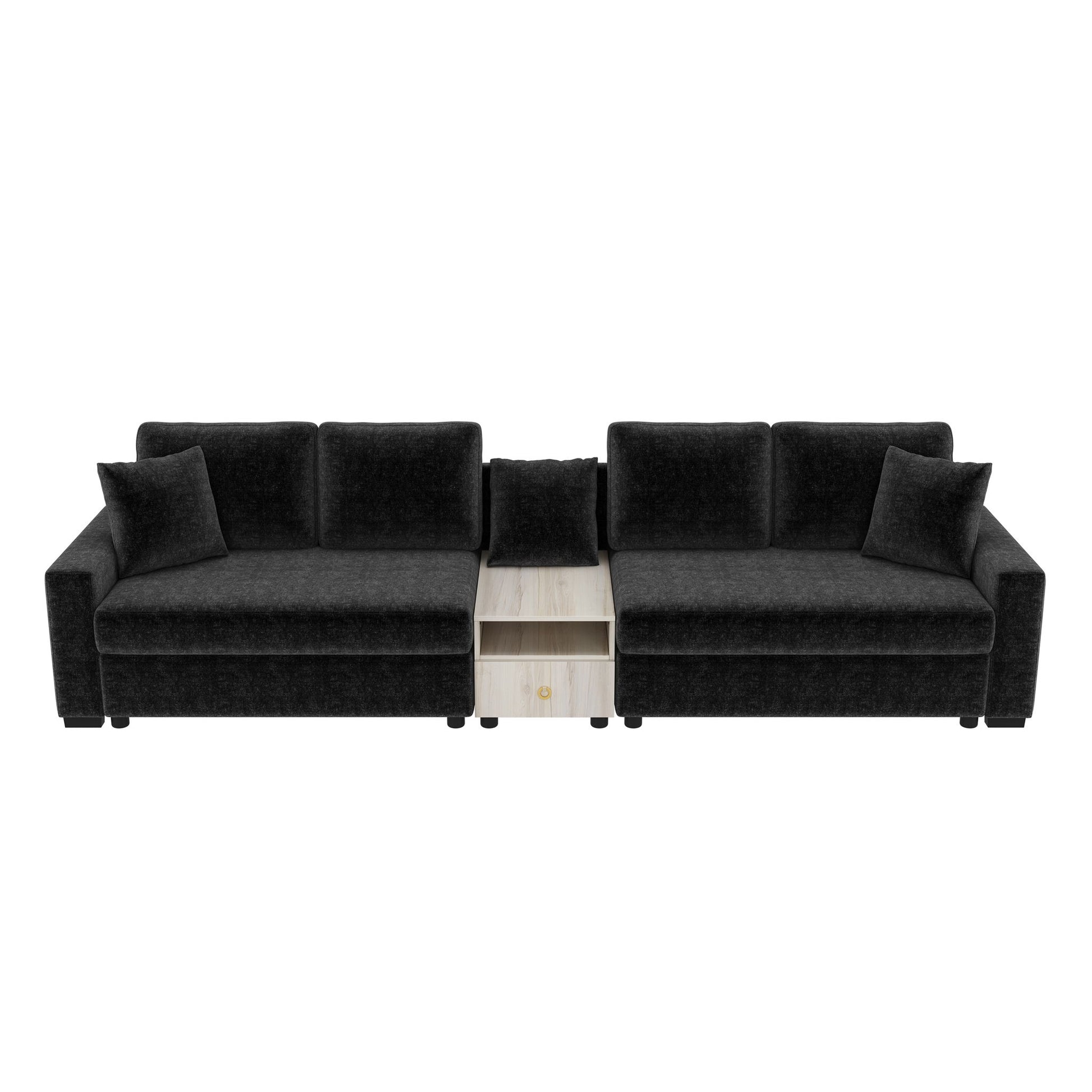 4 Seater Modular Sofa Couch With Storage Armrest And Center Console - Black