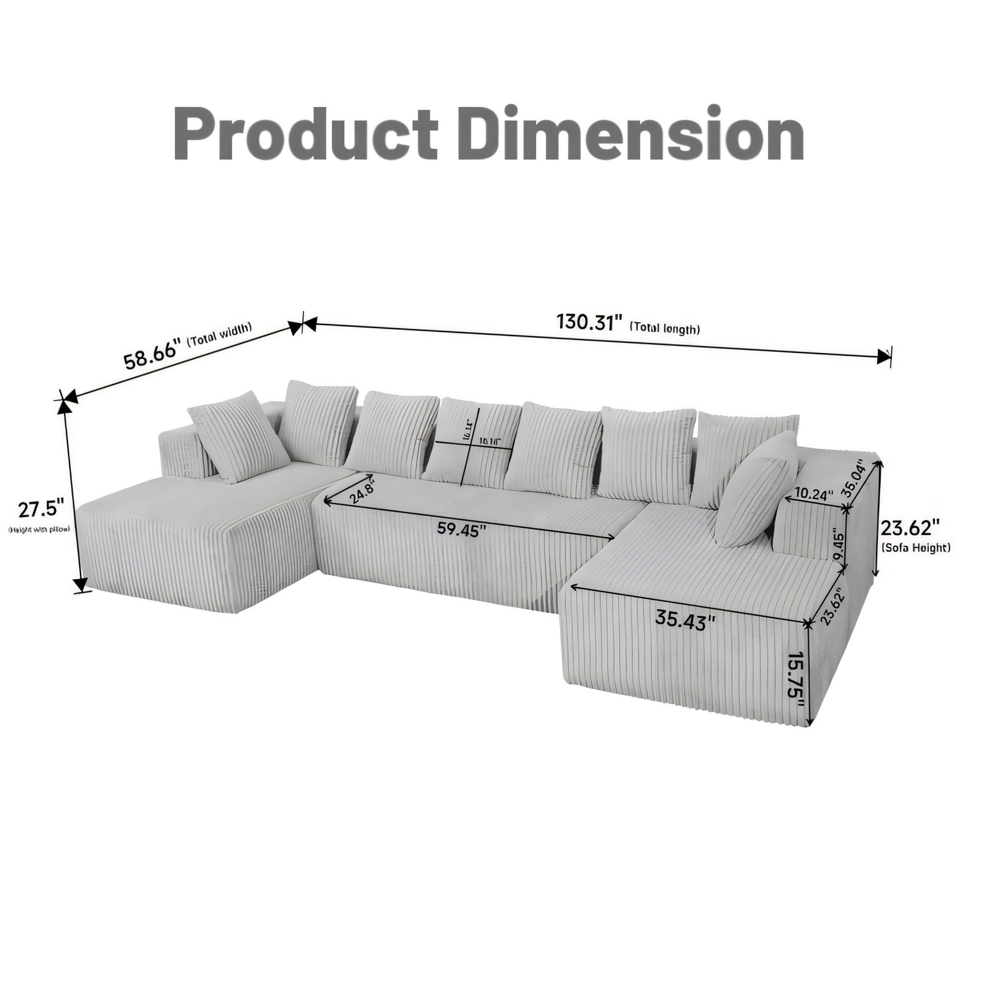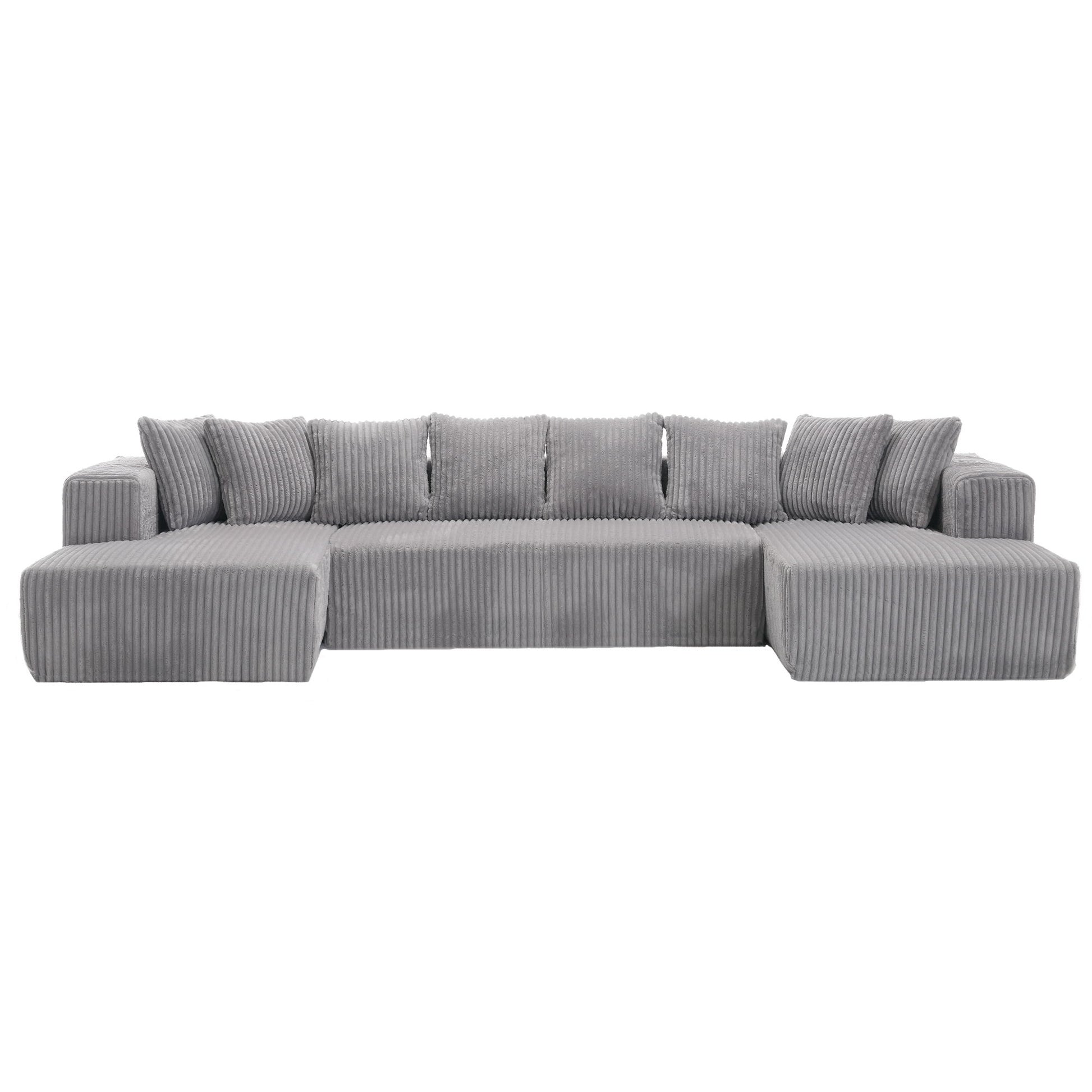 - Spacious Wale Corduroy Sofa: Features a luxurious striped fabric with an elegant, contemporary U-shaped design. Adds timeless sophistication and becomes the stylish centerpiece in living rooms, apartments, or bedrooms.