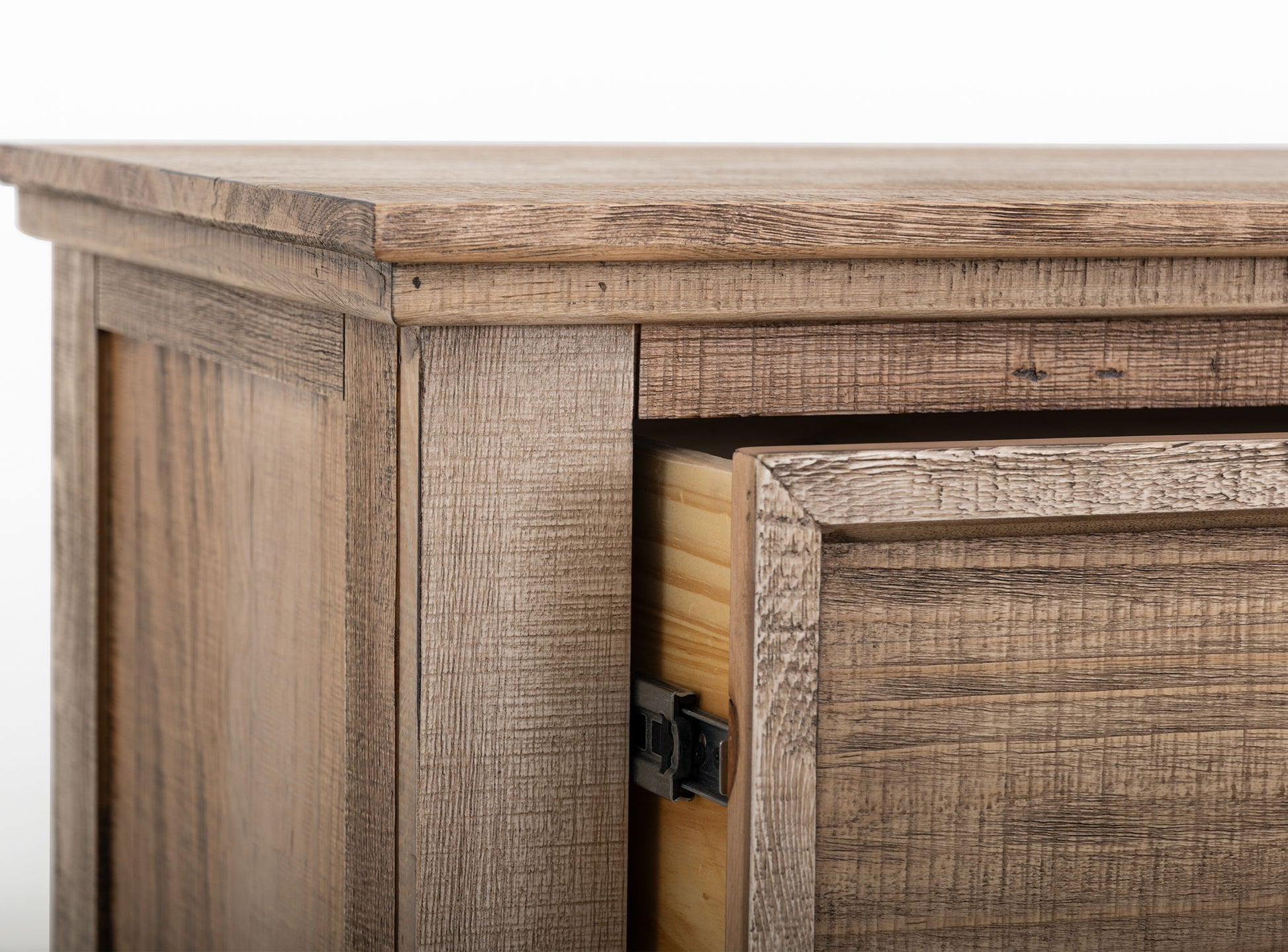 - Hand-forged iron pulls with unique tooled texture