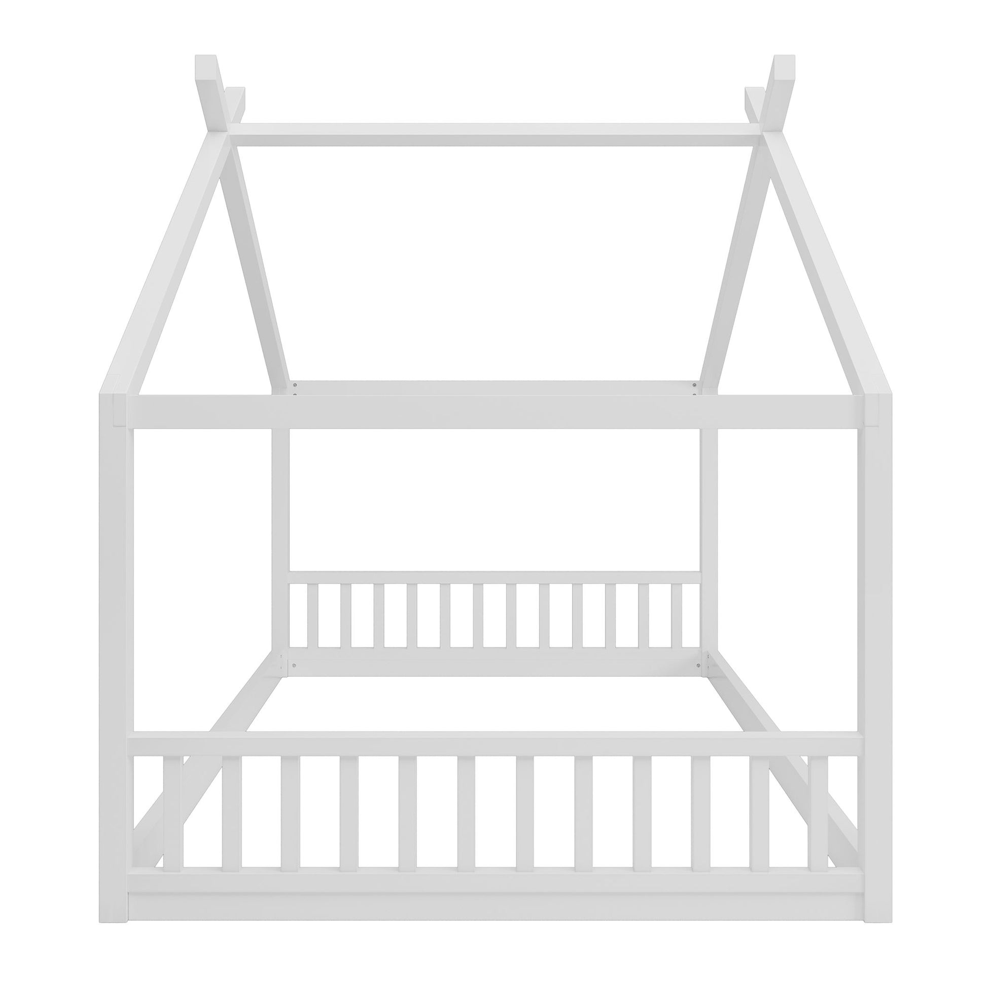 Full Size Montessori Style House Bed For Kids, Floor Bed Frame With Headboard And Footboard, Fence Bed For Girls, Boys, Slat Not Included - White