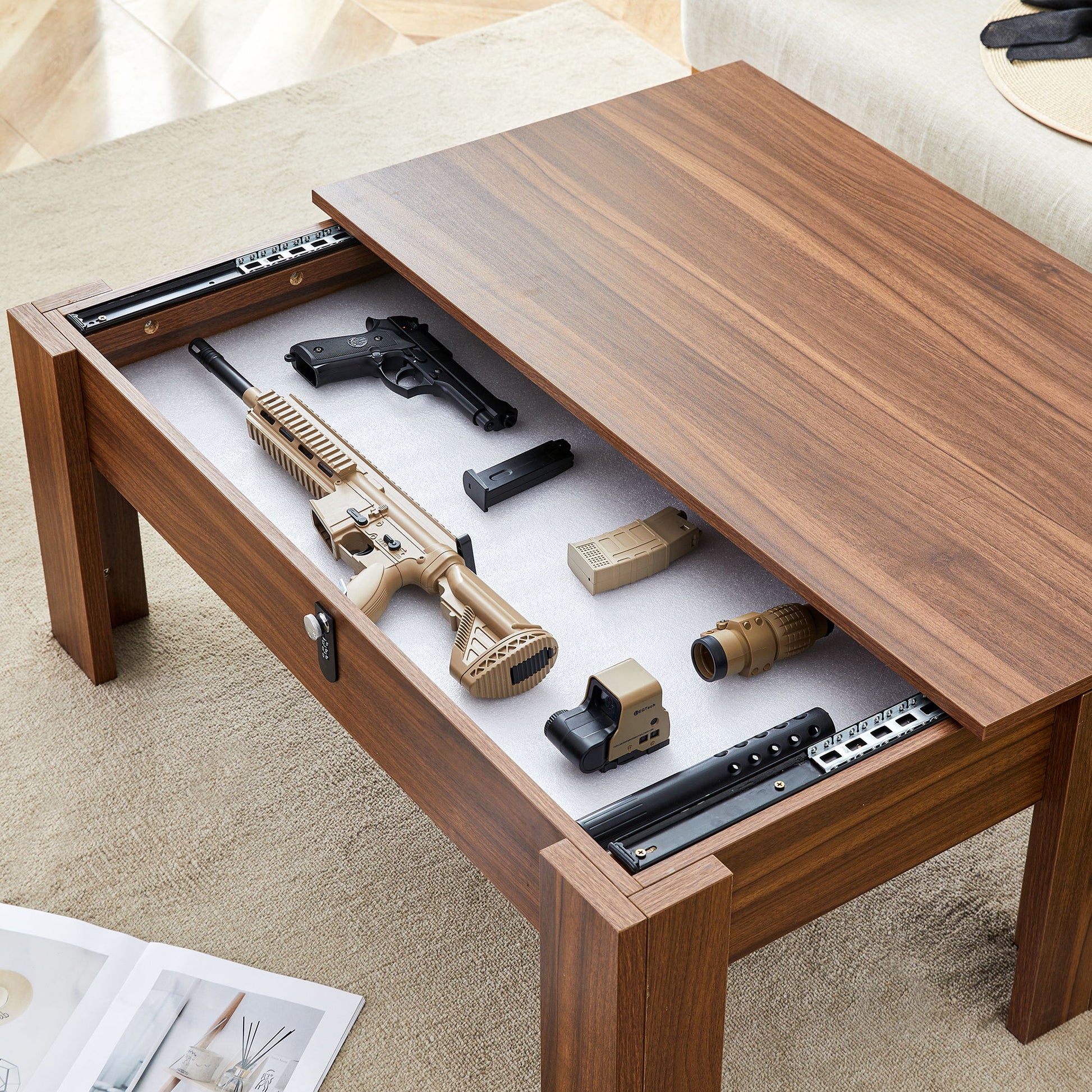Multi Functional Coffee Table With Password Lock, Suitable For Storing Firearms And Wine - Walnut