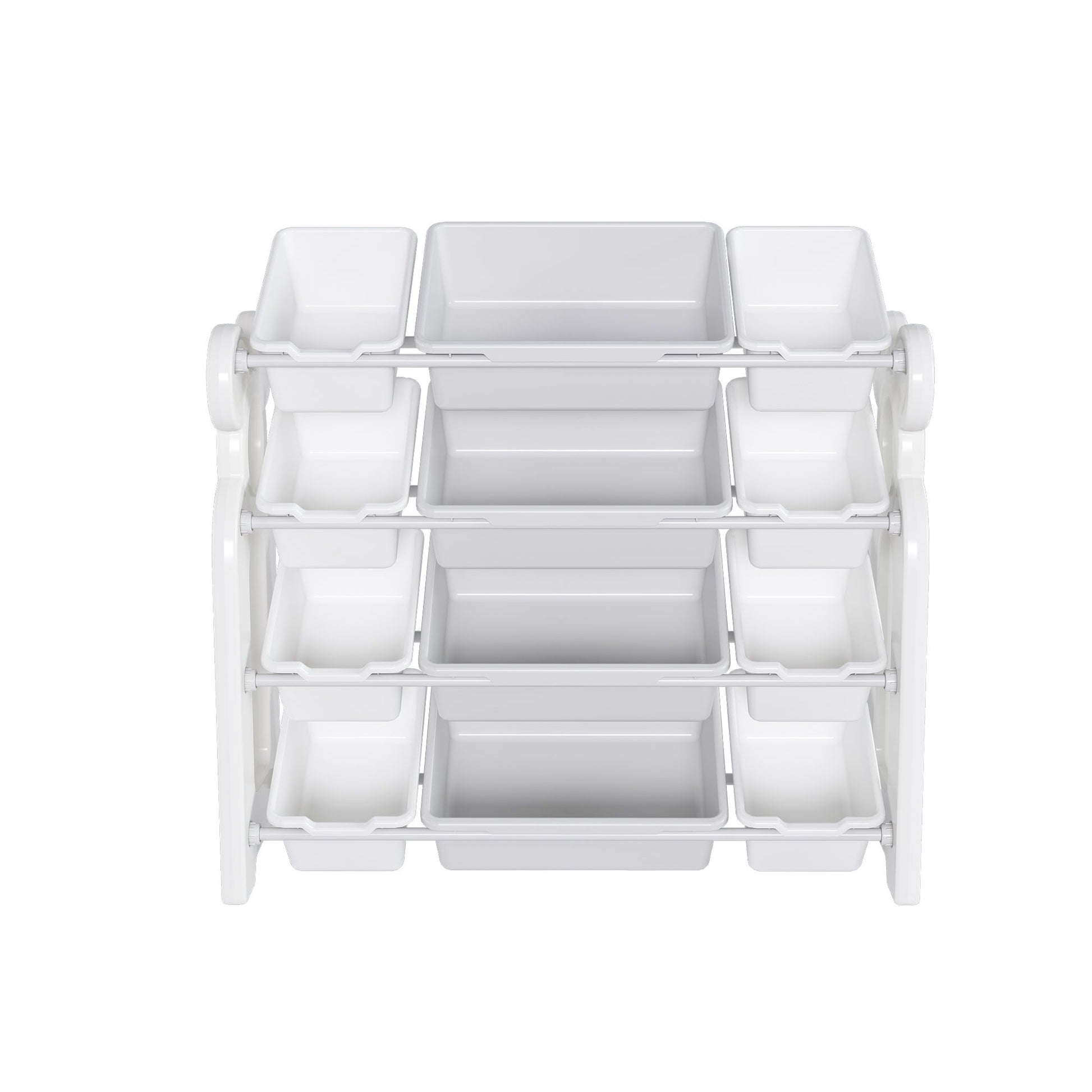 Multi Functional Kids Toy Storage Organizer Cabinet With Hdpe Shelf And 12 Bins - Gray White