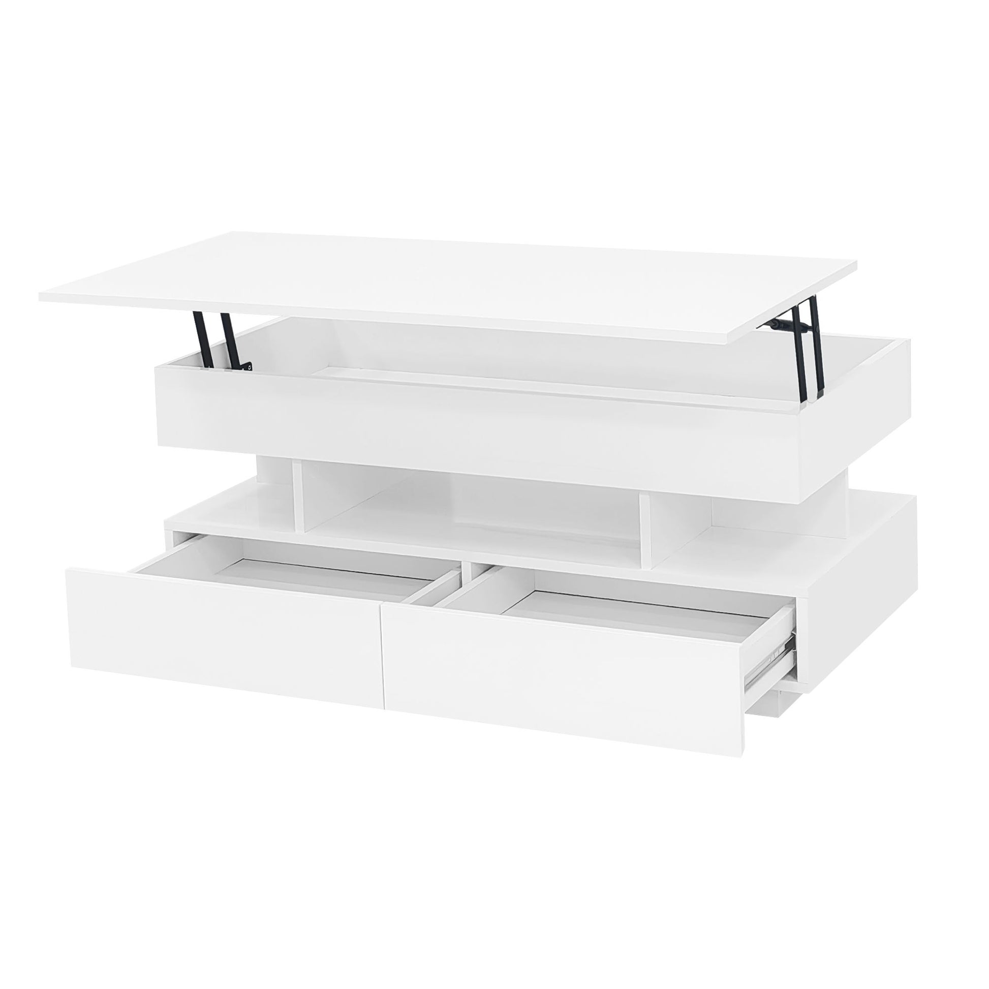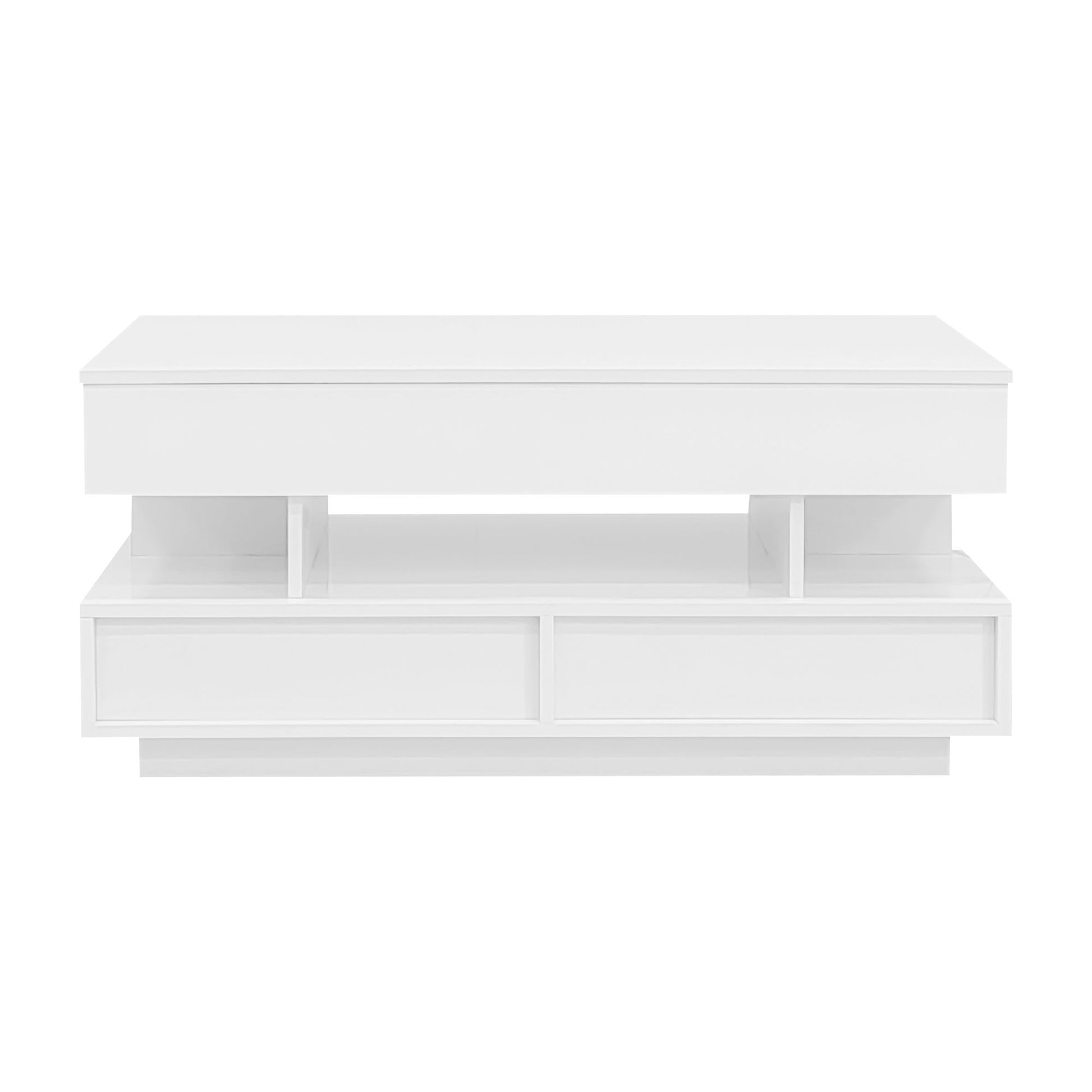 Lift Top Coffee Table With 2 Drawers, Multi Functional Lift Top Coffee Table With High Gloss Finish For Living Room - White