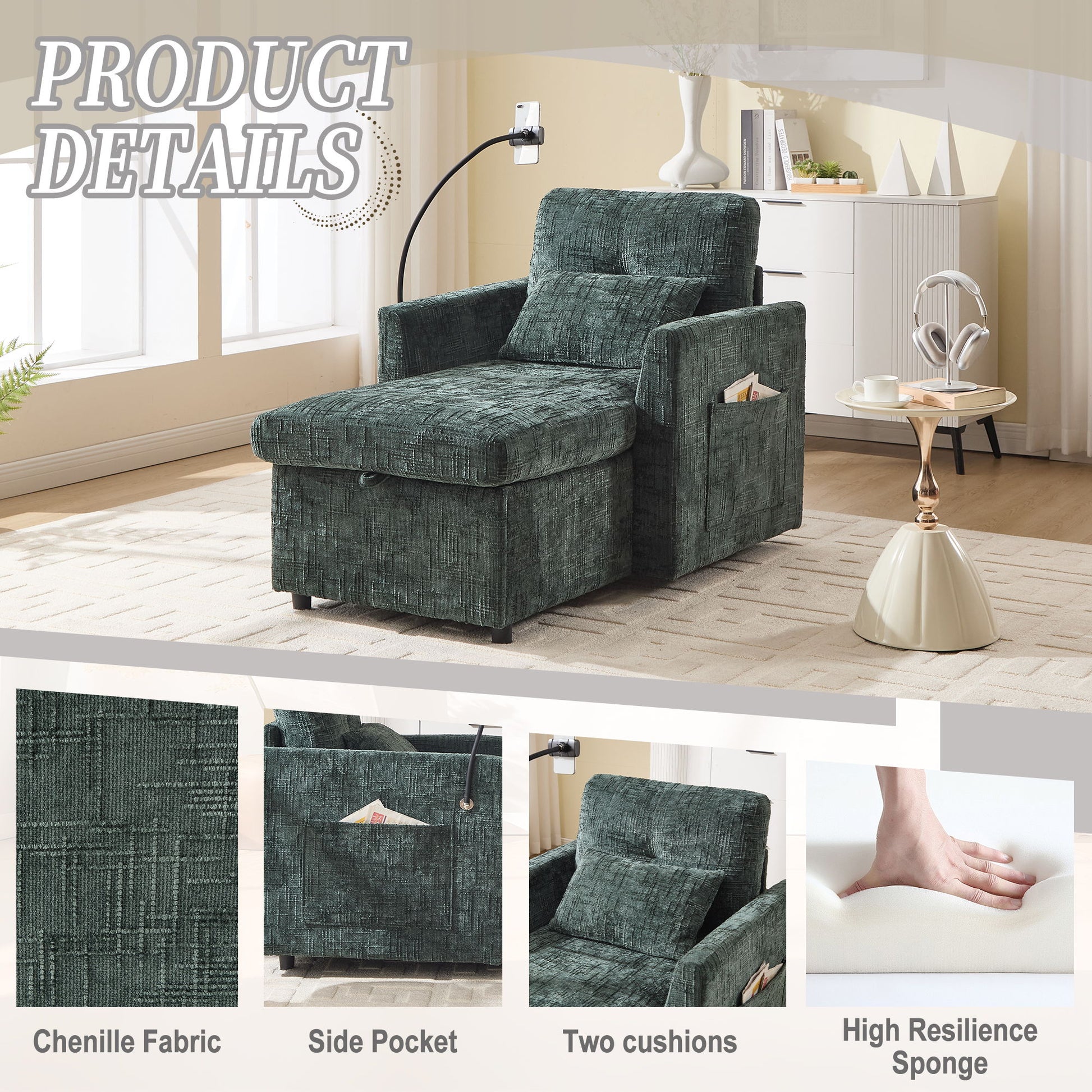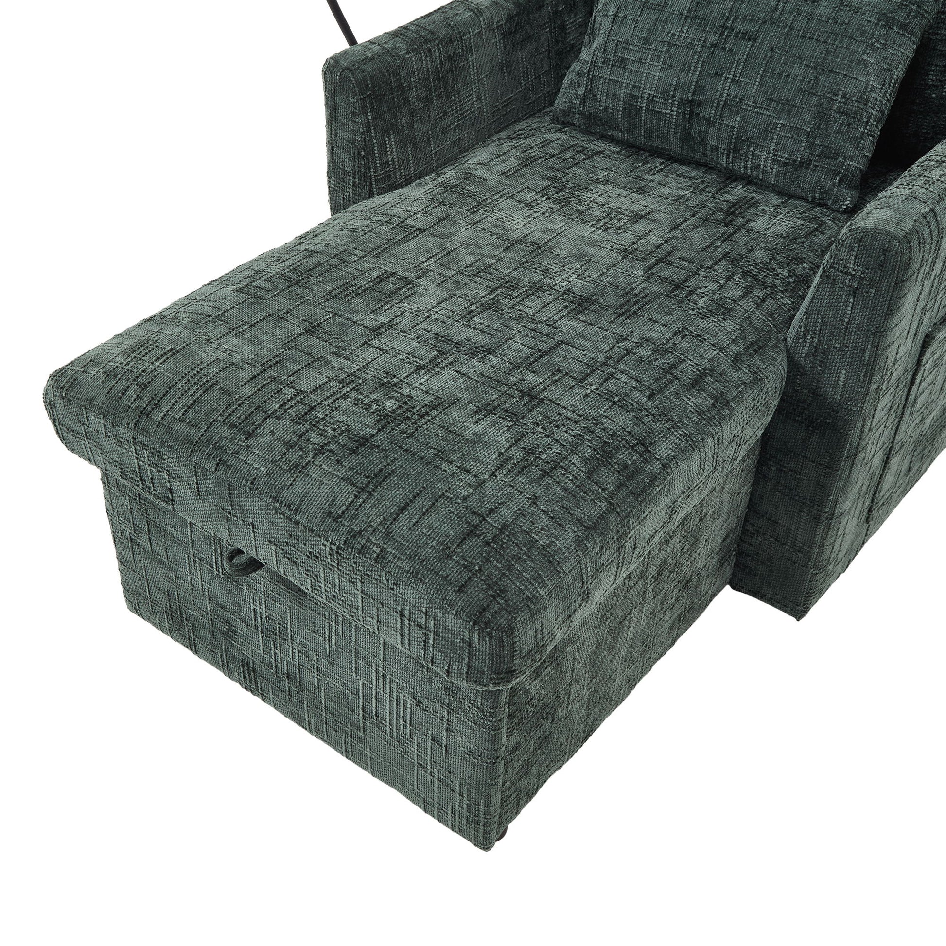 - Hidden Storage: Large capacity storage under the seat for blankets and books.