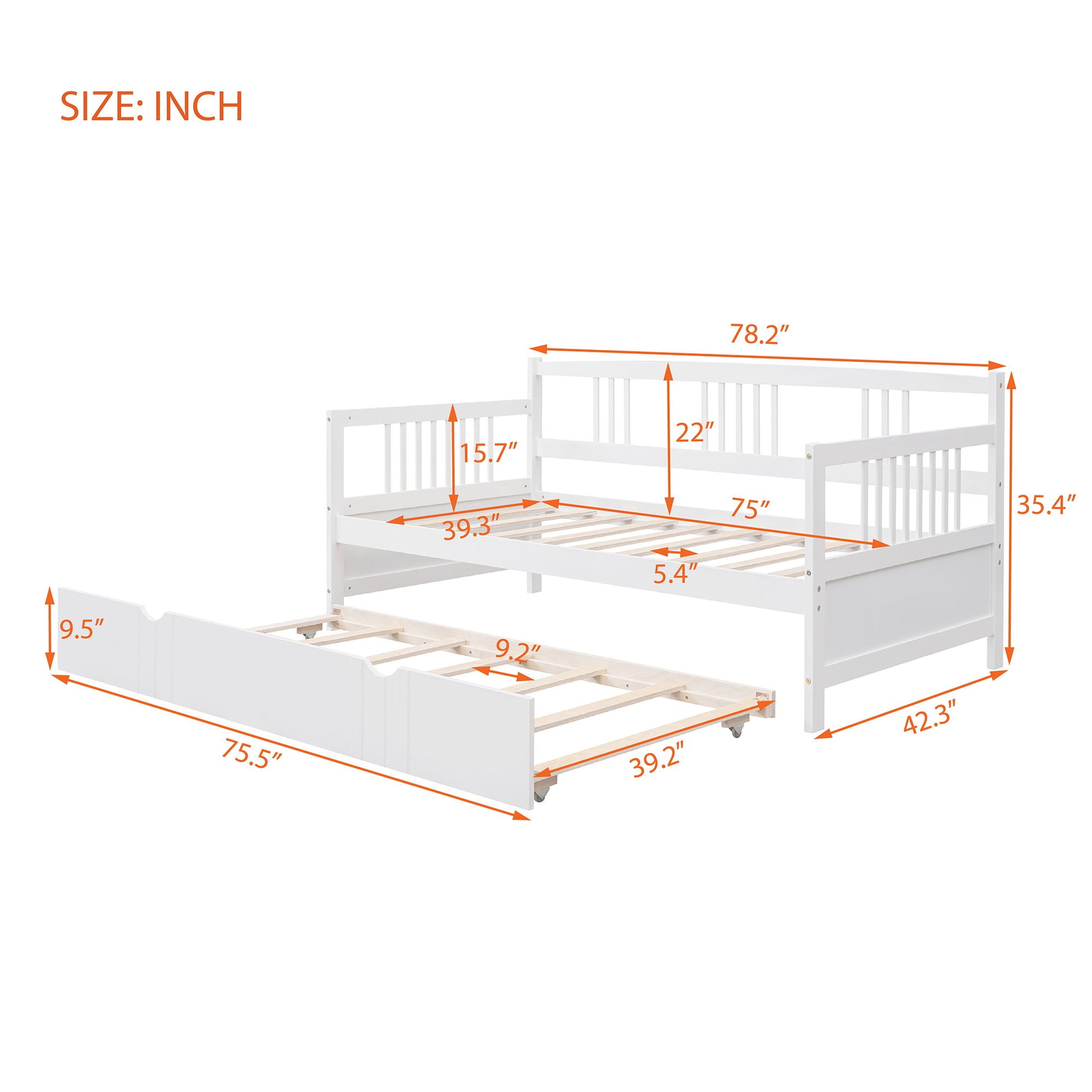 Twin Size DayBed With Twin Size Trundle - White