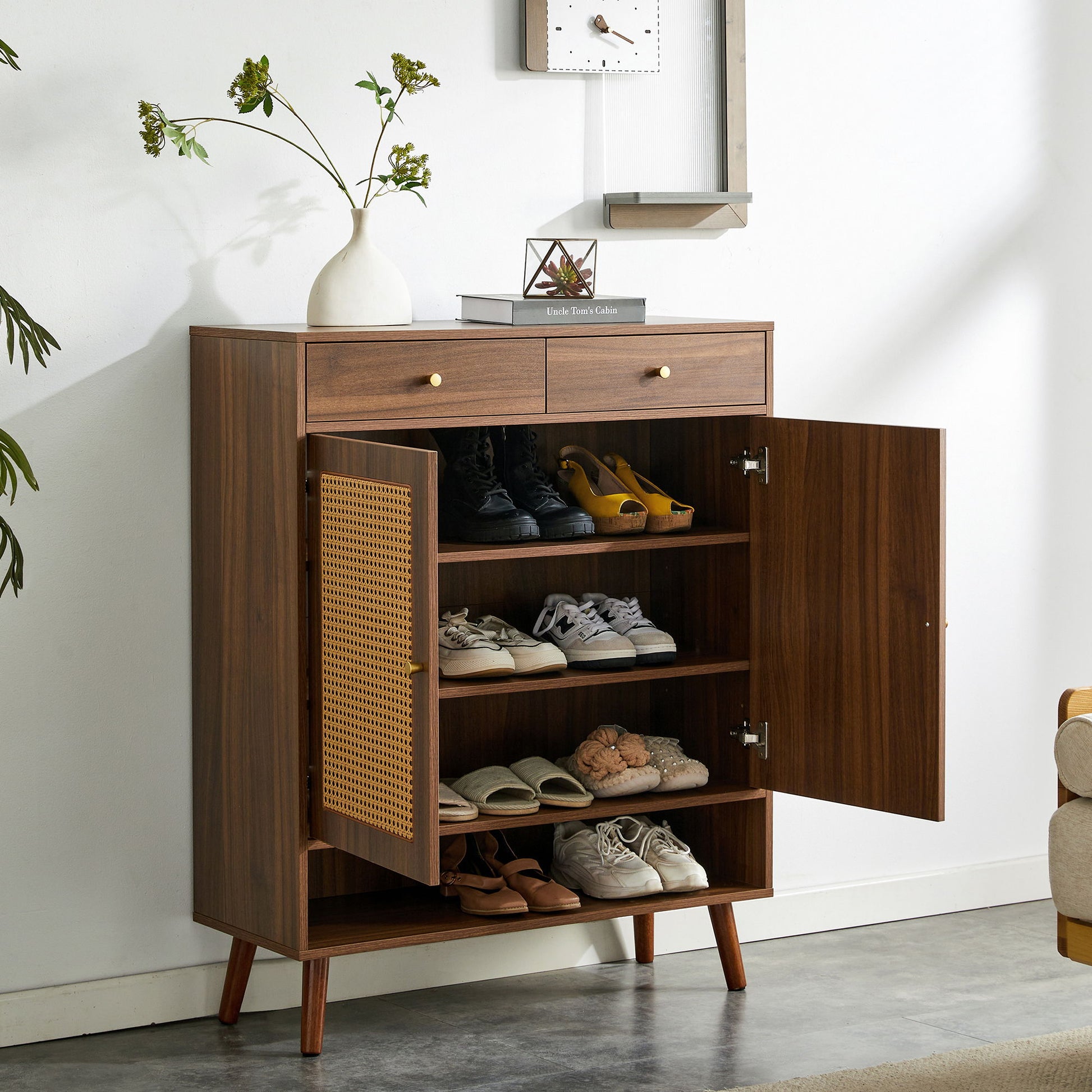 Multi Functional Modern Minimalist Shoe Cabinet Perfectly Blends Into Nordic, Japanese, And Industrial Style Homes - Walnut