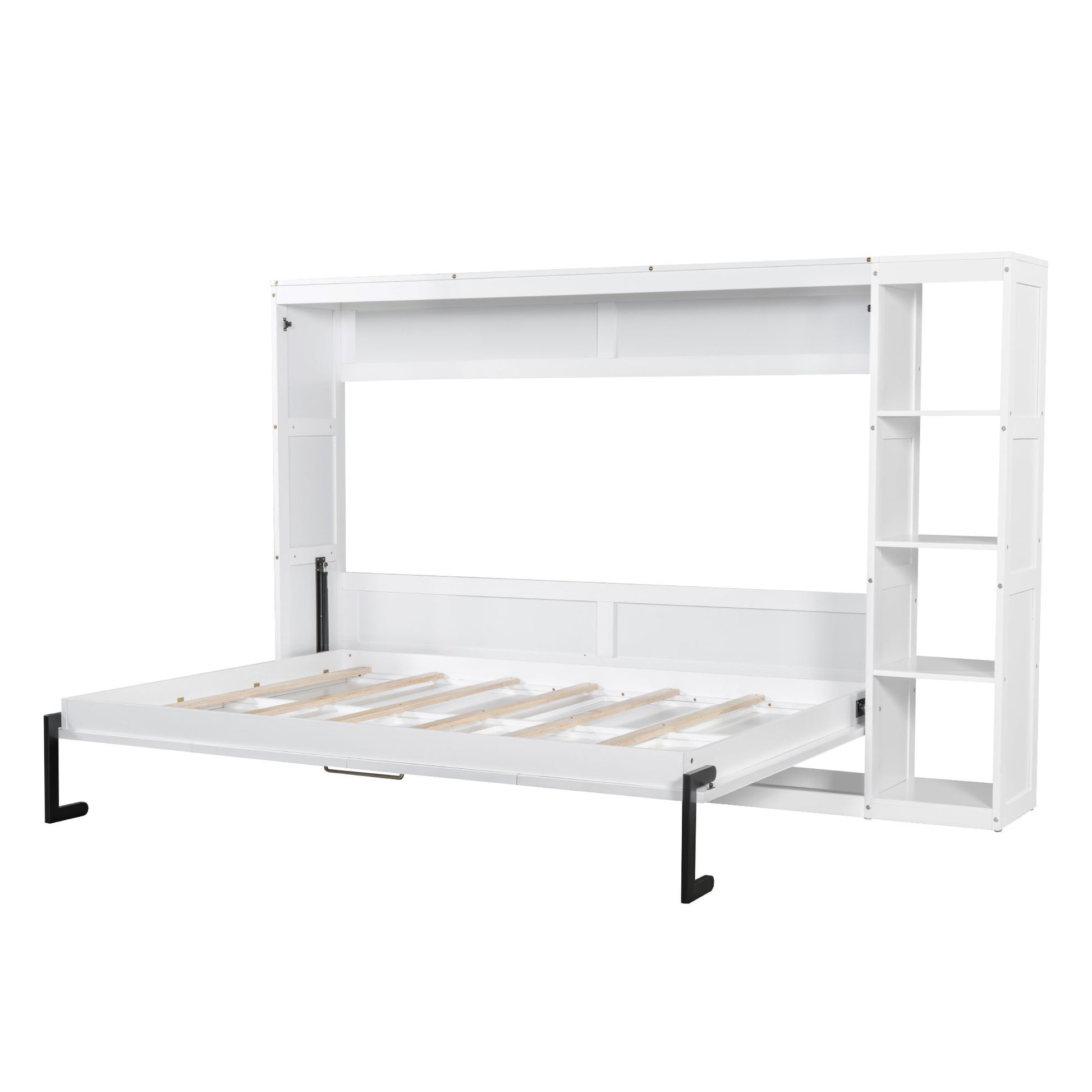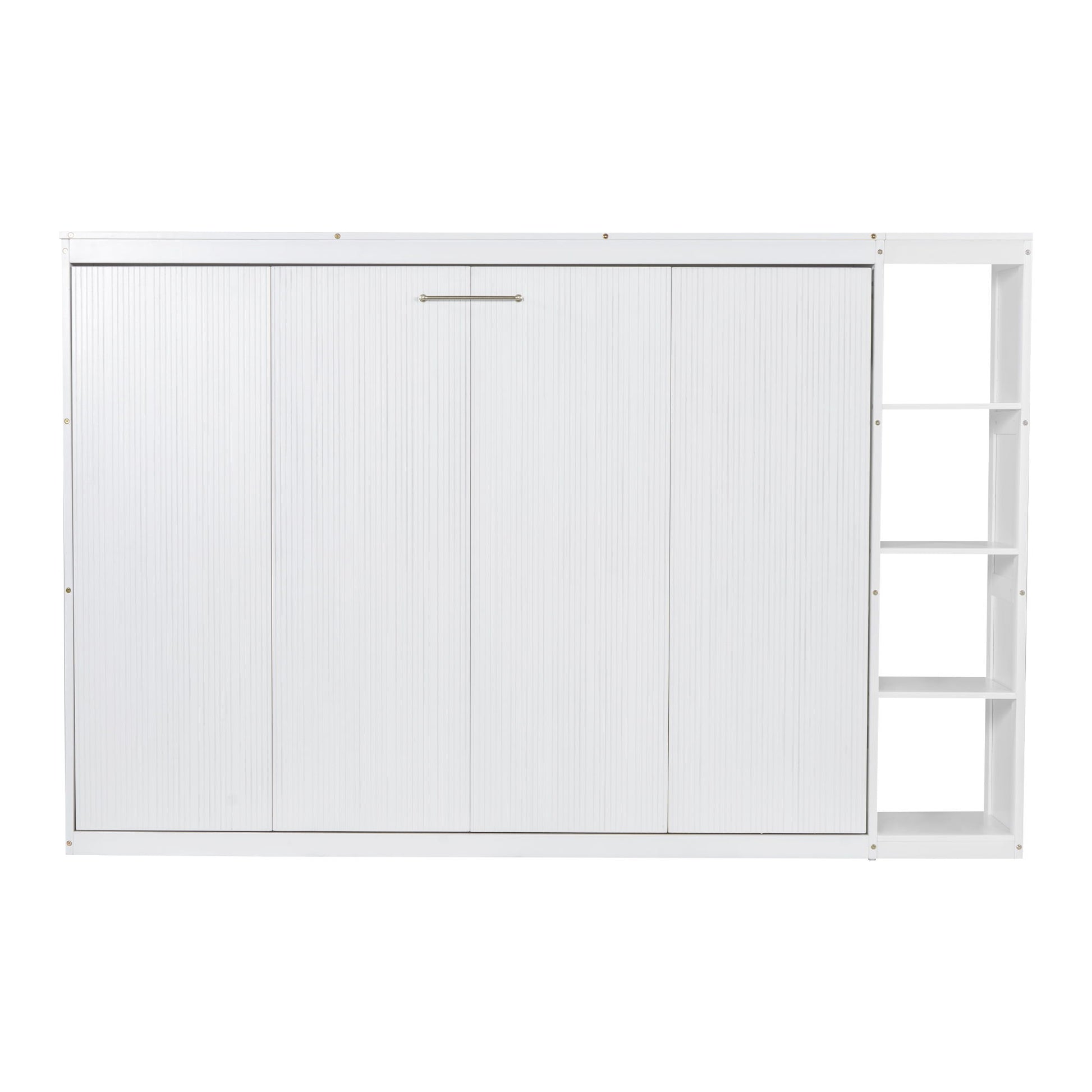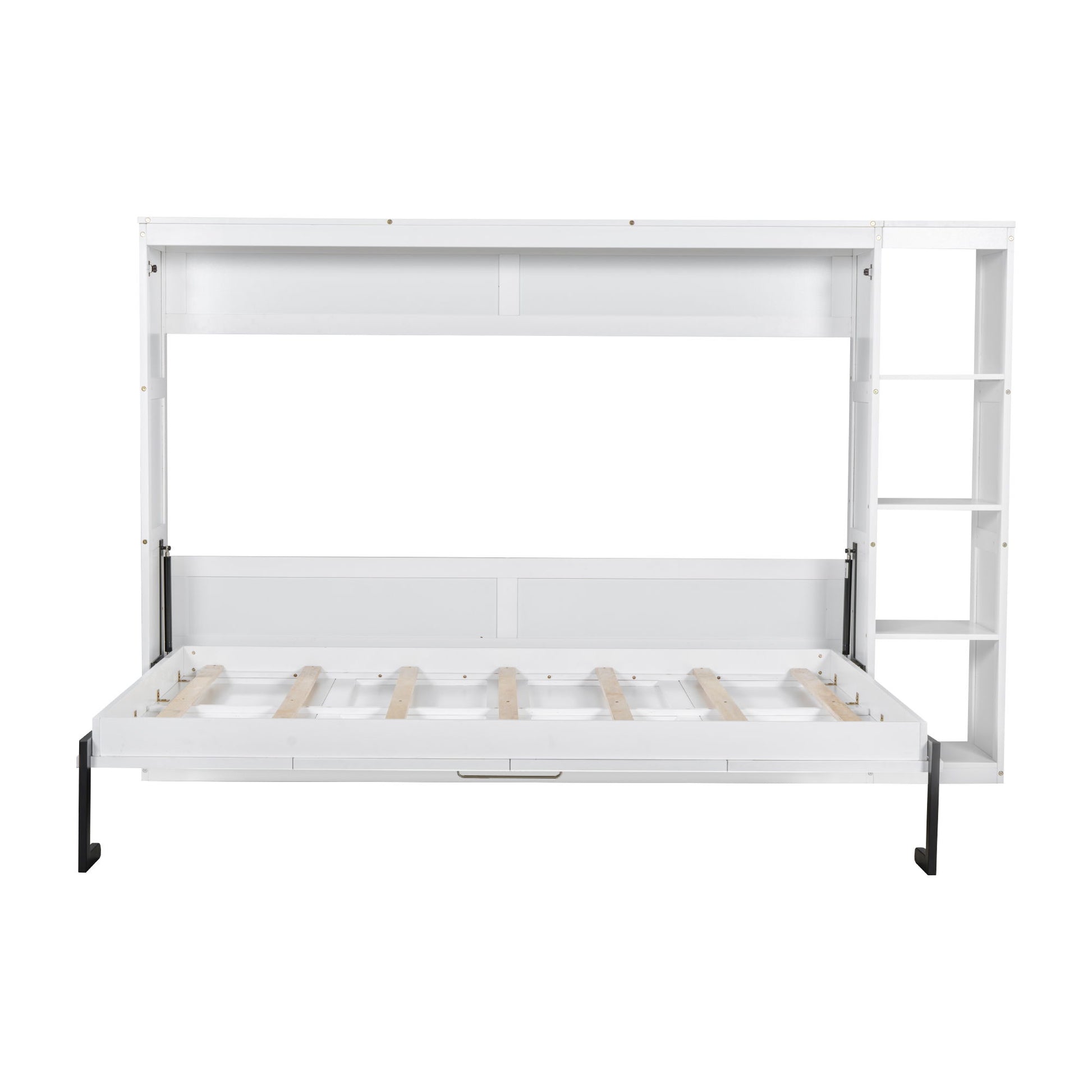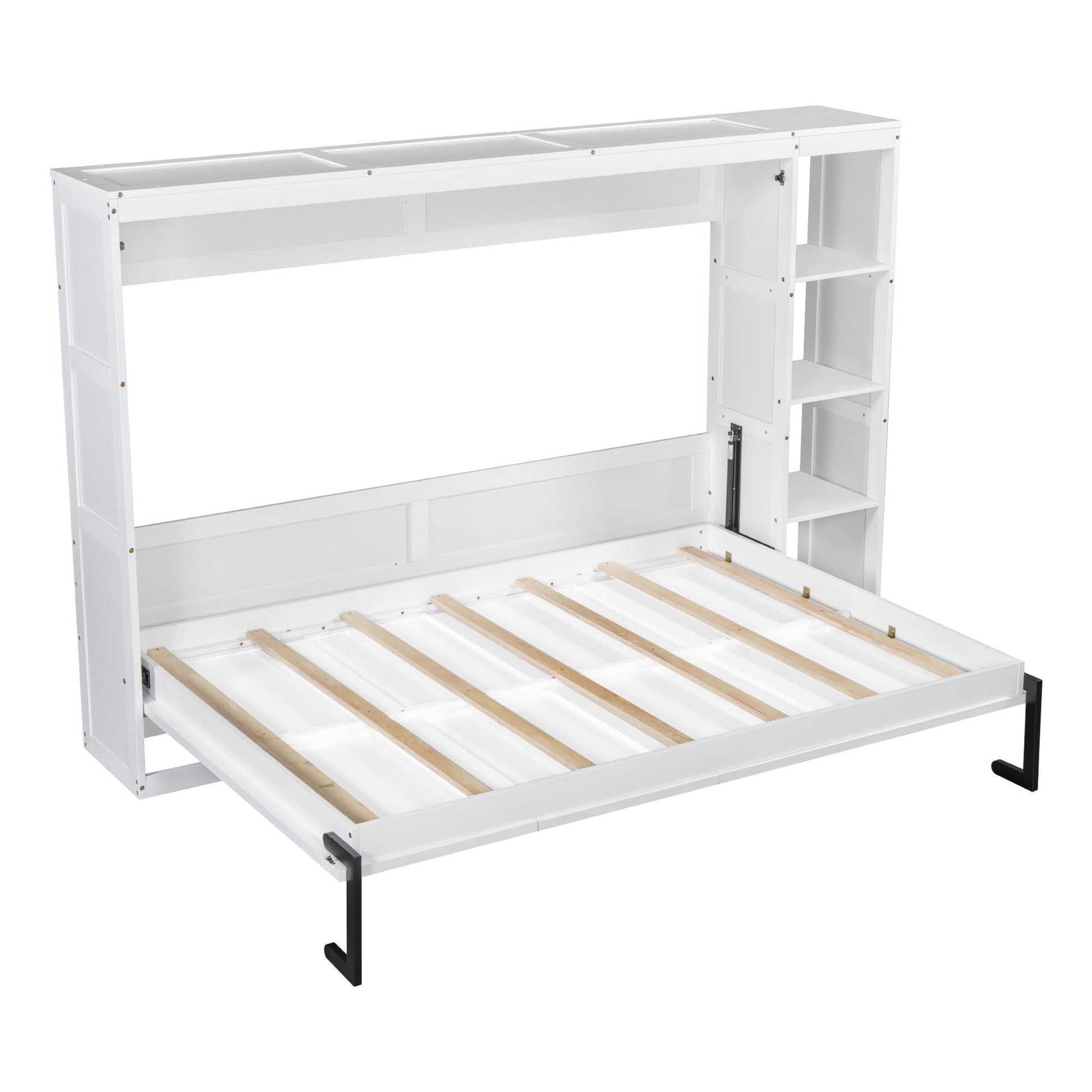 Full Size Murphy Bed With Bookshelf And Storage - White