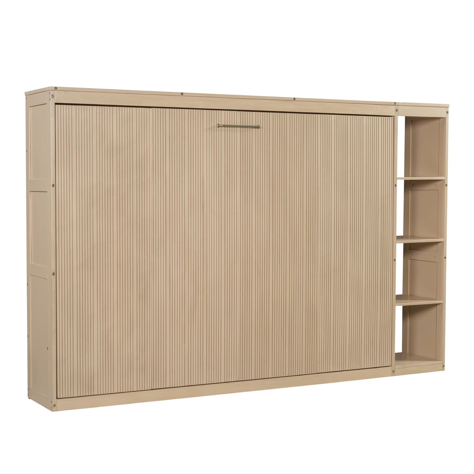 Full Size Murphy Bed With Bookshelf And Storage - Natural