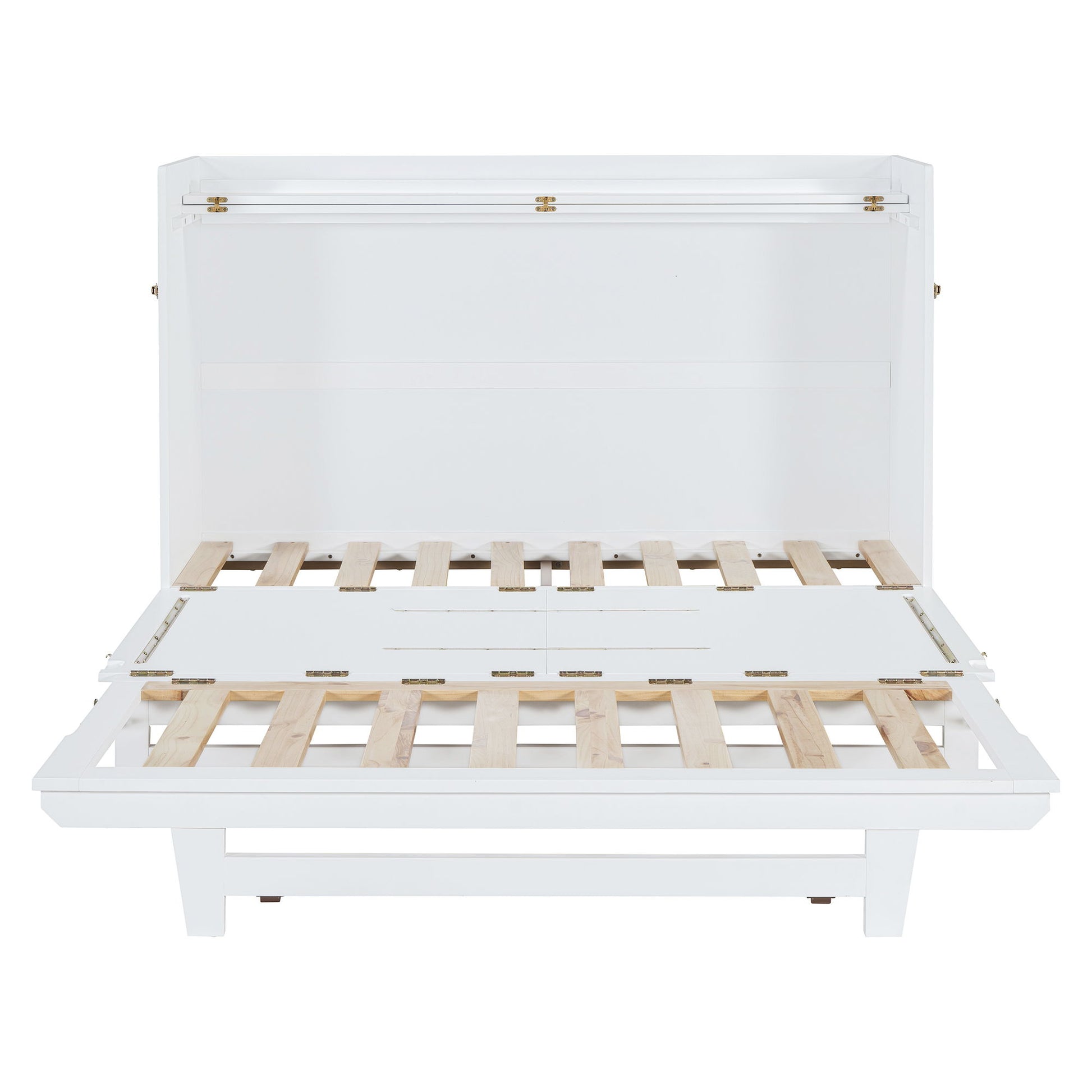 Queen Size Murphy Bed With Iron Legs, Modern Design - White