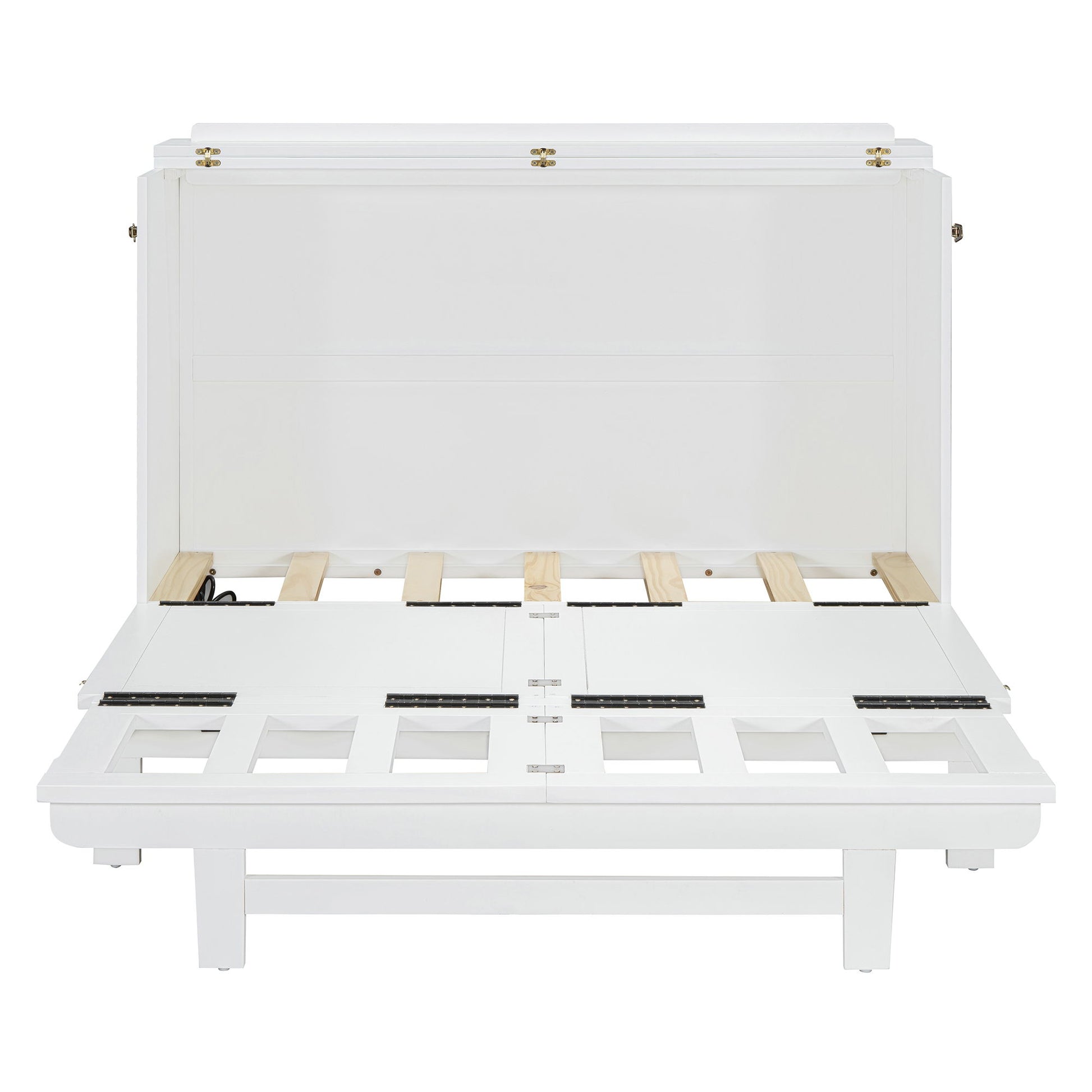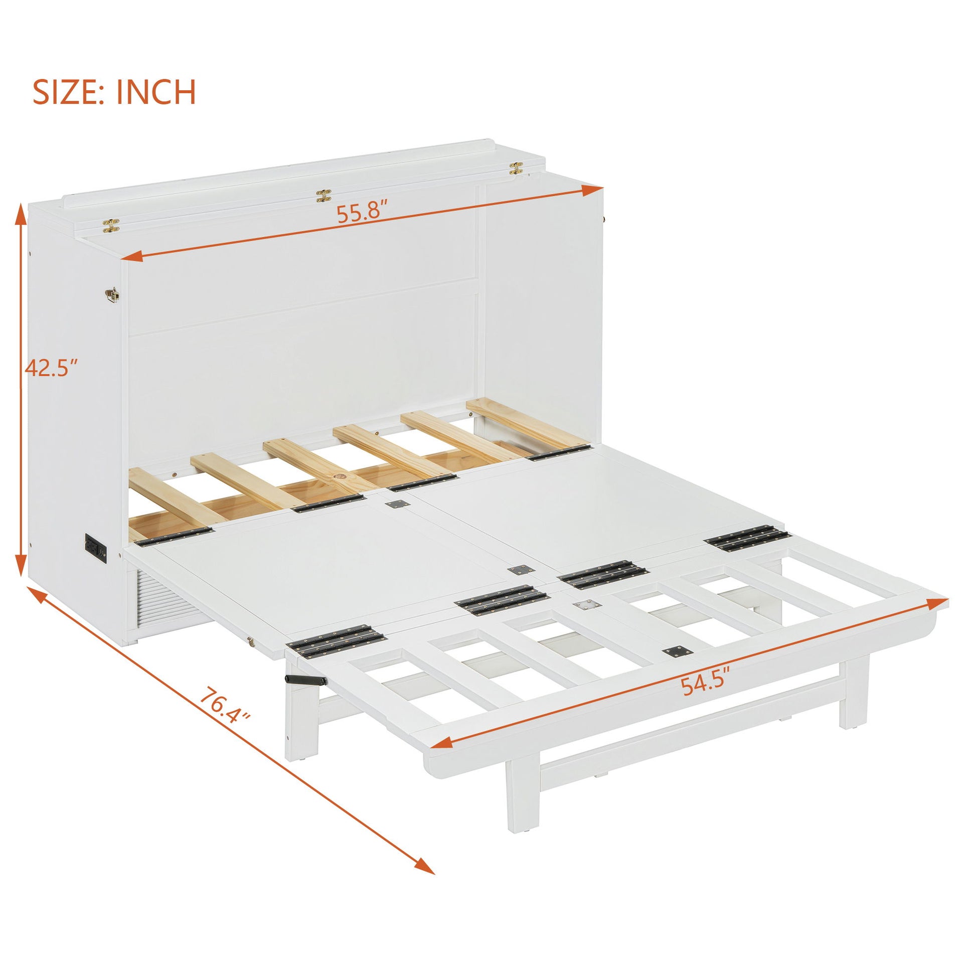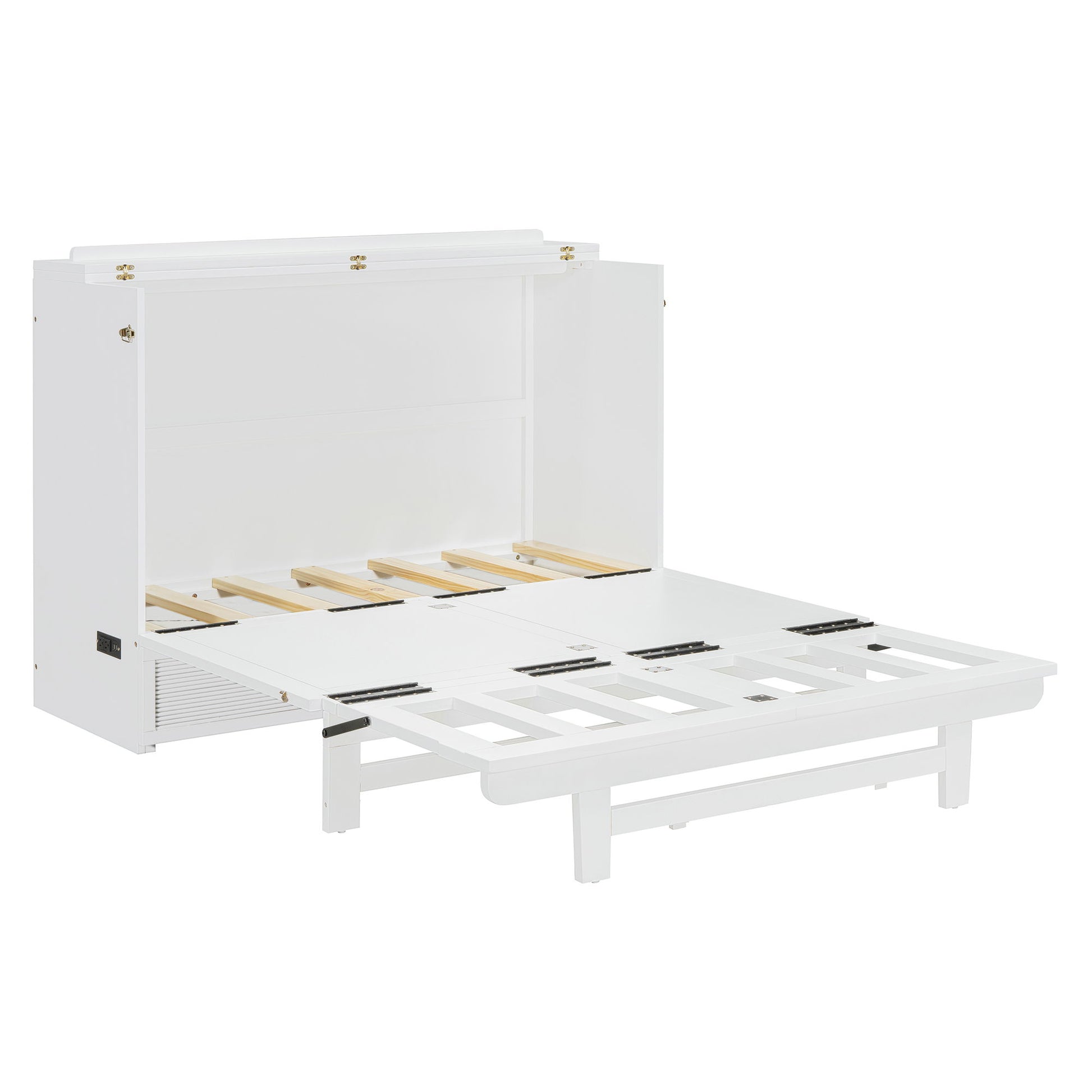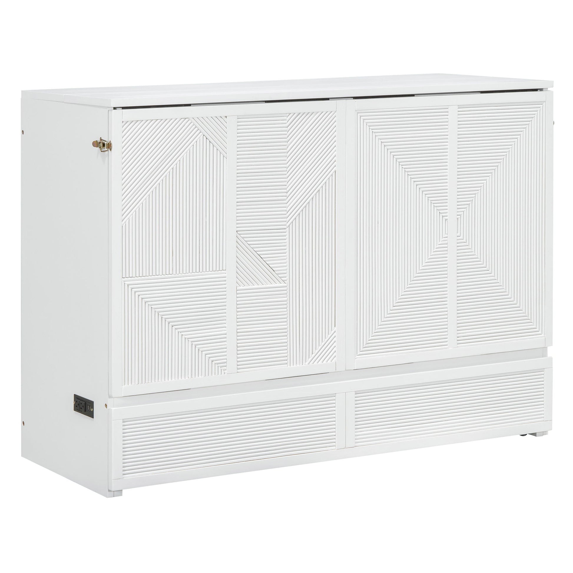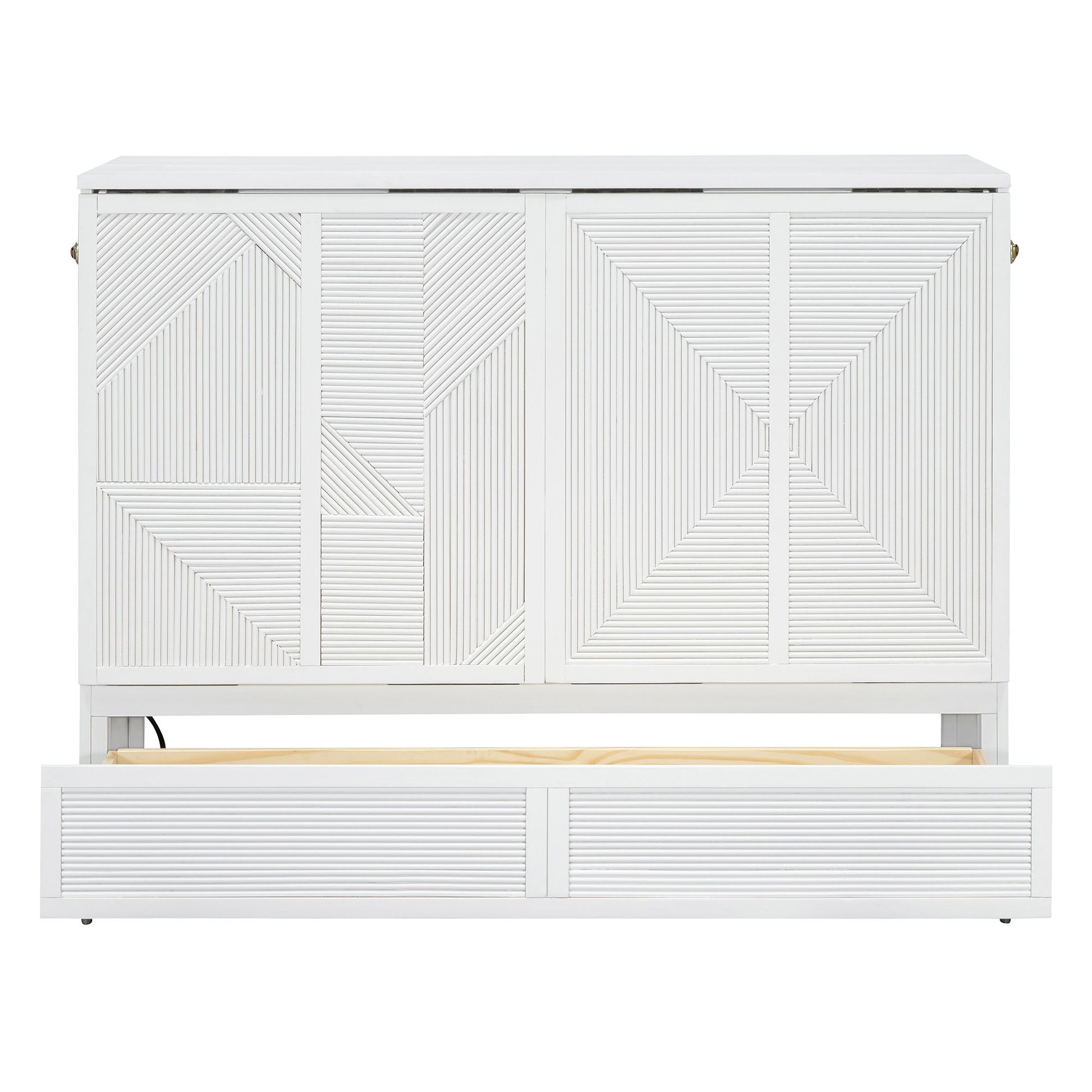 Full Size Murphy Bed With Large Drawer, USB Ports And Outlets - White