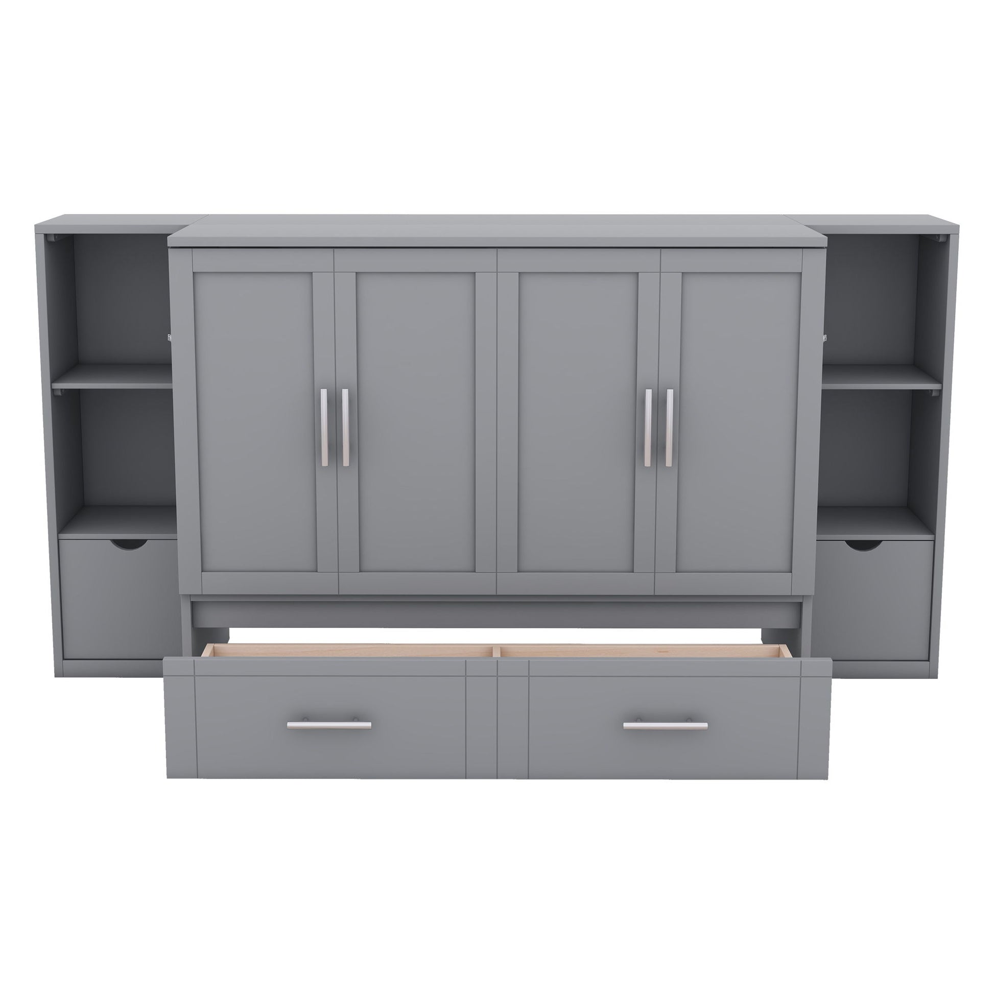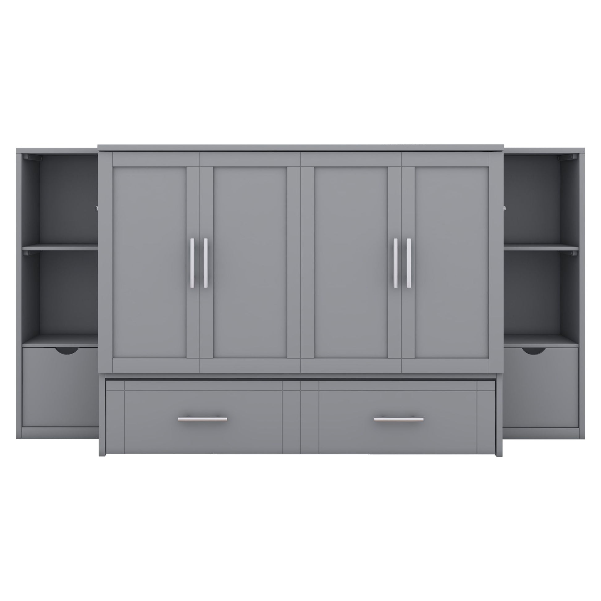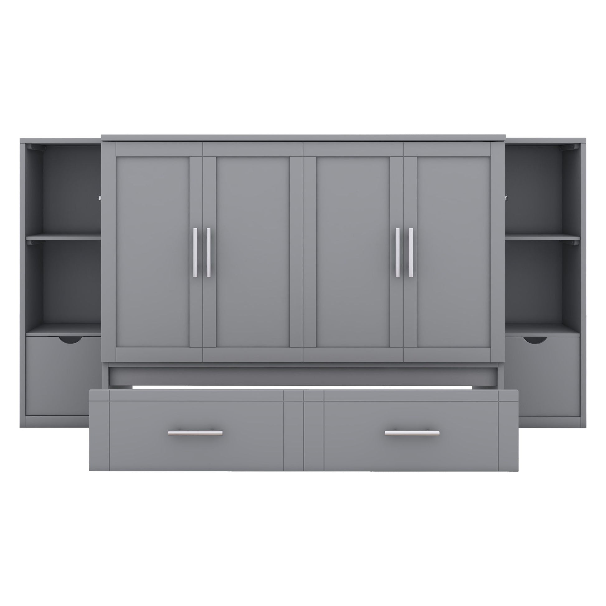 Queen Size Murphy Bed With Shelves, Drawers And USB Ports - Gray